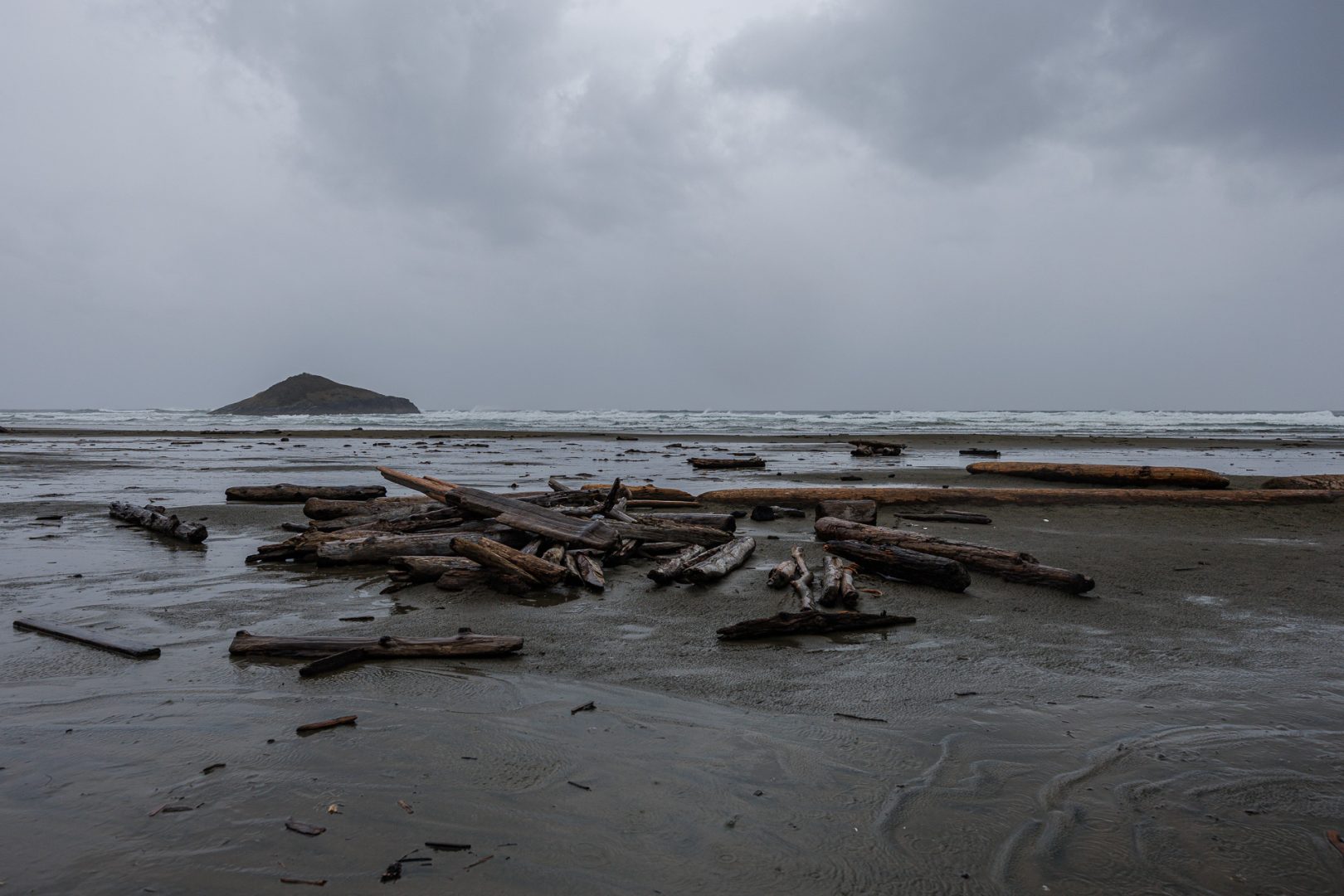 Nous sommes frappés par les monticules de bois flotté qui reposent sur la plage. Les tempêtes ici doivent être impressionnantes 😲 !