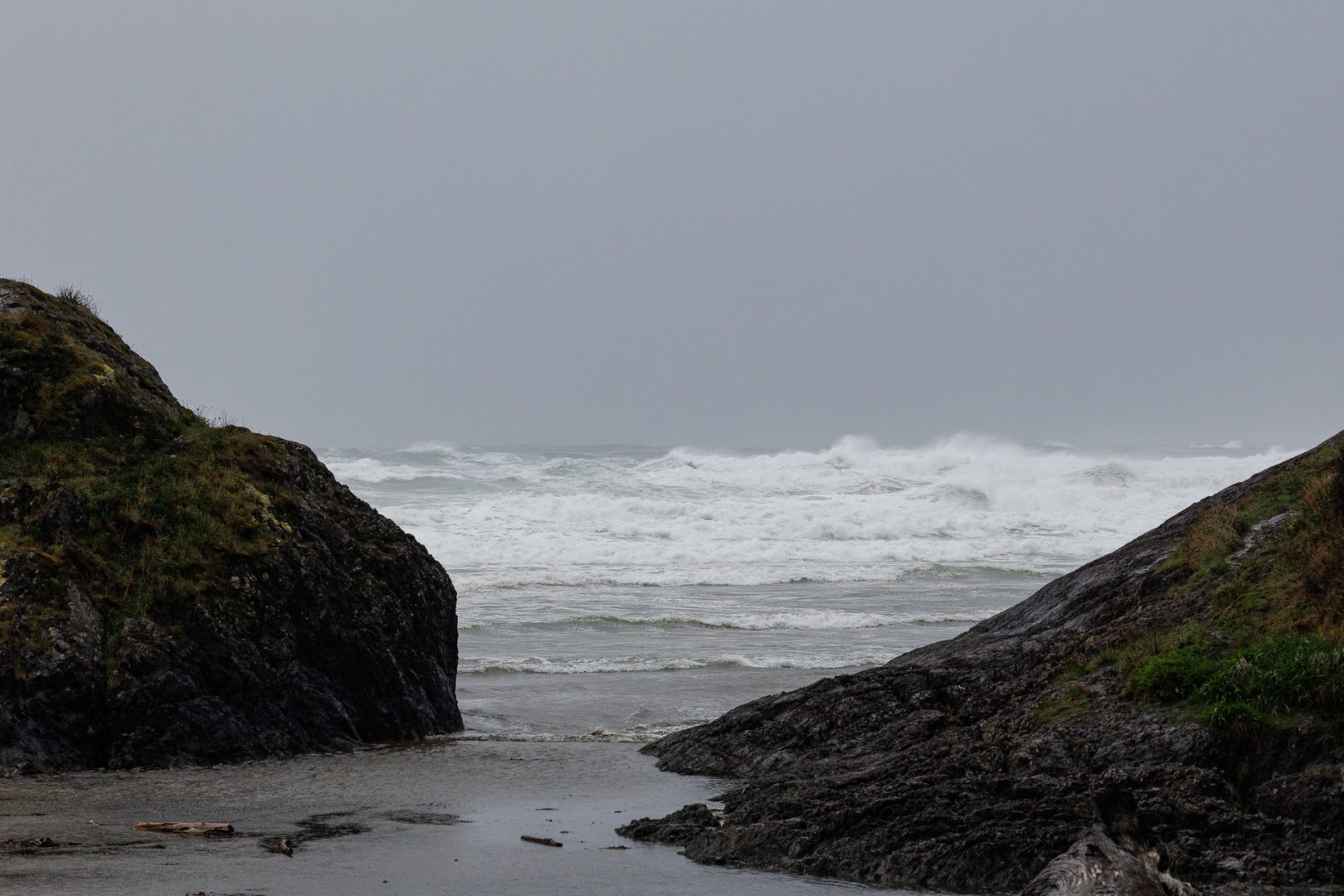 Nous ne ferons que passer à Tofino. Il pleut beaucoup et il n’y a absolument aucune place pour se stationner 😫. Aujourd’hui est un jour férié au Canada. Beaucoup de gens on décidé d’aller admirer les belles plages de Pacific Rim… Nous retournons à Long Beach et il pleut toujours autant…