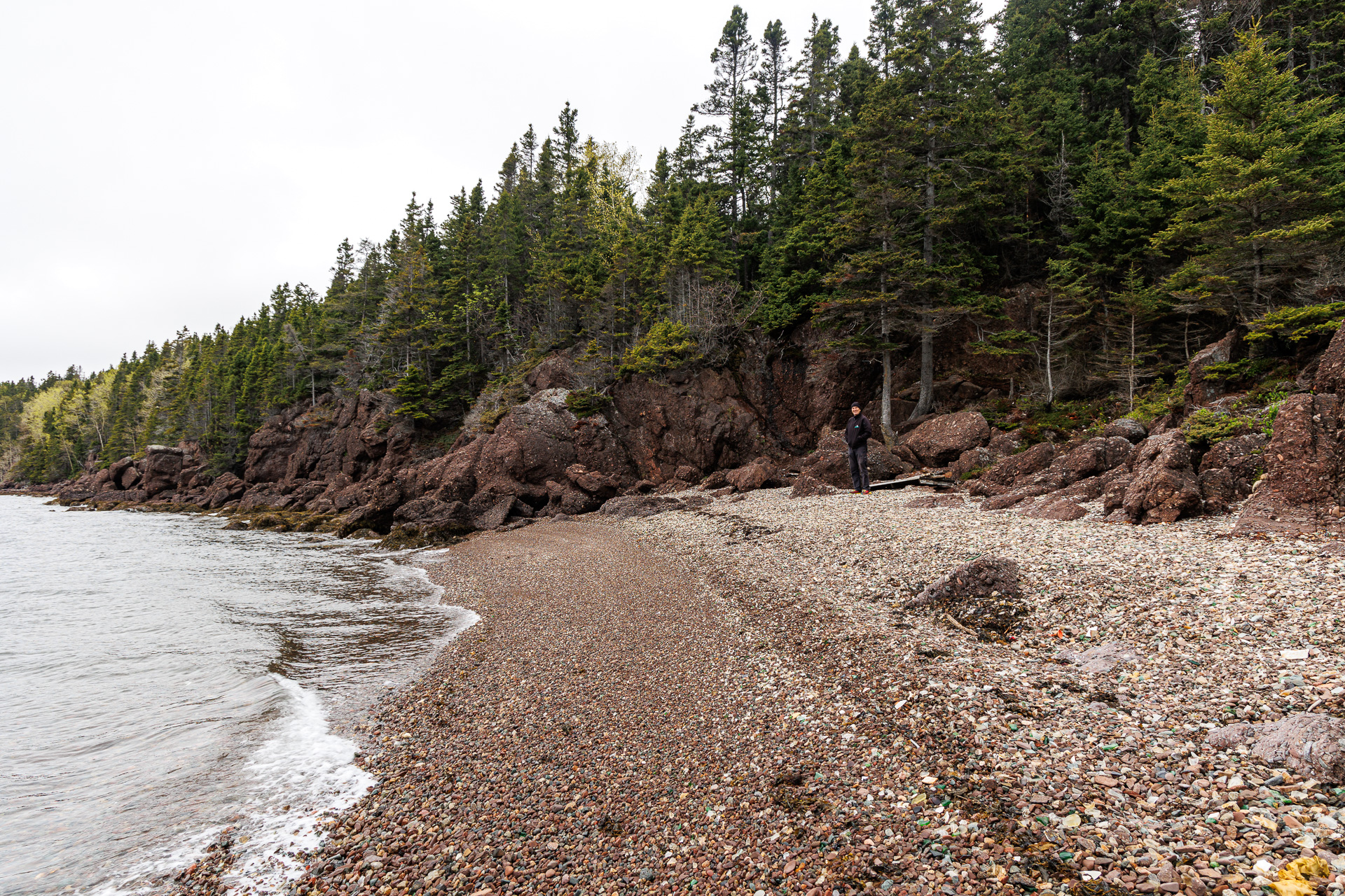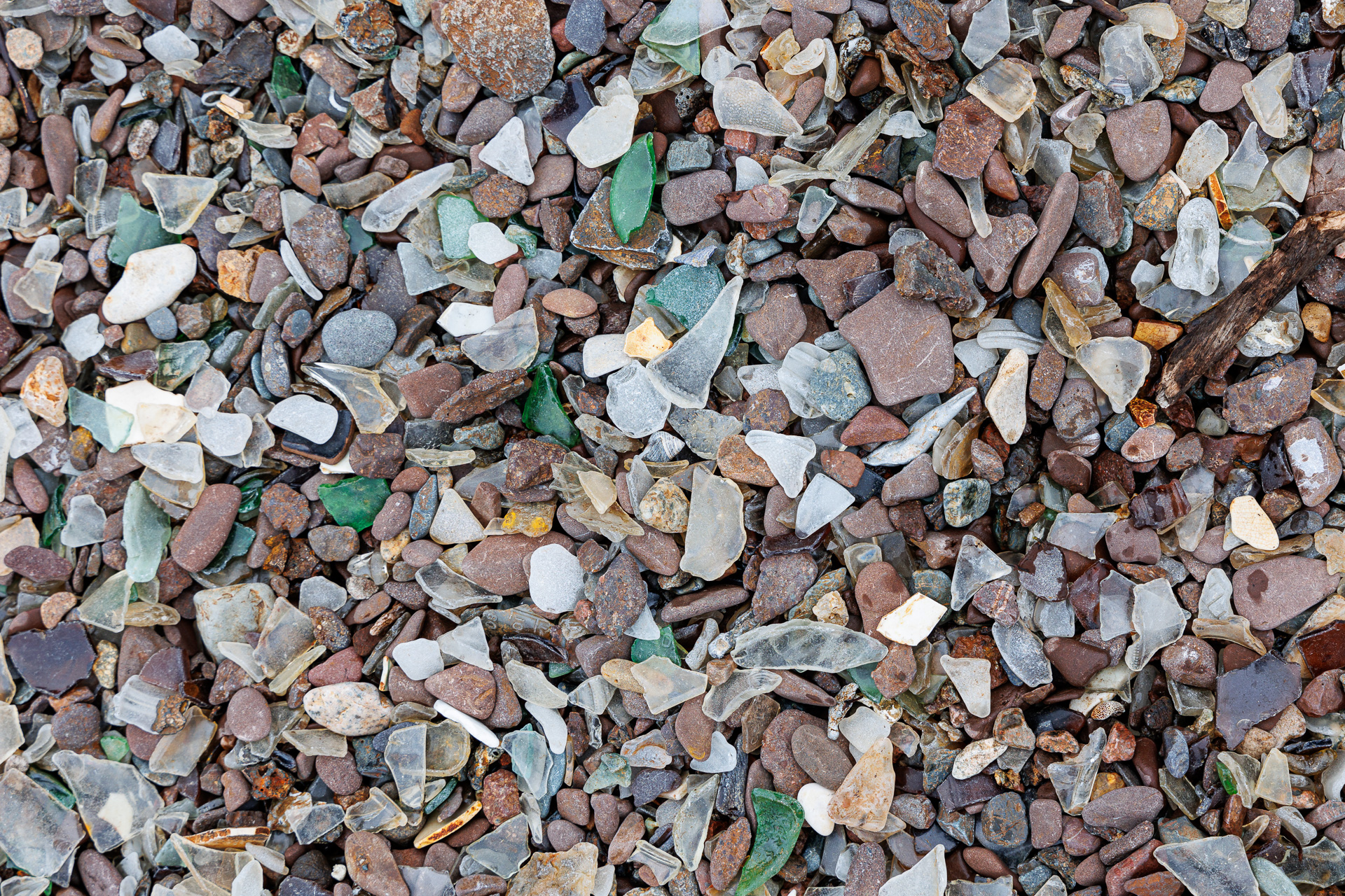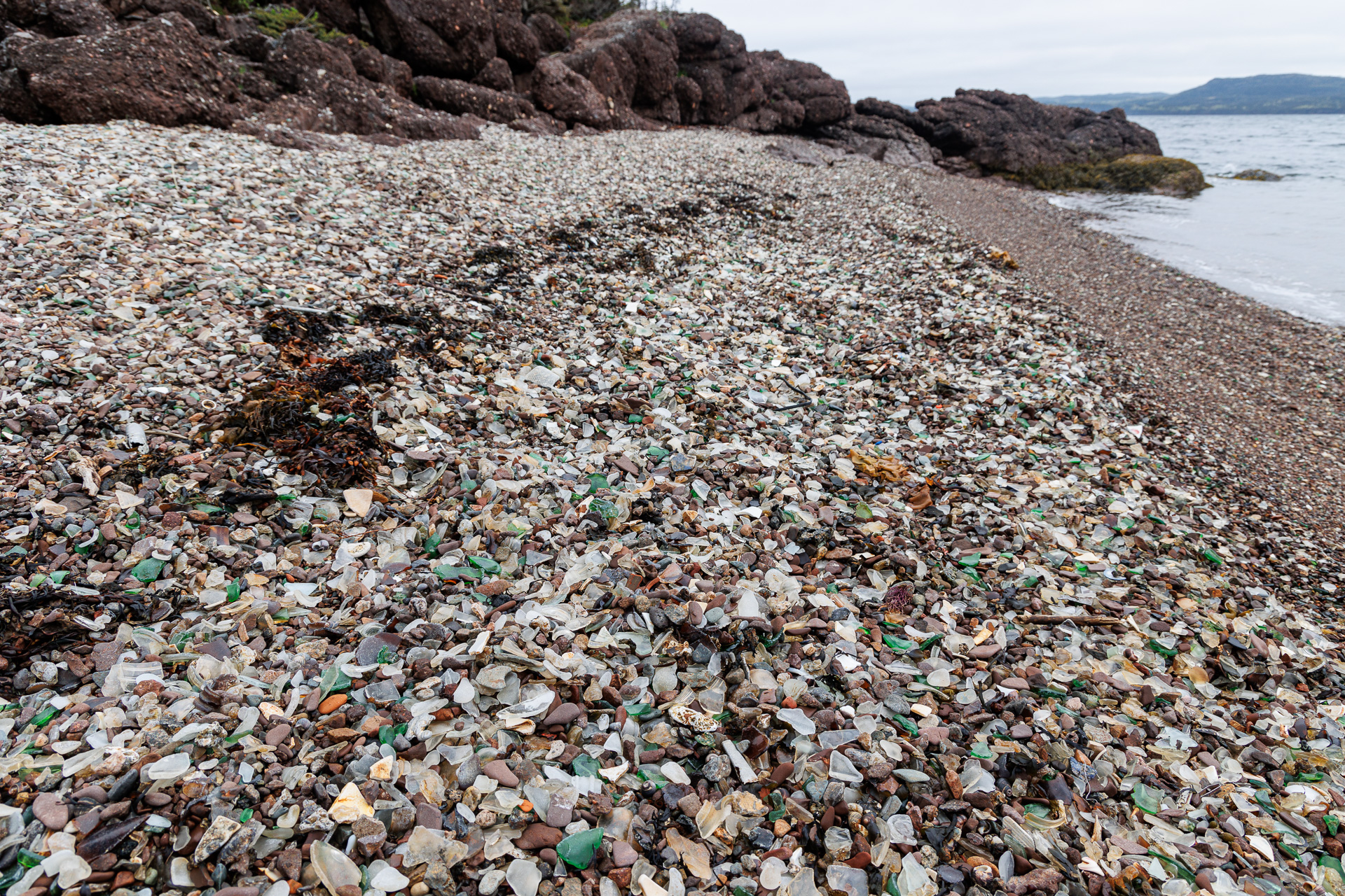 Les nombreux éclats de verre ont transformé le rivage en un patchwork coloré.