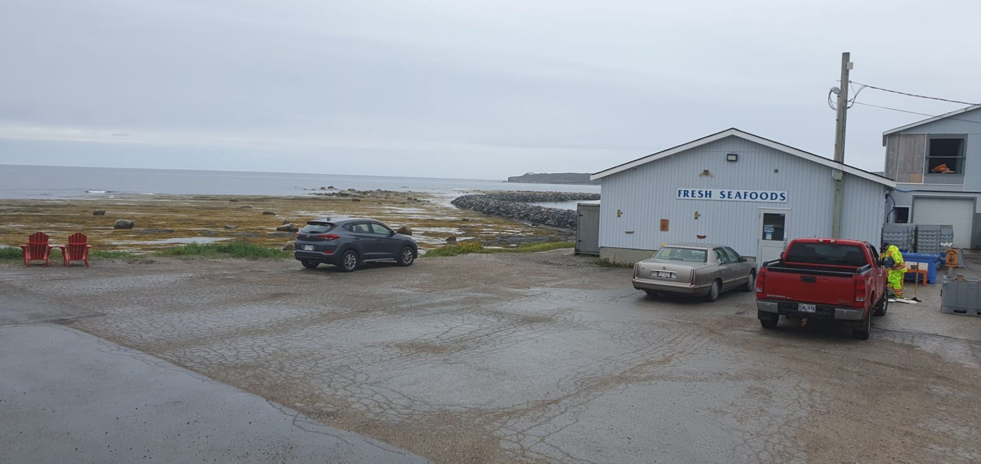 176403 km : Nous quittons notre beau bivouac et nous prenons la direction de Springdale soit 388 km en direction du sud-est. Pour la pause déjeuner, nous nous arrêtons chez Fresh Seafood (poissonnerie) qui se trouve à Rocky Harbour, juste sur le port.