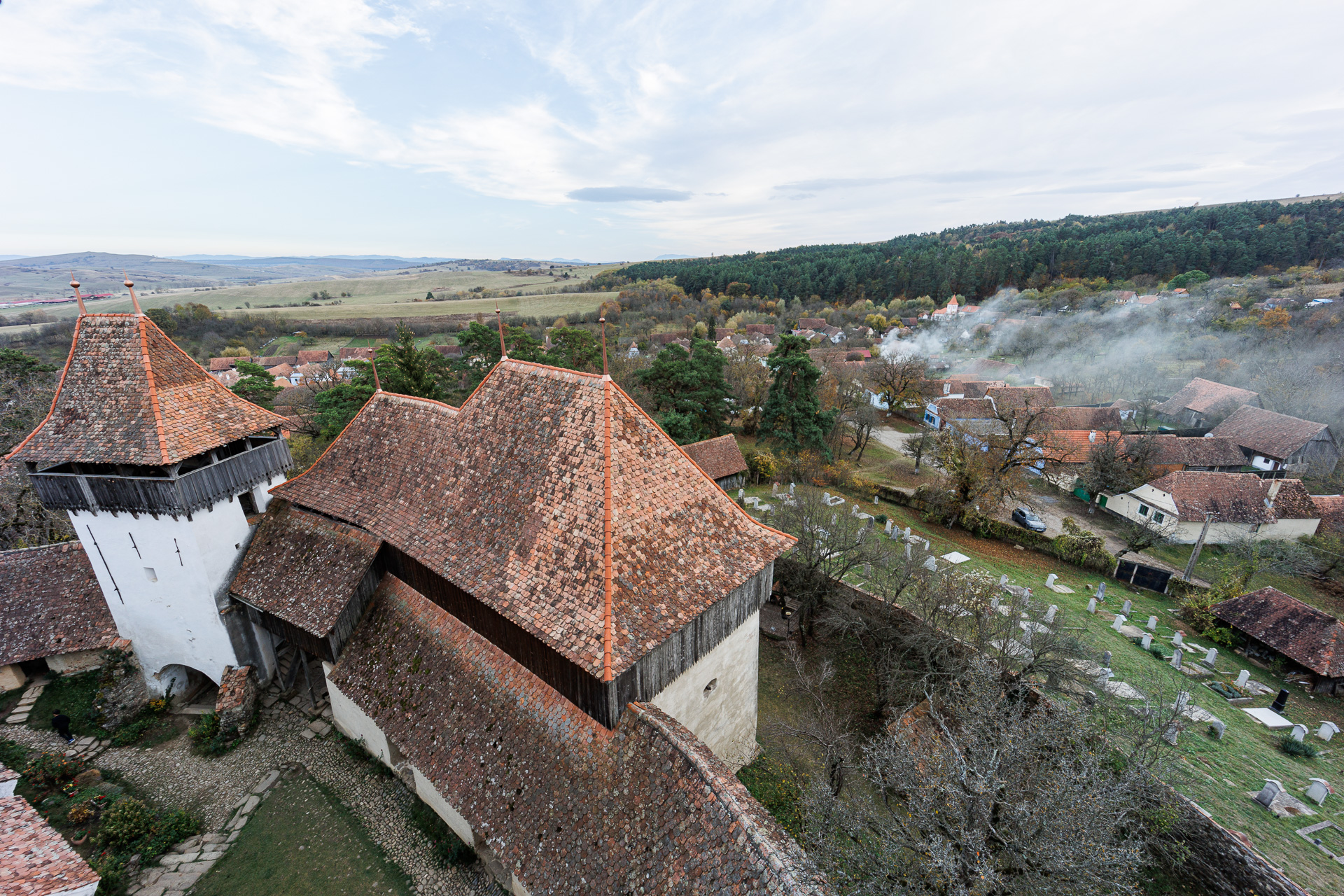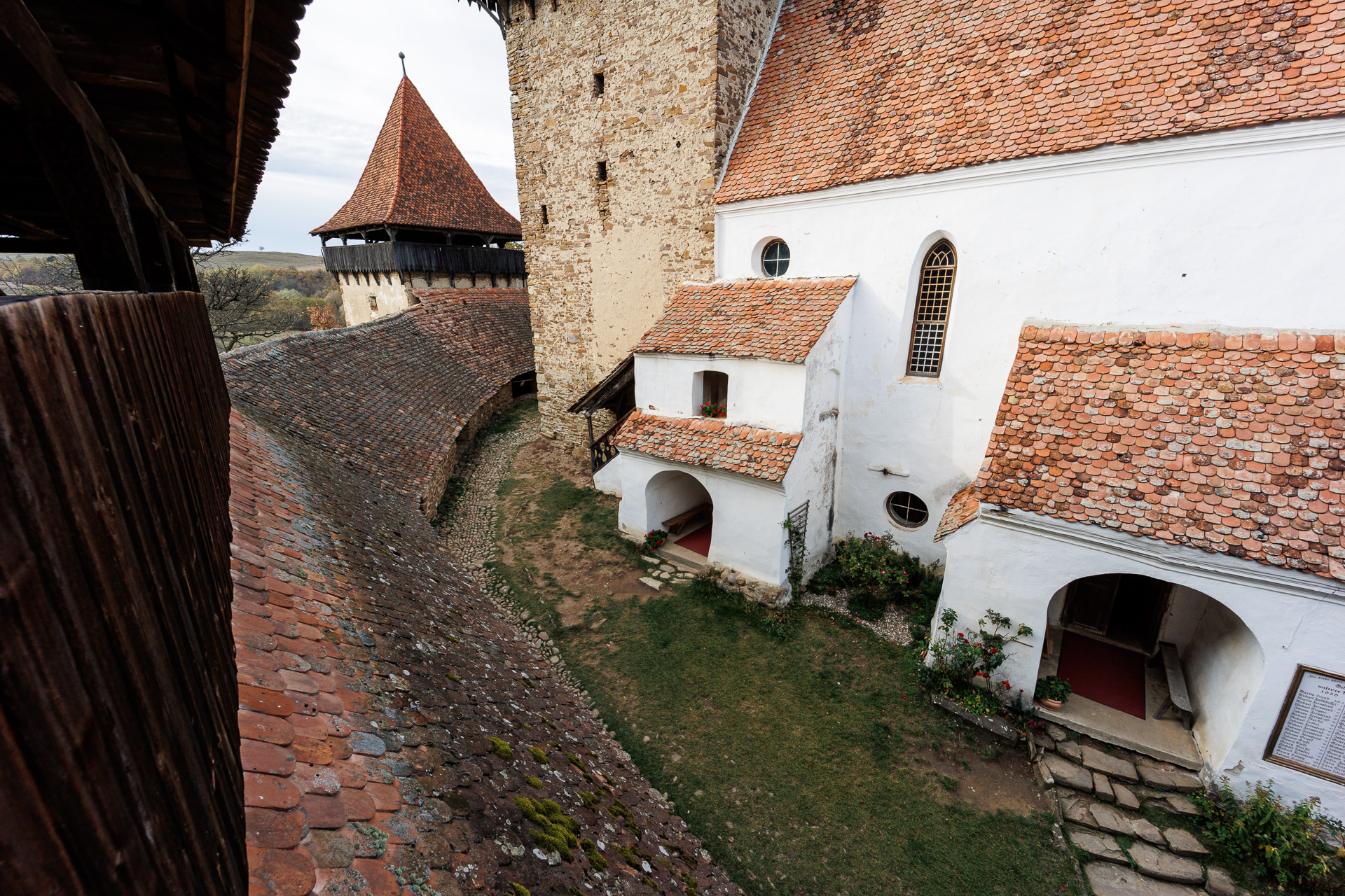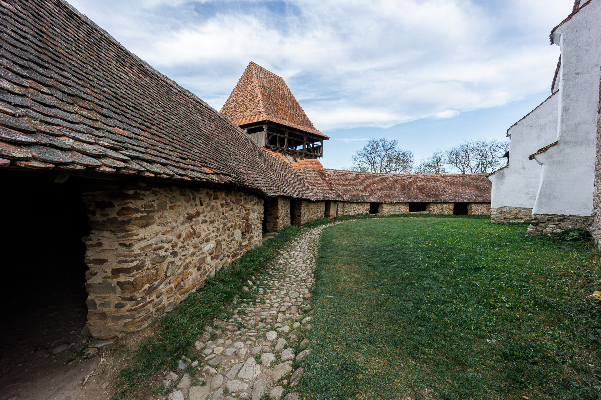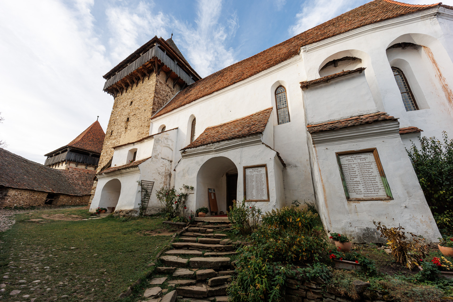 Elle nous mènera jusqu’à l’église fortifiée : l’Eglise Blanche. L’église fortifiée de Viscri est entrée au classement des monuments protégés par l’UNESCO en 1999. C’est la plus ancienne église fortifiée de Roumanie. L’église a tout d’abord été construite au 12ème siècle puis fortifiée avec des tours, des bastions et deux murs de défense. Le renforcement progressif des défenses a duré jusqu’au 16ème siècle, Cette église fortifiée a été construite par les habitants saxons à l’époque médiévale.