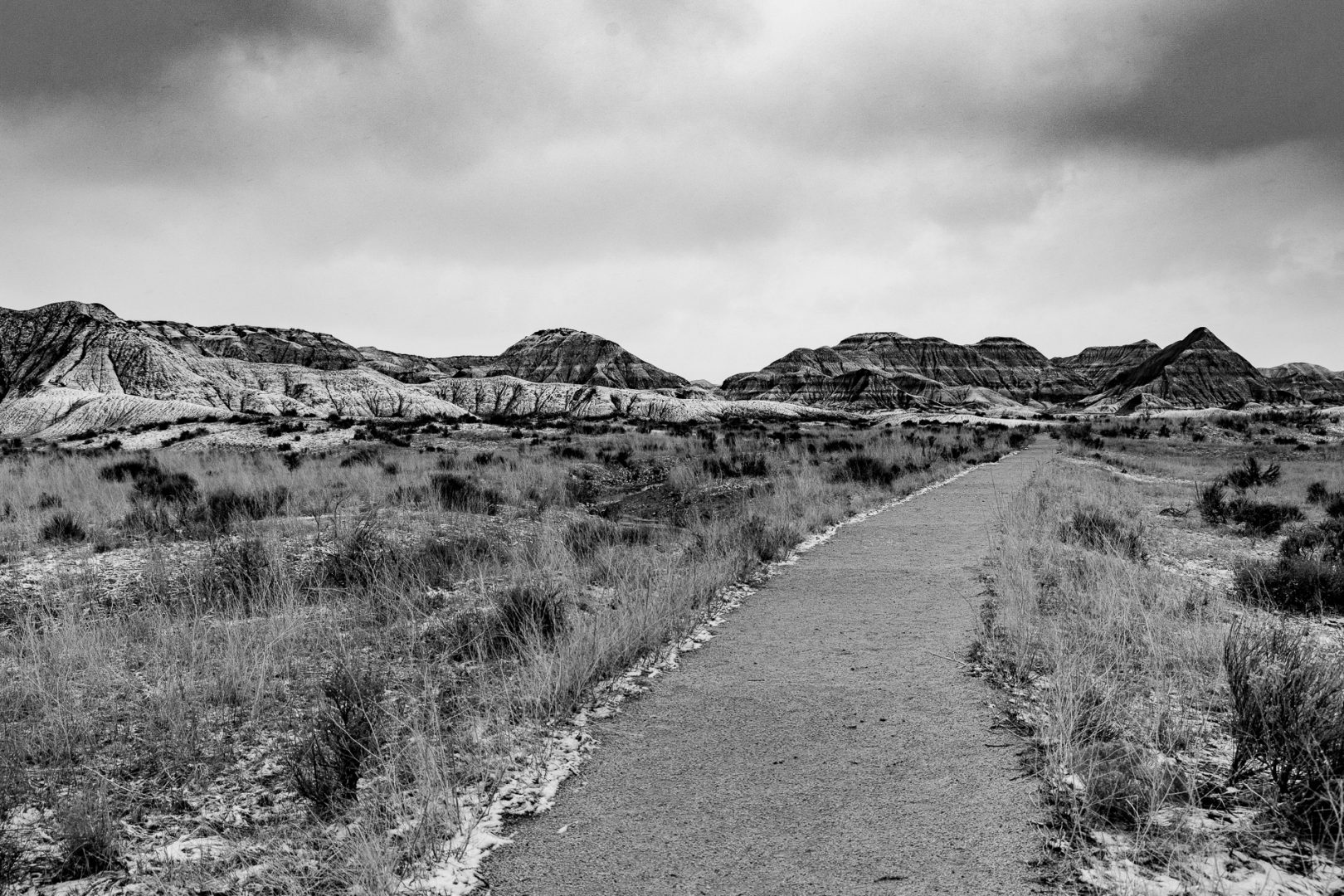 Le paysage est vraiment inhospitalié mais tellement beau 🤩 ! En noir et blanc, on sent bien que nous sommes dans les Badlands 😉 !