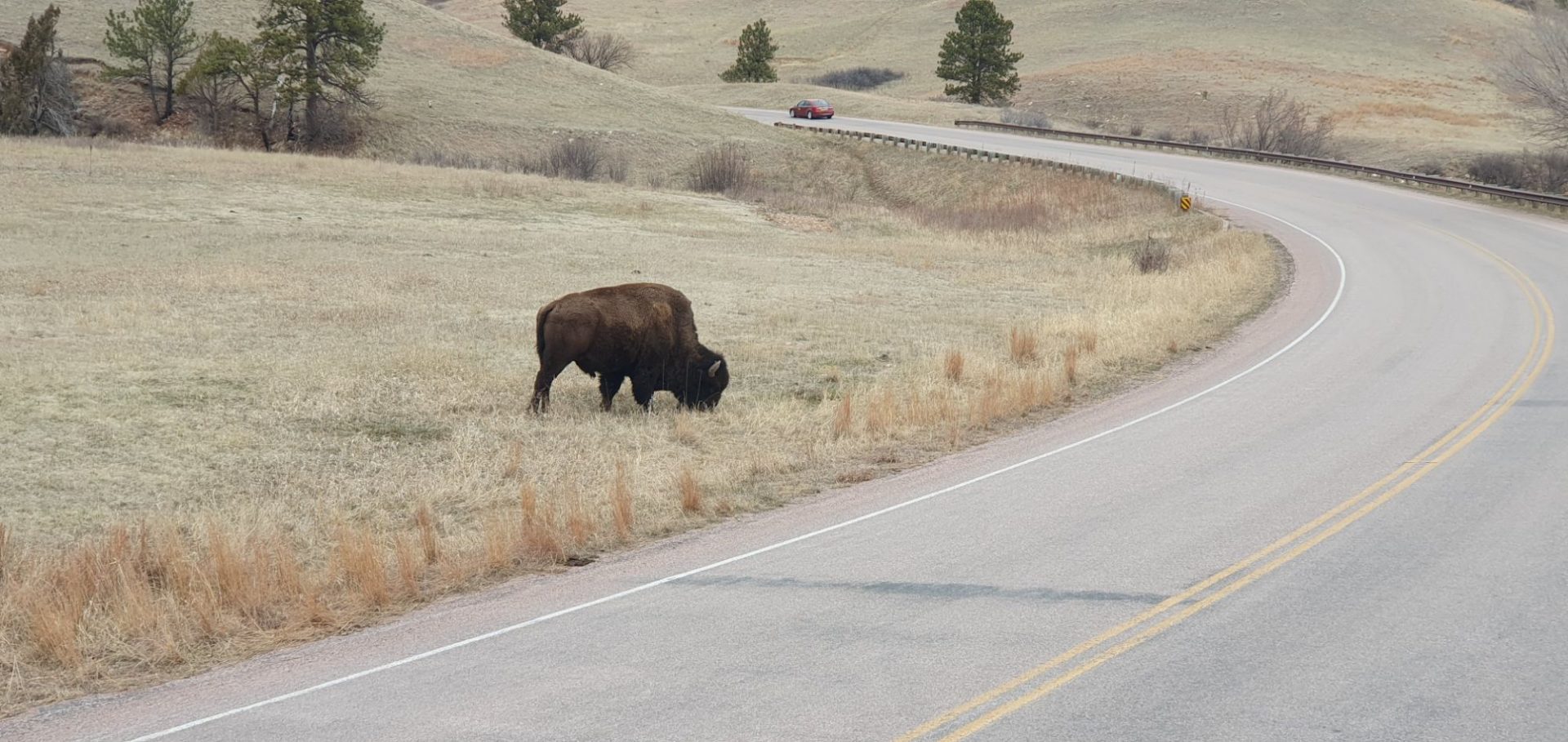 Notre premier bison 🤩… Attention de ne pas le percuter, le camion n’aimerait pas du tout, du tout… et nous non plus 🥴 !