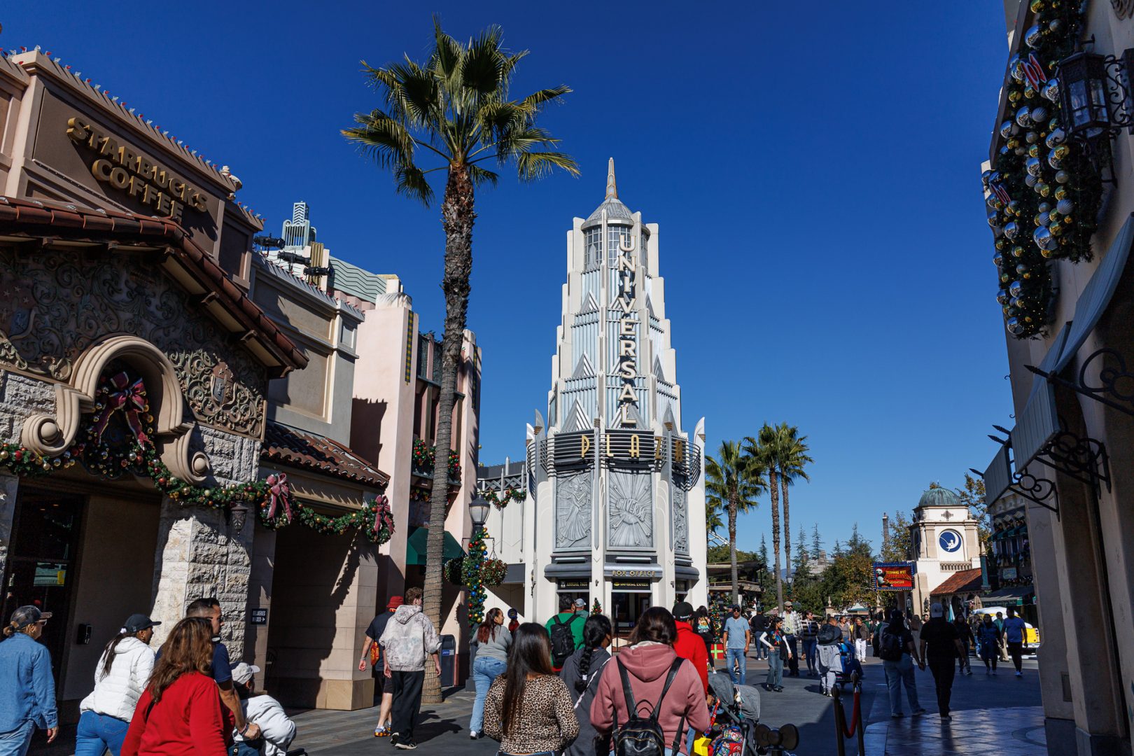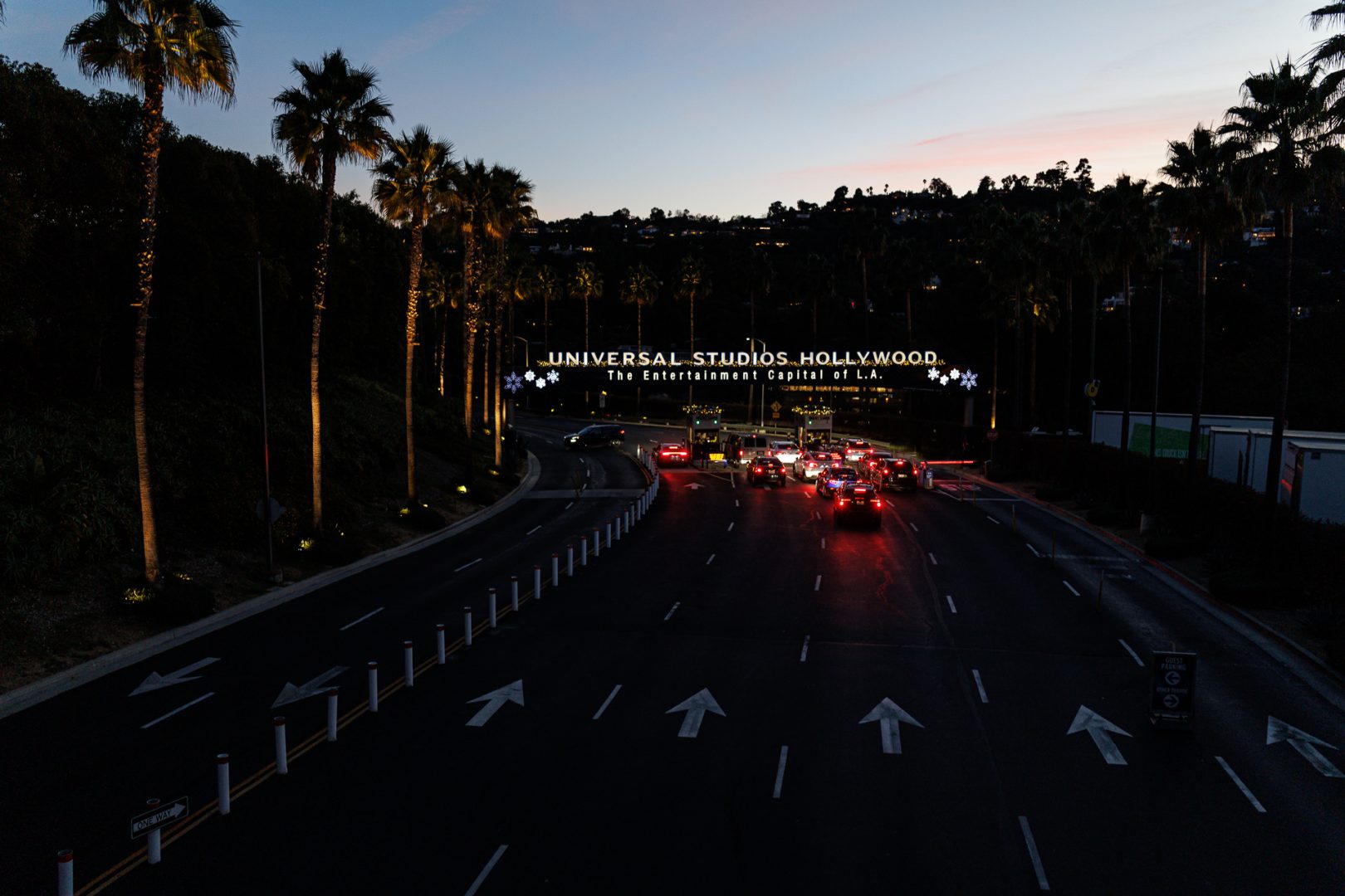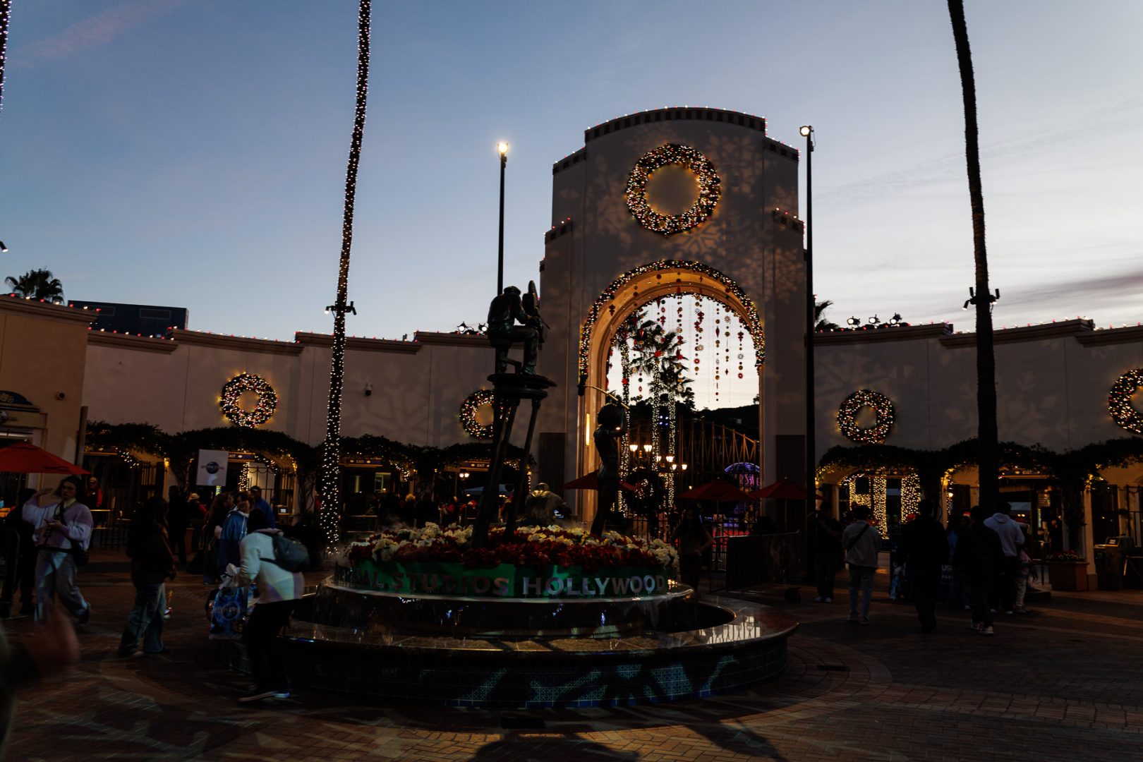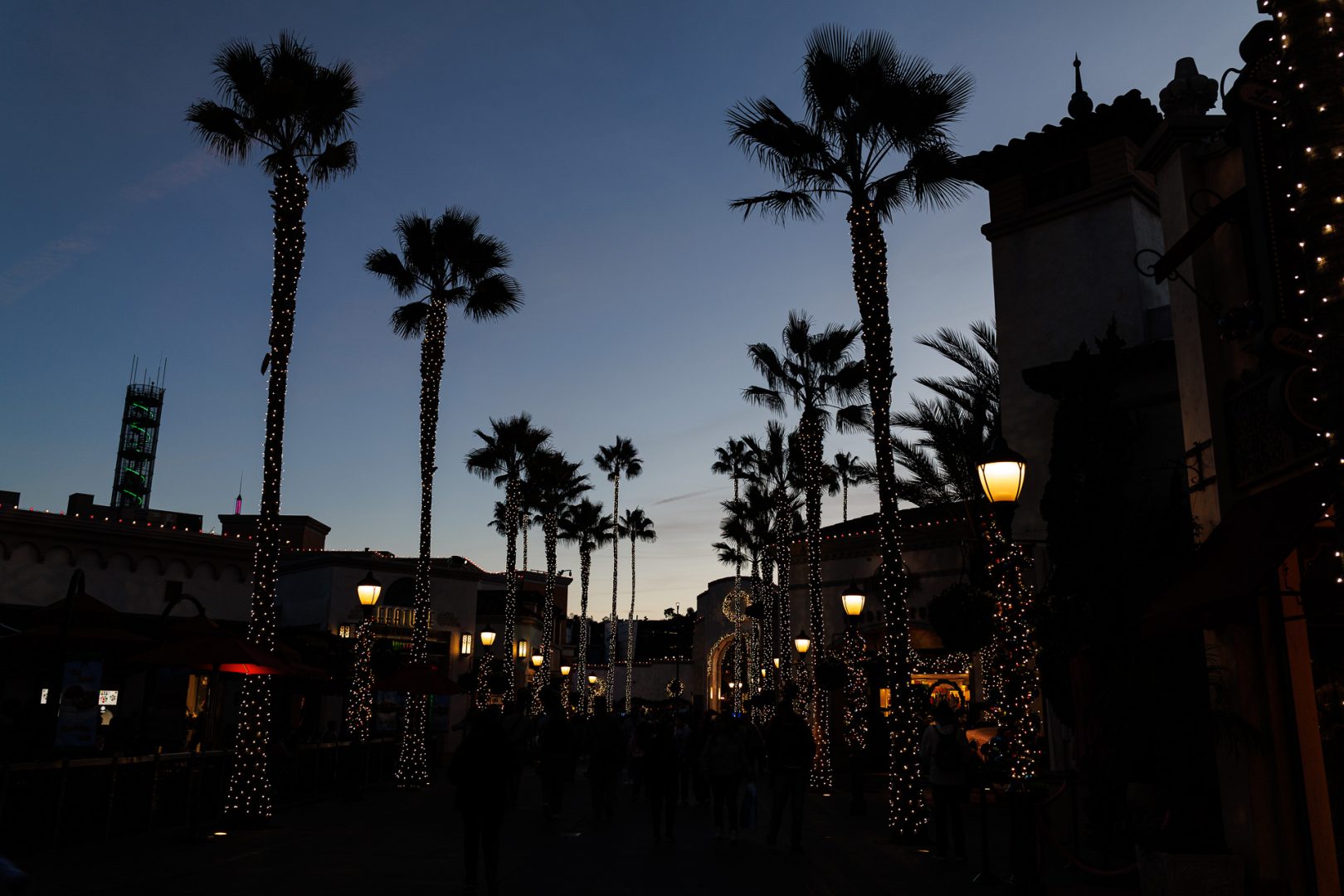 C’est au coucher de soleil que nous quittons Universal Studios, illuminé également par les décorations de Noël.
