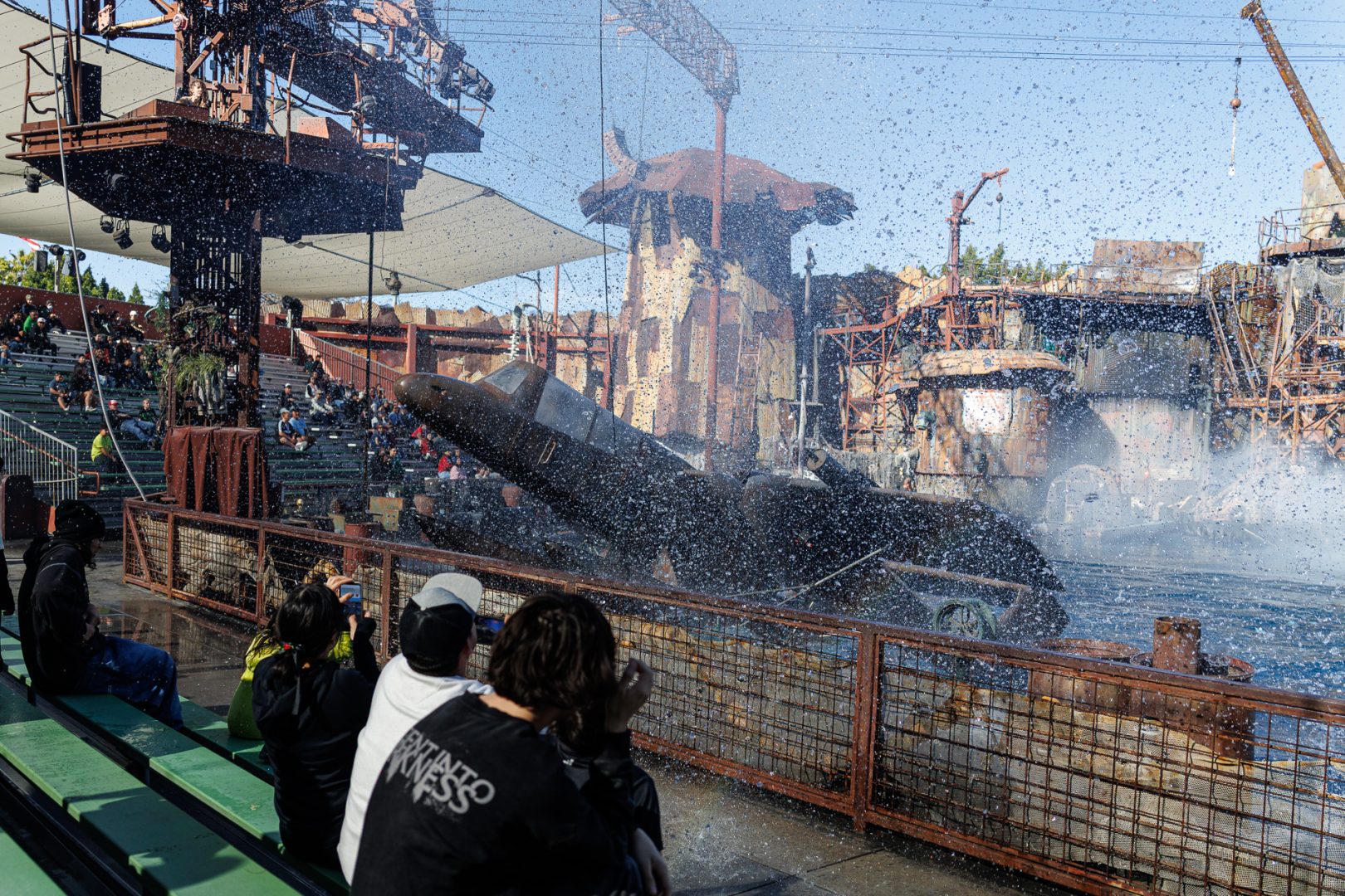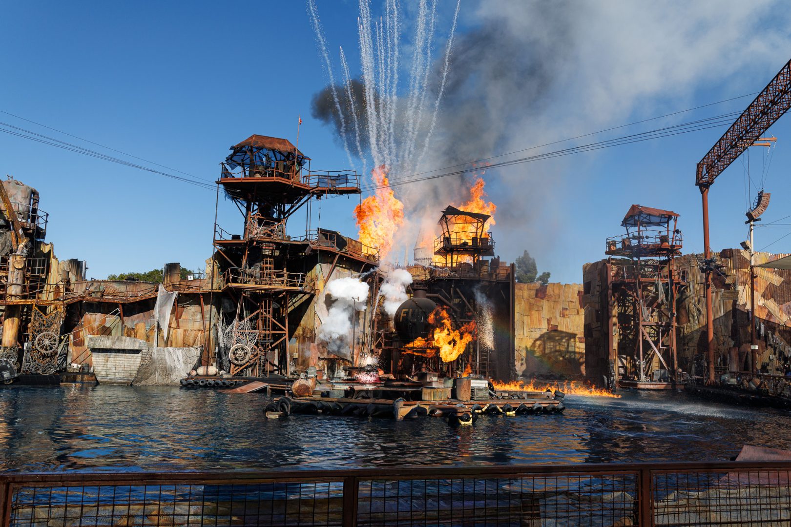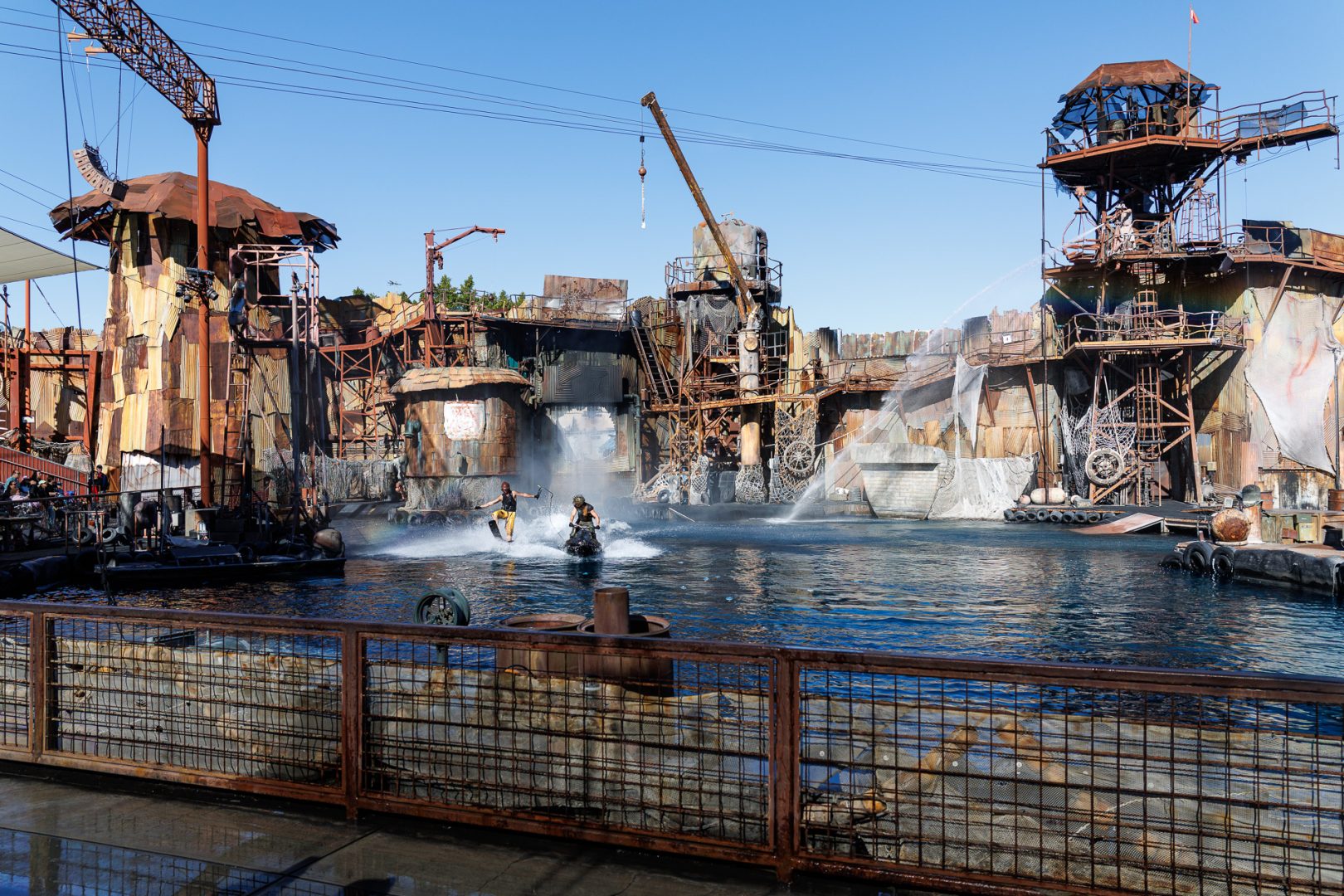 Nous allons assister au spectacle Waterworld. C’est une attraction de cascades en direct basée sur le film du même nom de 1995 avec Kévin Kostner et Jane Tripplehorn entre autres.