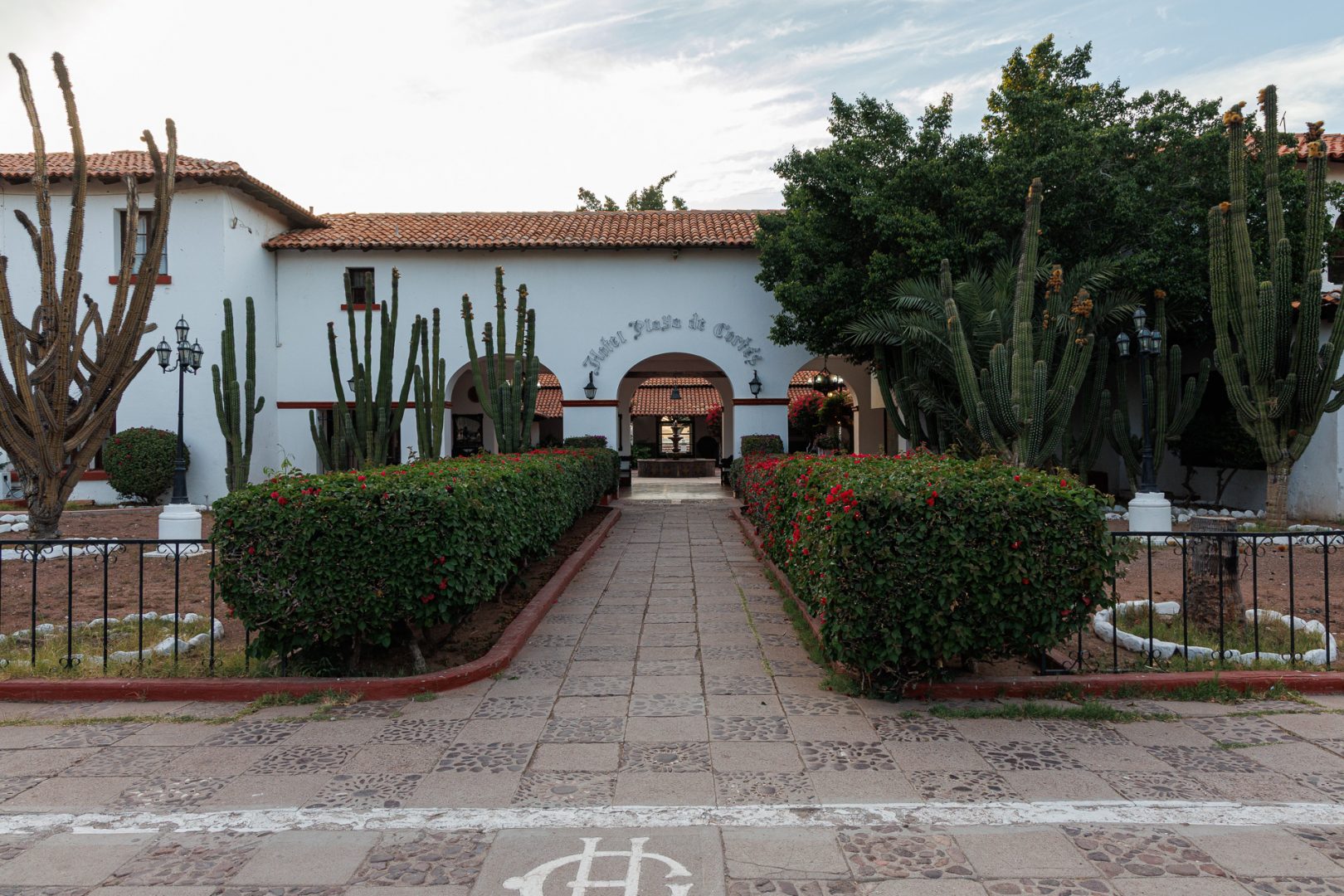 Ouvert en 1936, cet établissement de style colonial a été conçu par l’architecte Ignacio Díaz Morales (1905-1992), célèbre architecte mexicain. L’hôtel Playa de Cortés fut construit par la Southern Pacific Railroad pour attirer les voyageurs. Considéré comme l’un des premiers hôtels de luxe sur les côtes du Sonora, il a attiré, par le passé des célébrités comme le célèbre chef d’orchestre américain Ray Conniff et la chanteuse Liza Minnelli. Aujourd’hui, l’hôtel semble manquer un peu d’entretien mais conserve le charme désuet qui plaît tant à Geneviève 😉.