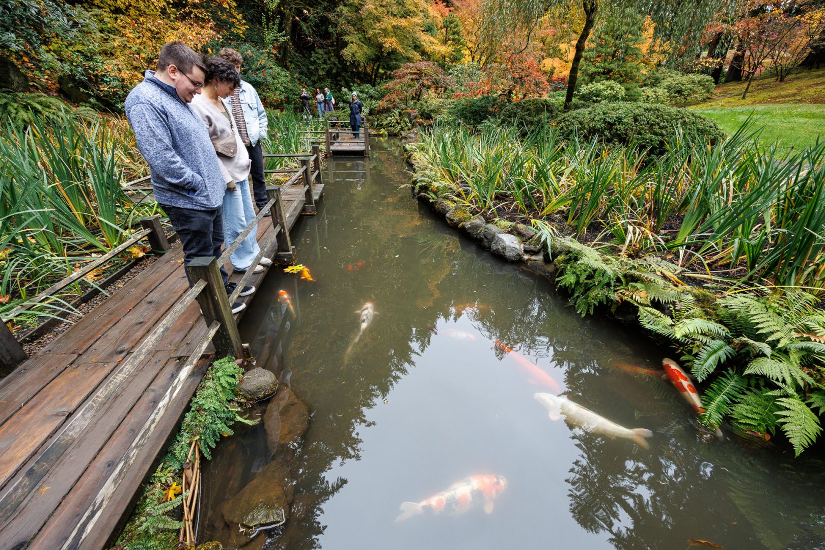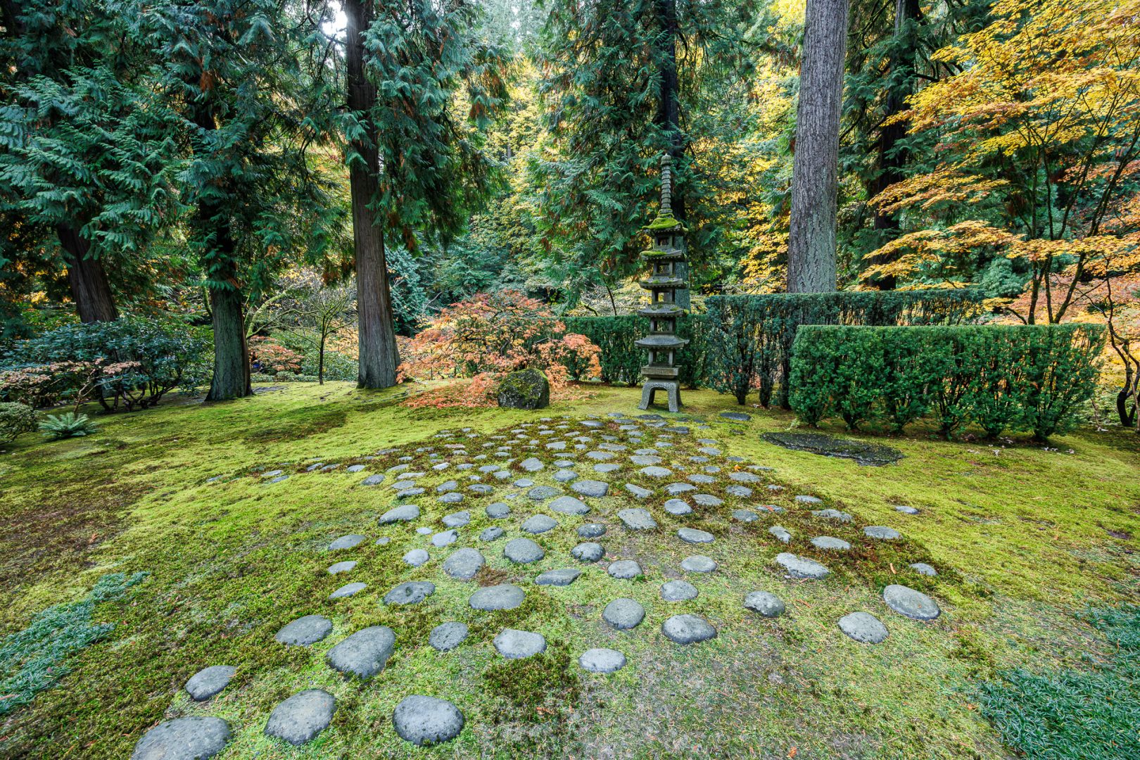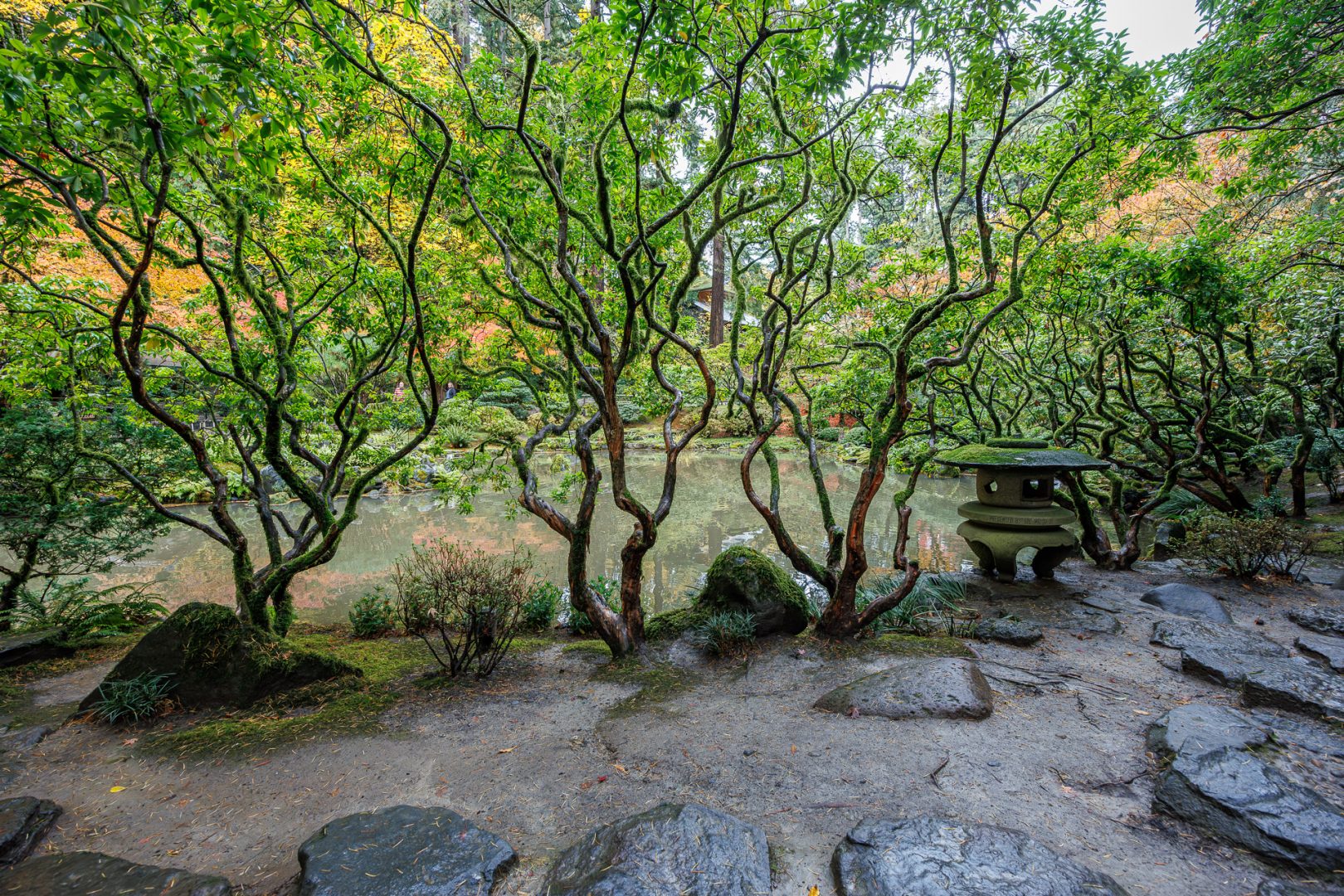 Nous n’avons que quelques mètres à faire pour nous plonger dans l’ambiance japonaise. Le jardin, qui a ouvert ses portes au public en 1967, occupe 5,06 hectares dans le parc Washington et est adjacent à l’International Rose Test Garden.