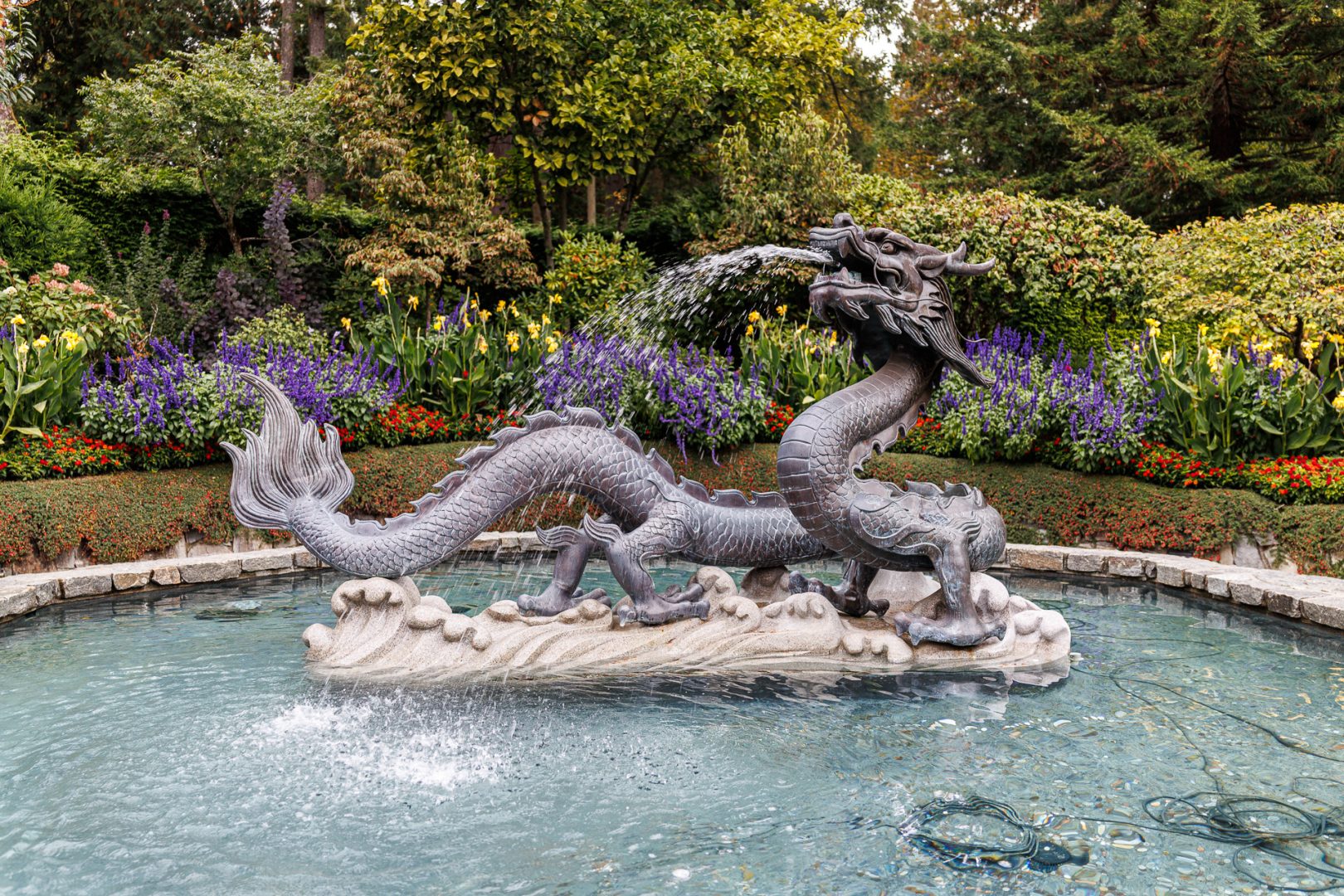 Plusieurs statues de bronze sont exposées dans les jardins,