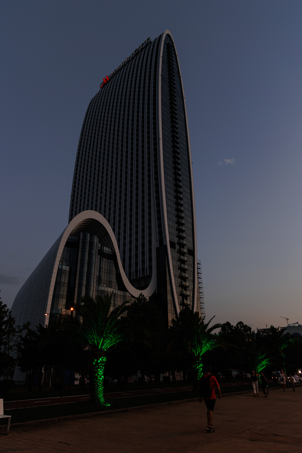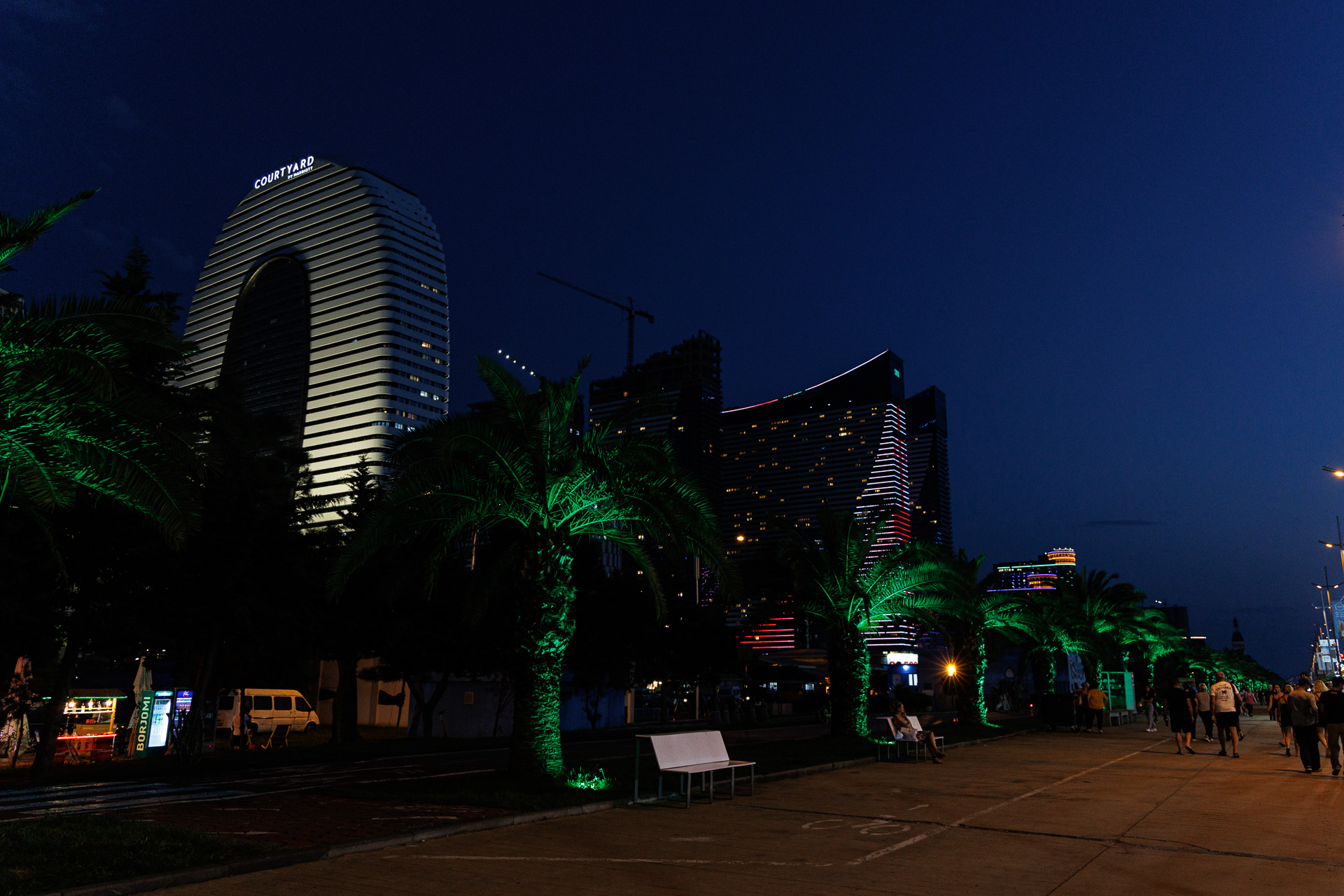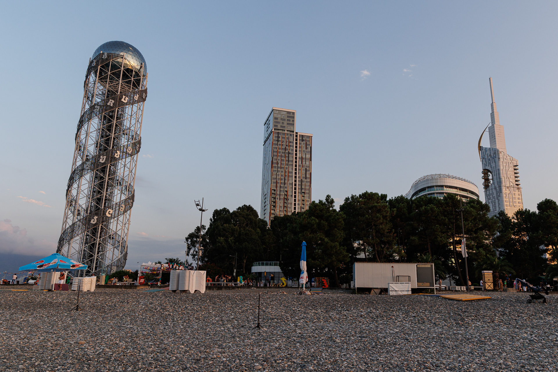 Nous suivons la rivière sur encore quelques dizaines de kilomètres et arrivons à Batoumi, grande station balnéaire sur les bords de la mer noire et deuxième ville de Géorgie. Nous posons le camion à proximité de la plage, au pied de la tour Alphabet (celle de gauche) et partons en découverte rapide de la ville car on sent bien le caractère balnéaire de la ville, ce qui n’est pas trop notre tasse de thé.