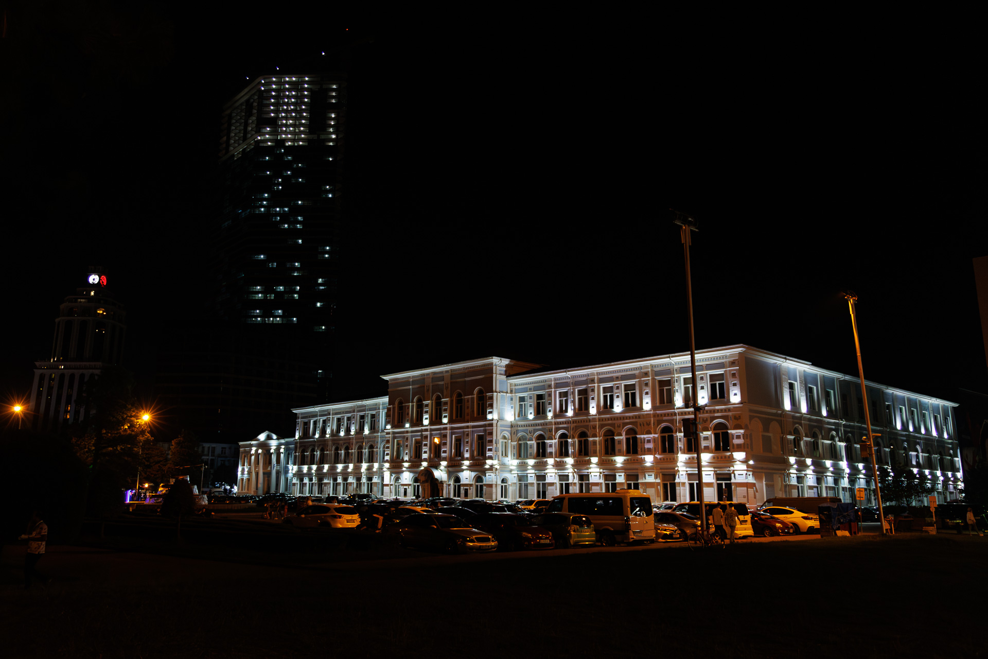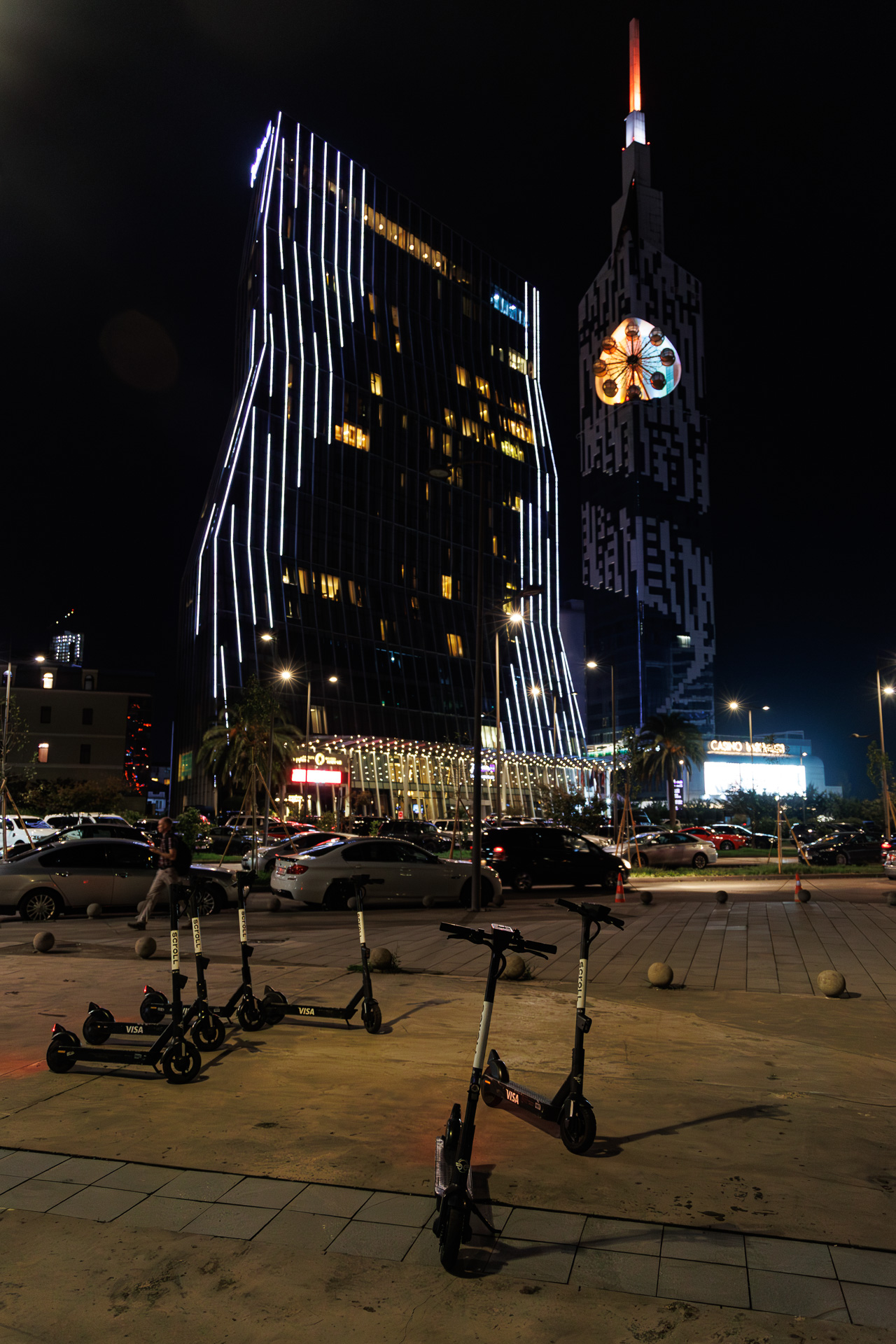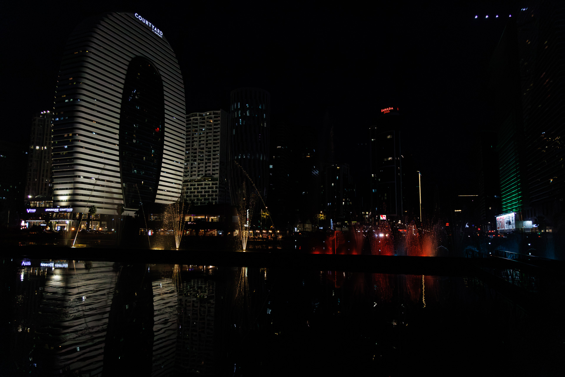 Nous suivons la rivière sur encore quelques dizaines de kilomètres et arrivons à Batoumi, grande station balnéaire sur les bords de la mer noire et deuxième ville de Géorgie. Nous posons le camion à proximité de la plage, au pied de la tour Alphabet (celle de gauche) et partons en découverte rapide de la ville car on sent bien le caractère balnéaire de la ville, ce qui n’est pas trop notre tasse de thé.
