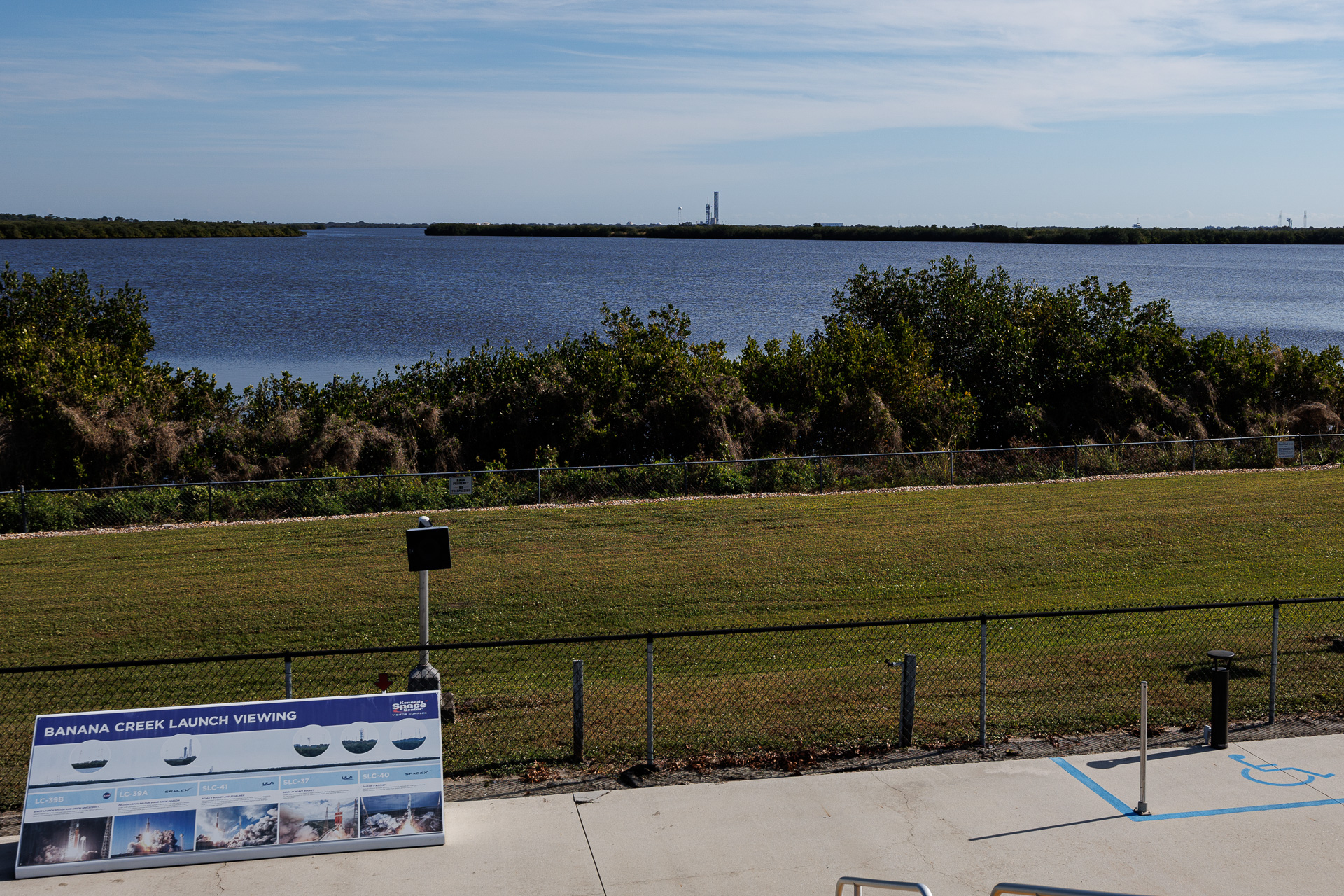 Au loin, nous apercevons la rampe de lancement. Nous sommes rassurés… en cas de problème, la mer fera une barrière protectrice 😁 !