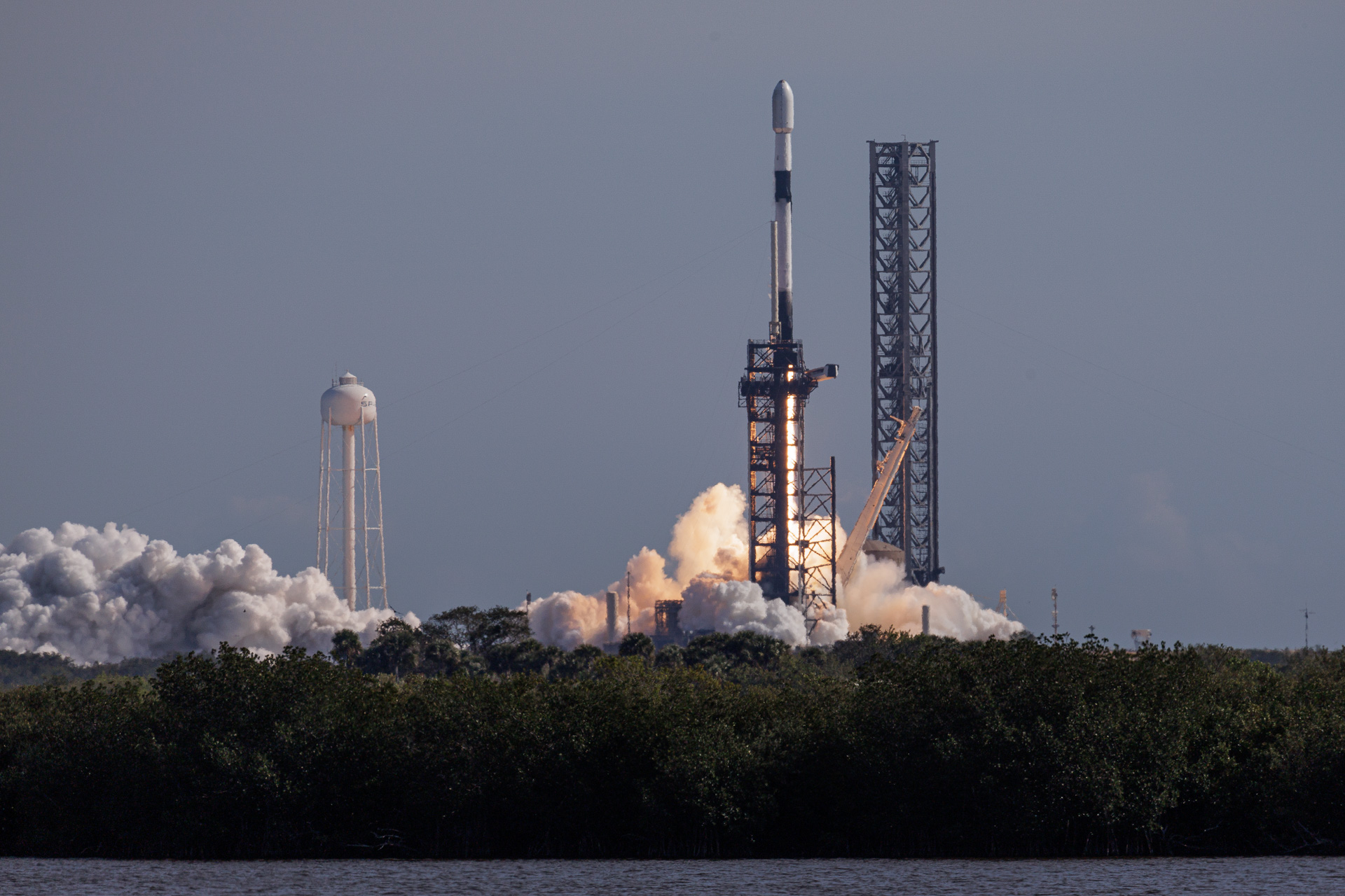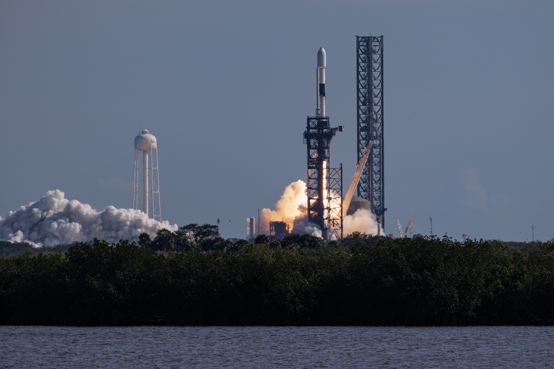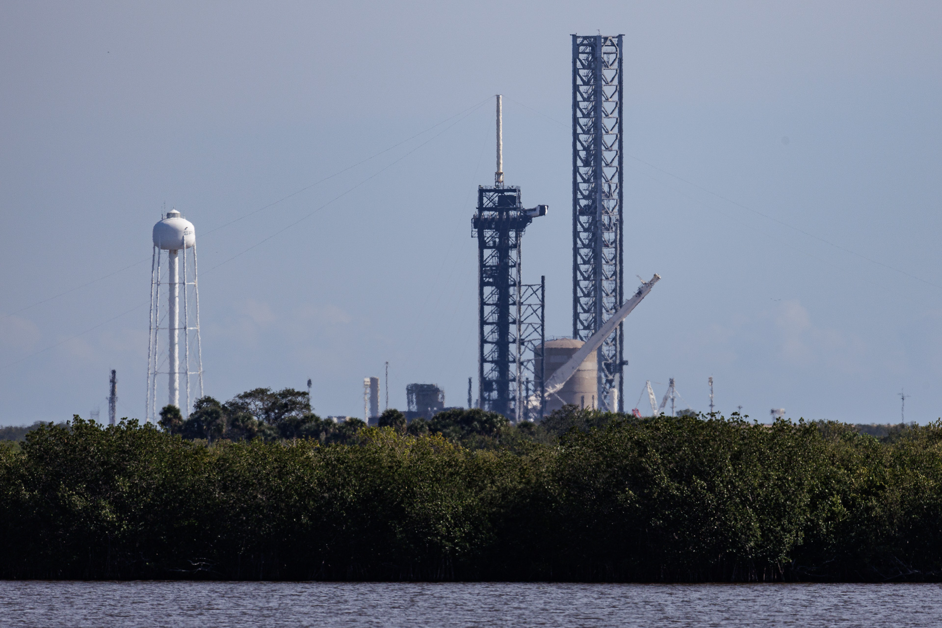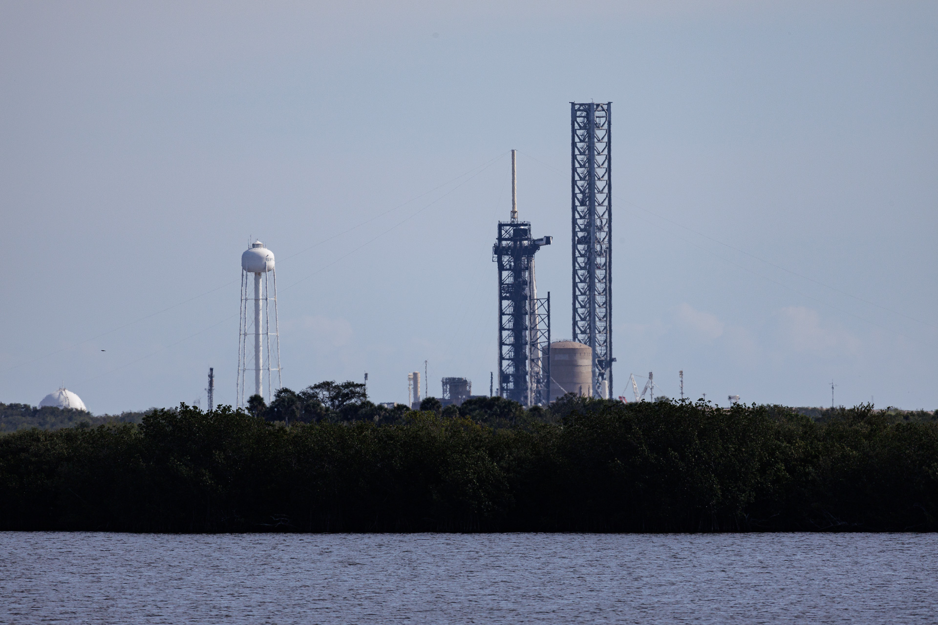 La fusée est là, prête au lancement, à environ 6 kilomètres de nous. Le pas de tir utilisé est le Pad 39 A du Kennedy Space Center. Ce pas de tir a acceuilli la Saturn V (missions Apollo), la Navette Spatiale, et devait être modifié pour le lanceur Ares V du programme Constellation arrêté en cours de route. Il est maintenant loué par SpaceX à la Nasa pour 20 ans car il est résistant, pratique et modifiable facilement, en plus d’être un lieu historique.