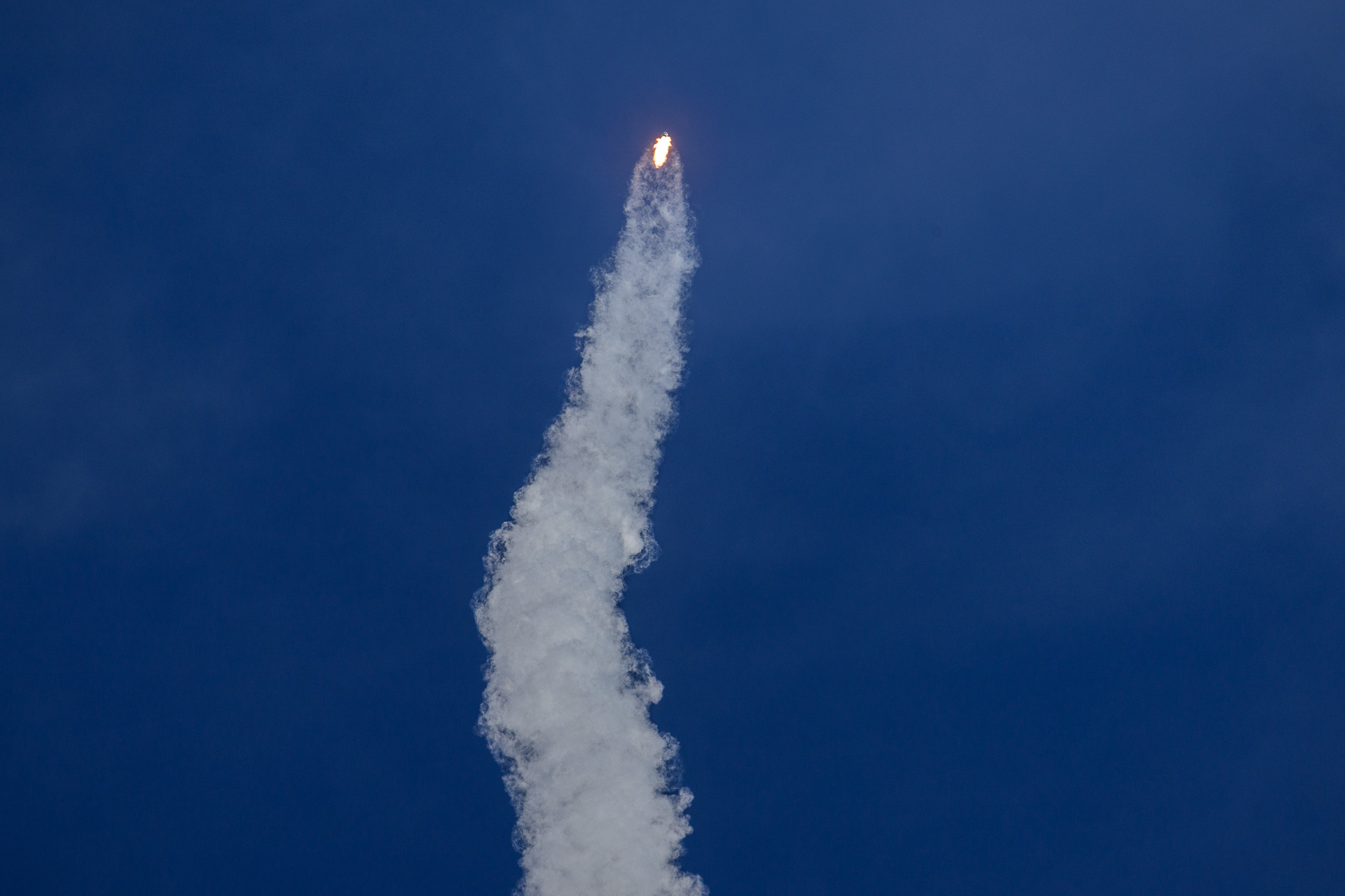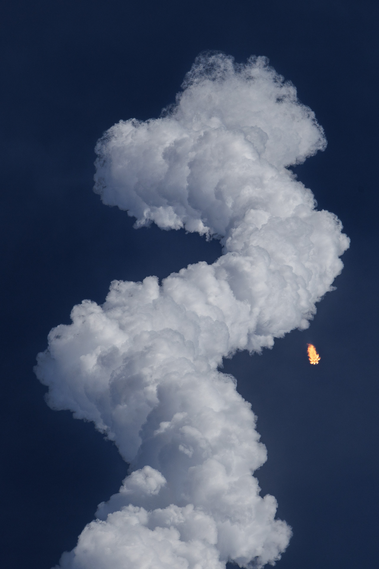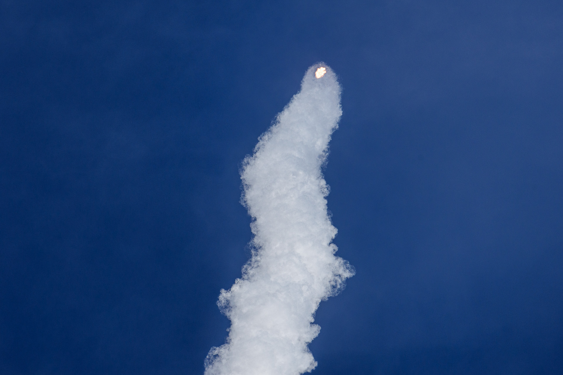 Sur la photo suivante, on peut distinguer, en zoomant, l’anneau de condensation qui se forme sur la tête de la fusée.