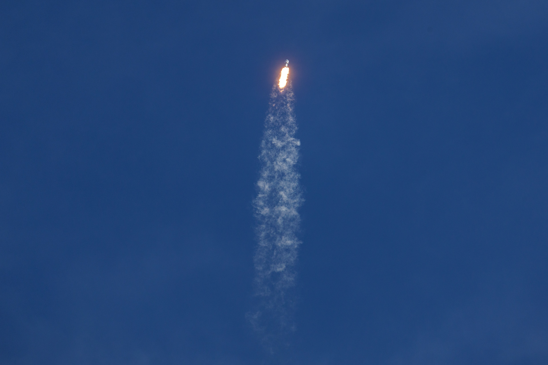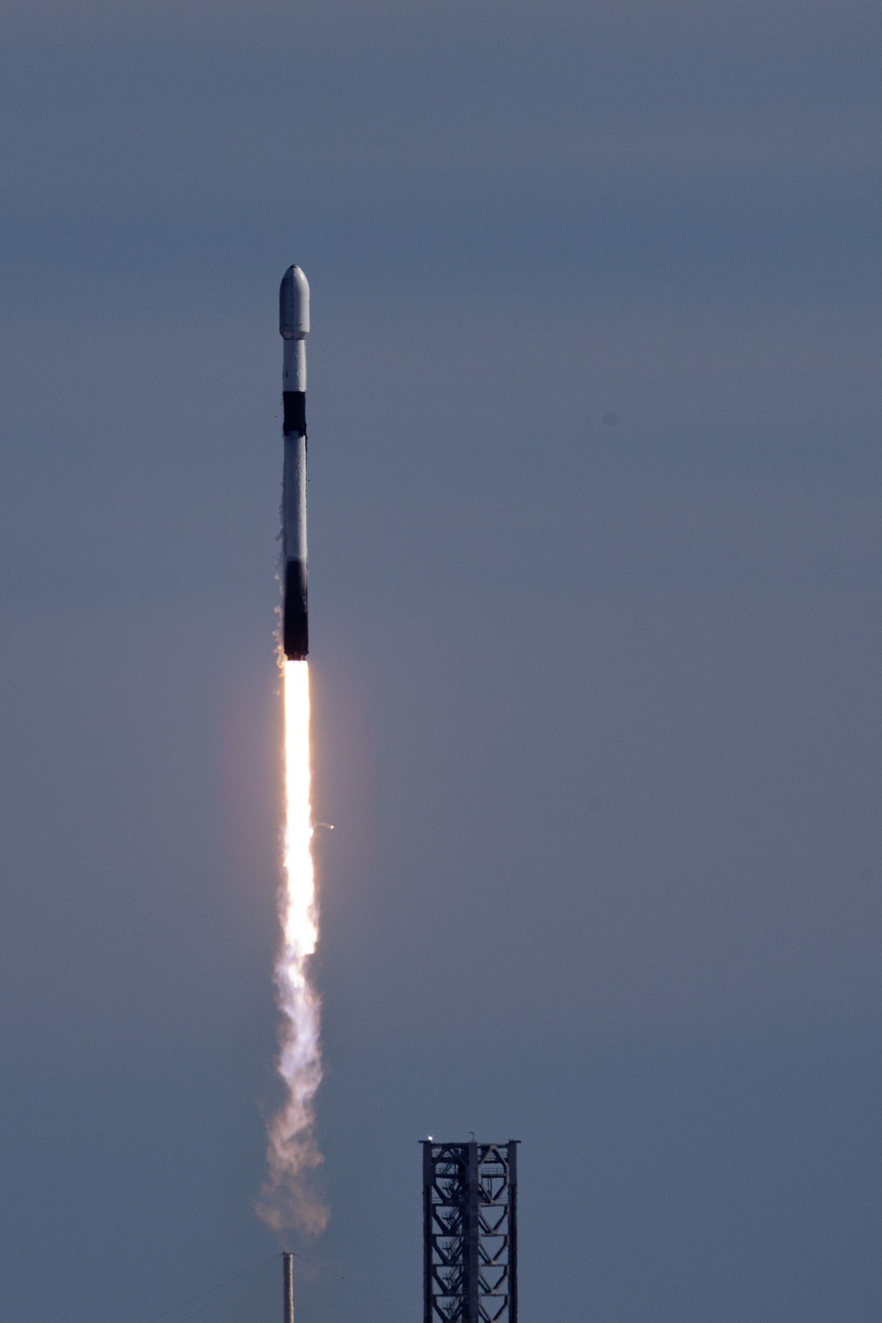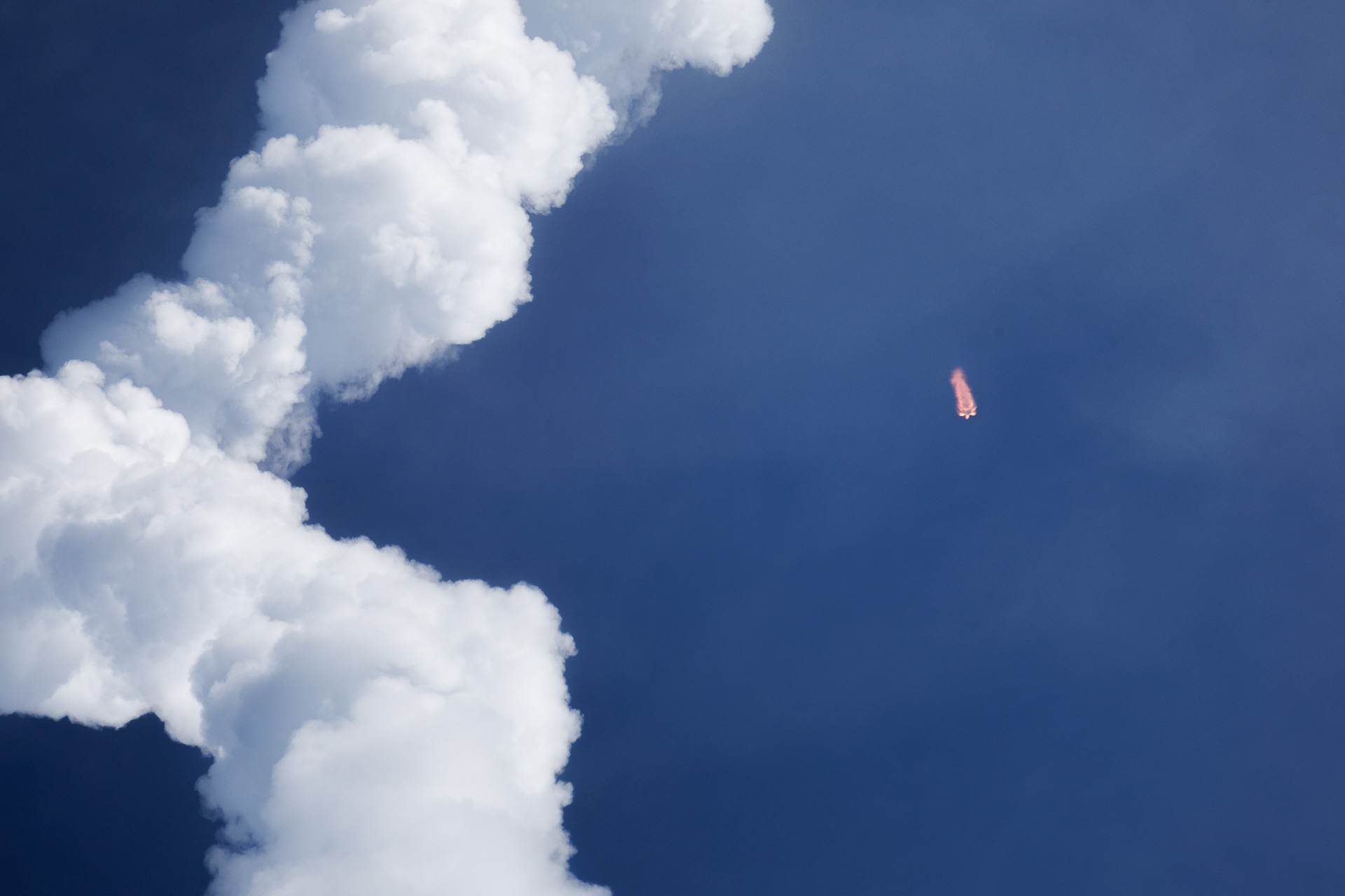 Sur la photo suivante, on peut distinguer, en zoomant, l’anneau de condensation qui se forme sur la tête de la fusée.