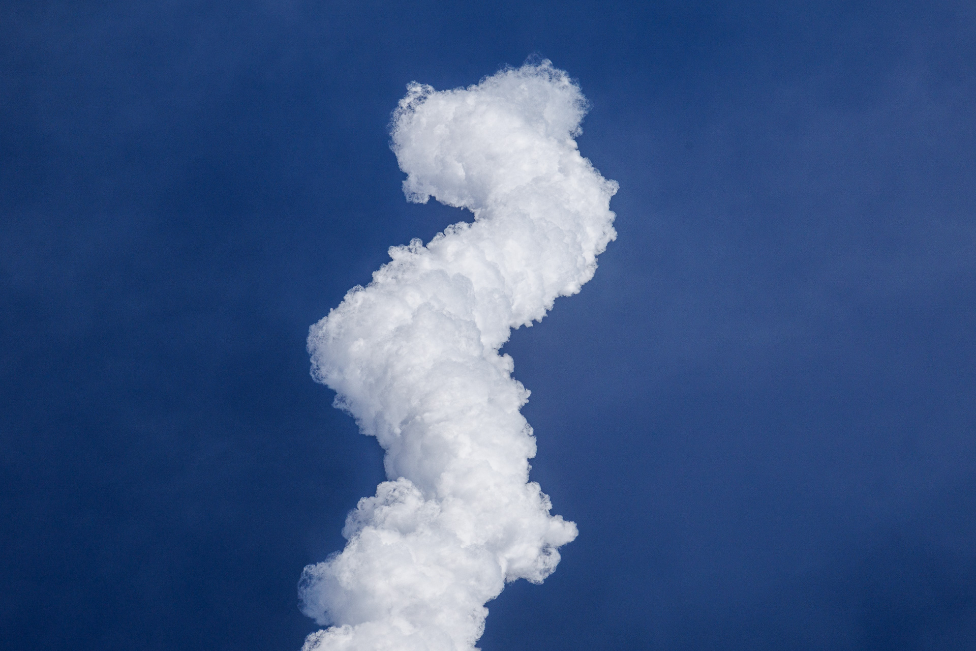 Condensation qui va apparaître progressivement dans la traîne de la fusée, puis s’arrêter rapidement.