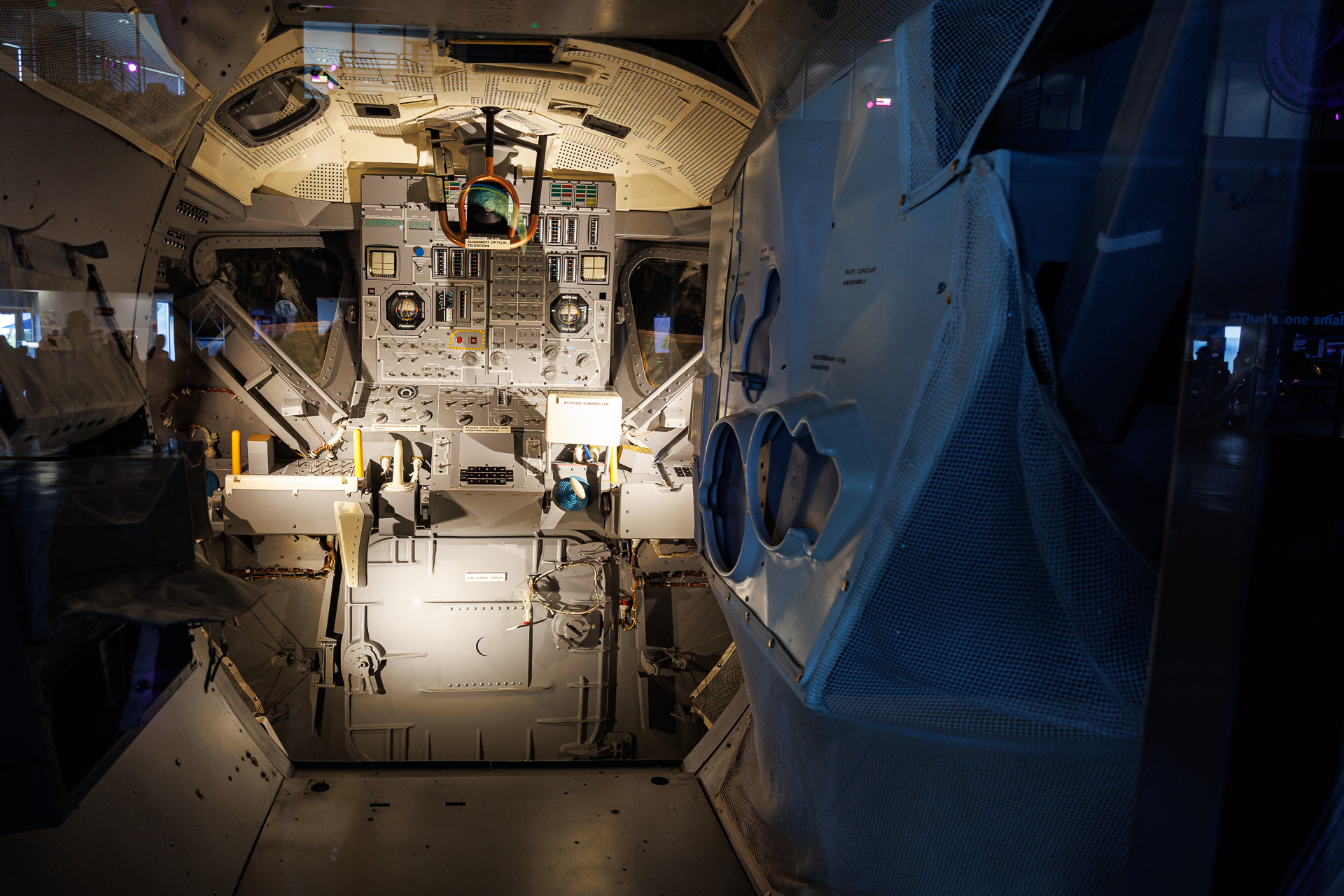 Vue de l’intérieur du module de commande Apollo.