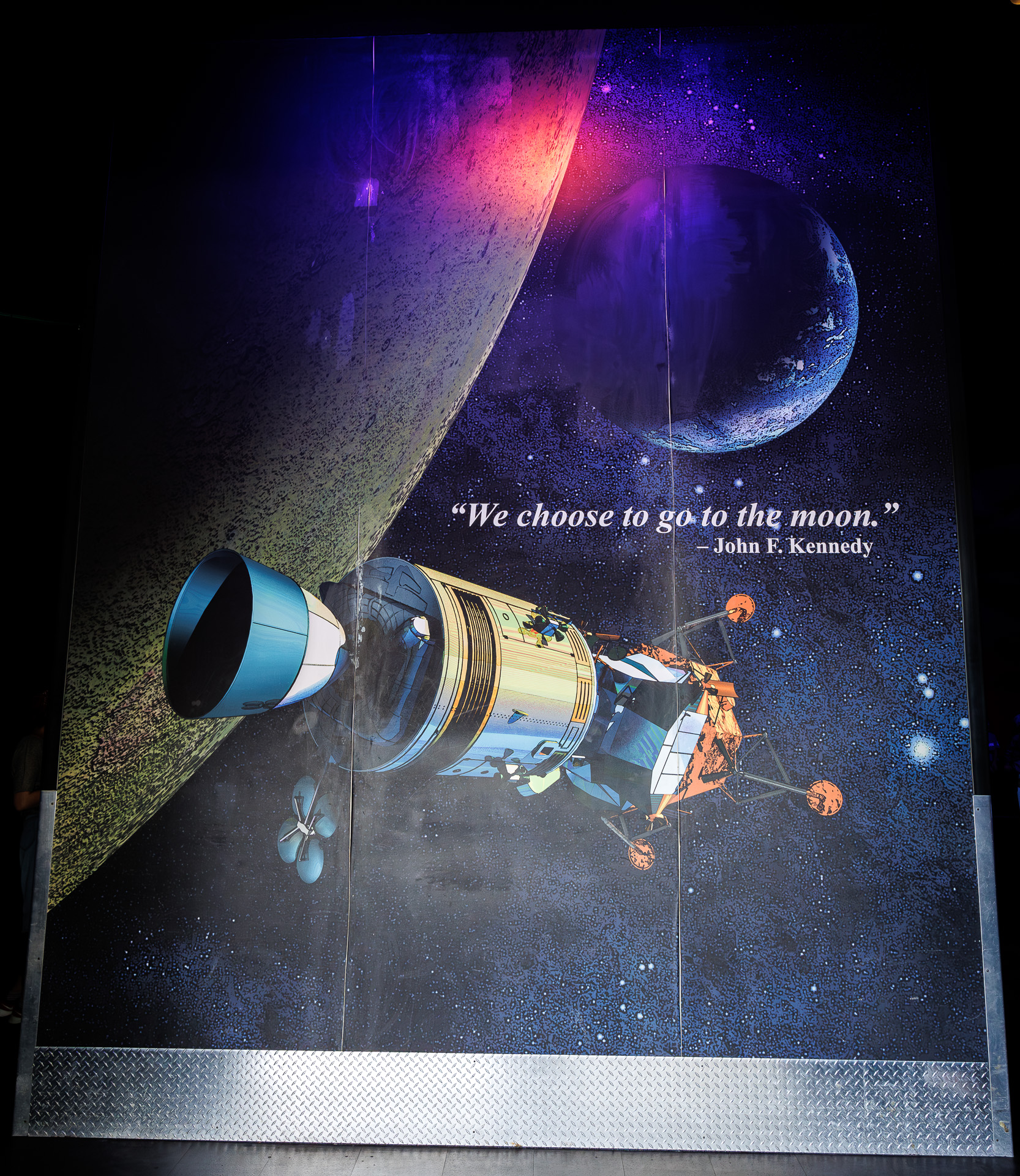 Après ce moment intense, retour dans le musée dédié au programme Apollo. Pour mémoire, ce programme fut lancé par le Président Kennedy le 12 septembre 1962 avec sa célèbre allocution : « We choose to go to the moon. We choose to go to the moon in this decade and do the other things, not because they are easy, but because they are hard, because that goal will serve to organize and measure the best of our energies and skills, because that challenge is one that we are willing to accept, one we are unwilling to postpone, and one which we intend to win, and the others, too. » (Nous avons choisi d’aller sur la Lune. Nous avons choisi d’aller sur la Lune au cours de cette décennie et de faire les autres choses, non pas parce qu’elles sont faciles, mais parce qu’elles sont difficiles, parce que cet objectif servira à organiser et à mesurer le meilleur de nos énergies et de nos compétences, parce que ce défi est un défi que nous sommes prêts à accepter, un défi que nous ne sommes pas prêts à reporter, et un défi que nous avons l’intention de remporter, et les autres aussi.)