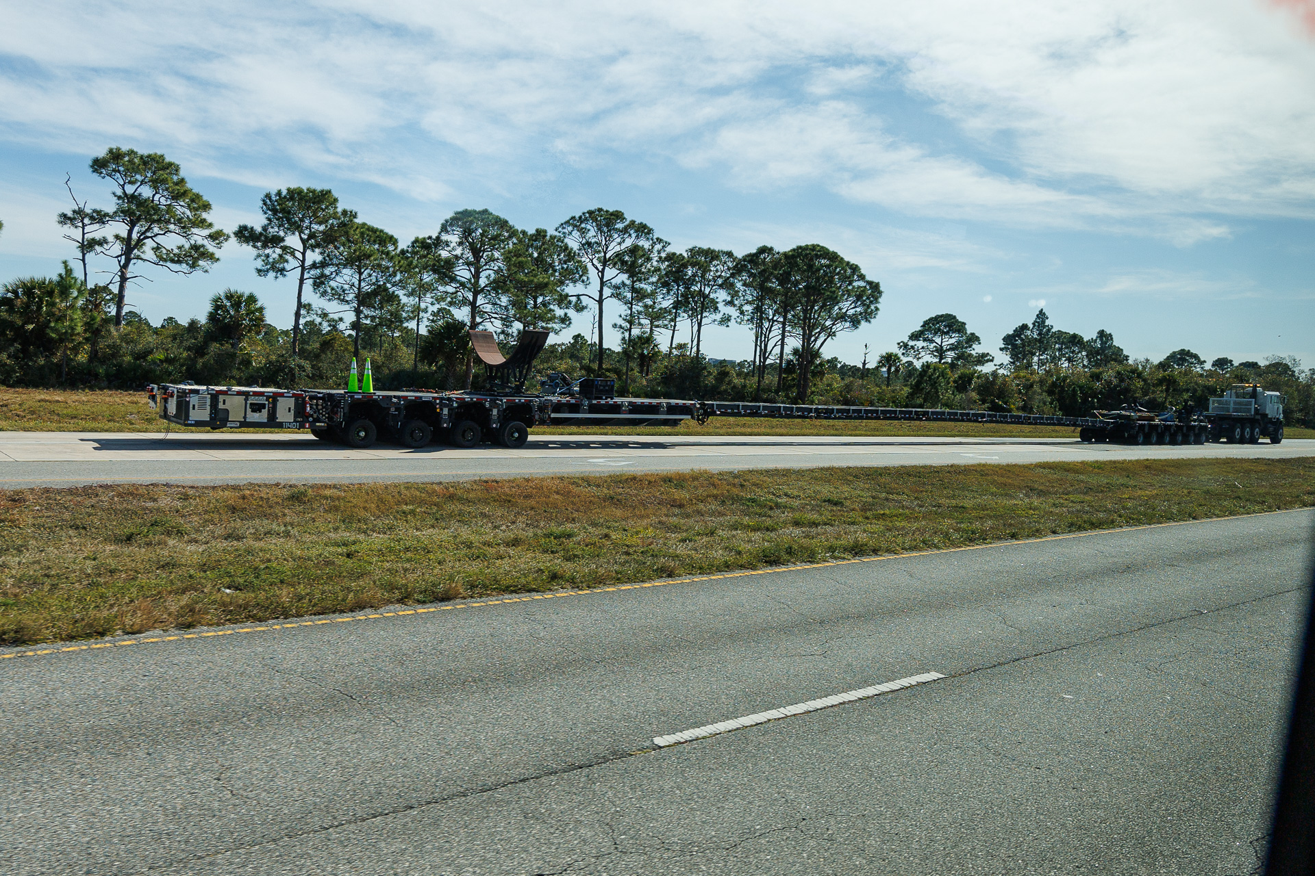 191154 km : Une fois n’est pas coutume, ce matin, nous quittons notre bivouac à 9 heures… l’aube, enfin presque 🤣🤣 ! Un rendez-vous très important nous attend. Nous allons assister en direct au lancement d’une fusée SpaceX. Le lancement a lieu à 11h10 exactement et nous voulons être bien placés pour assister à ce spectacle unique !!