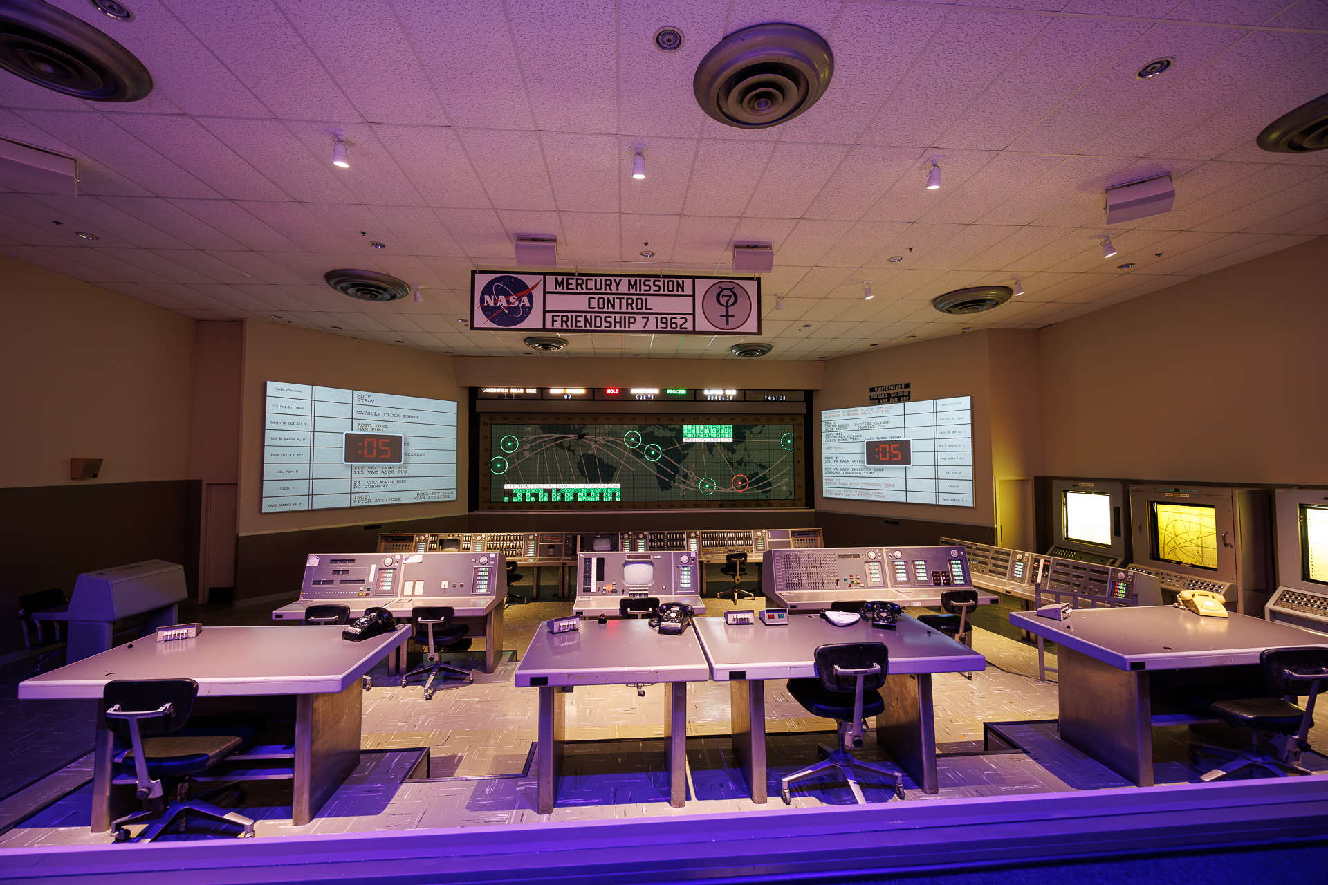 Retour au complexe des visiteurs et visite d’un nouveau bâtiment. La salle de contrôle de la mission Mercury en 1962 !