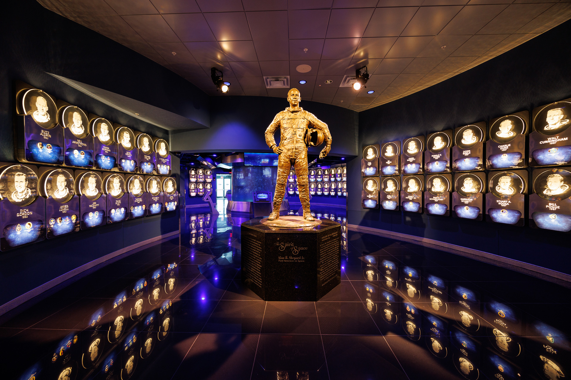 Cette salle rend hommage à tous les astronautes hommes et femmes qui ont contribué à la réussite de la conquête spatiale.