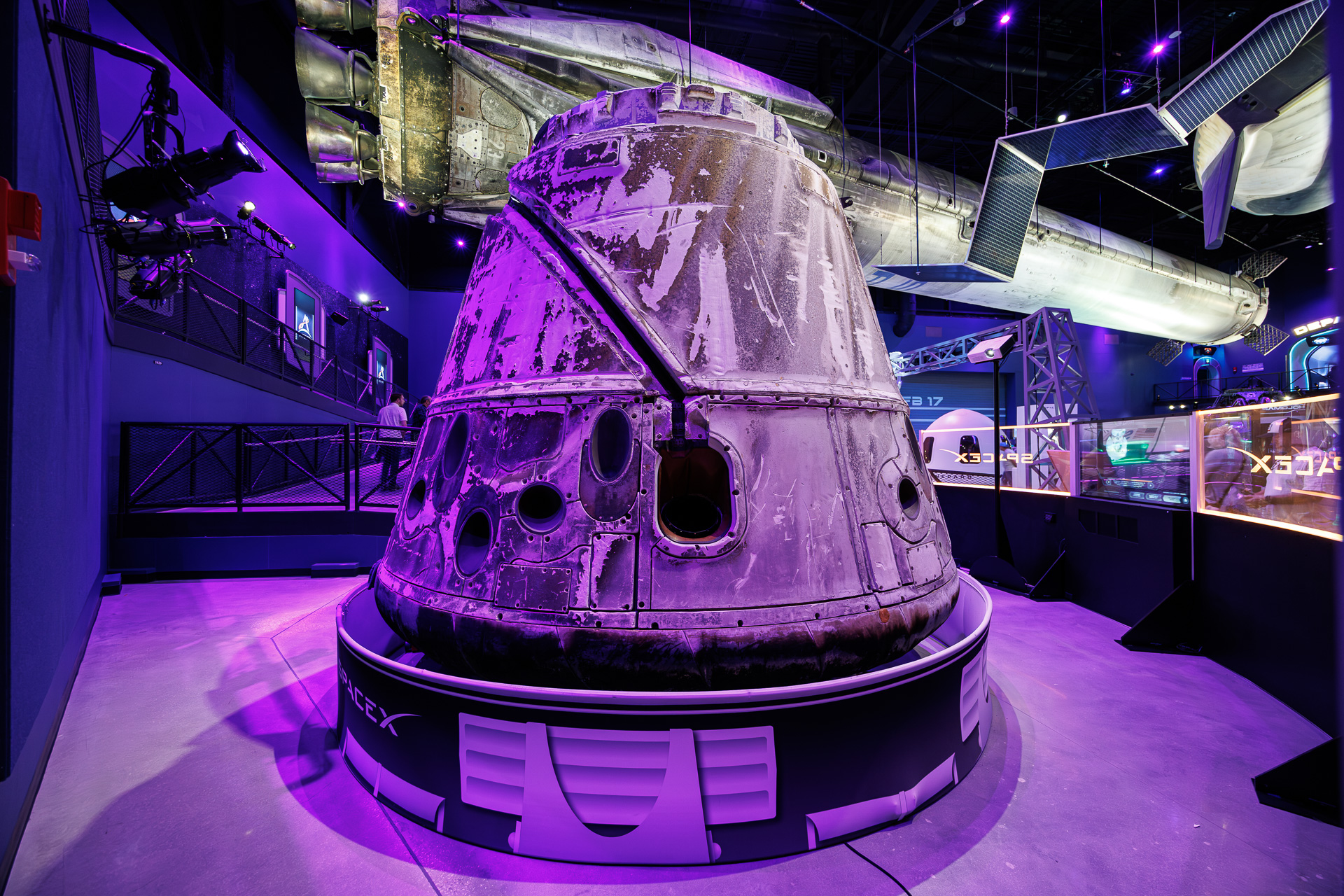 DRAGON CARGO : Le Dragon présenté ici est entré dans l’histoire en mai 2012, lorsqu’il est devenu le premier vaisseau spatial commercial à livrer du fret à destination et en provenance de la Station spatiale internationale (ISS). La mission COTS-2 Cargo Dragon a été lancée par une fusée Falcon 9 de SpaceX depuis le pas de tir SLC-40 de Cap Canaveral.