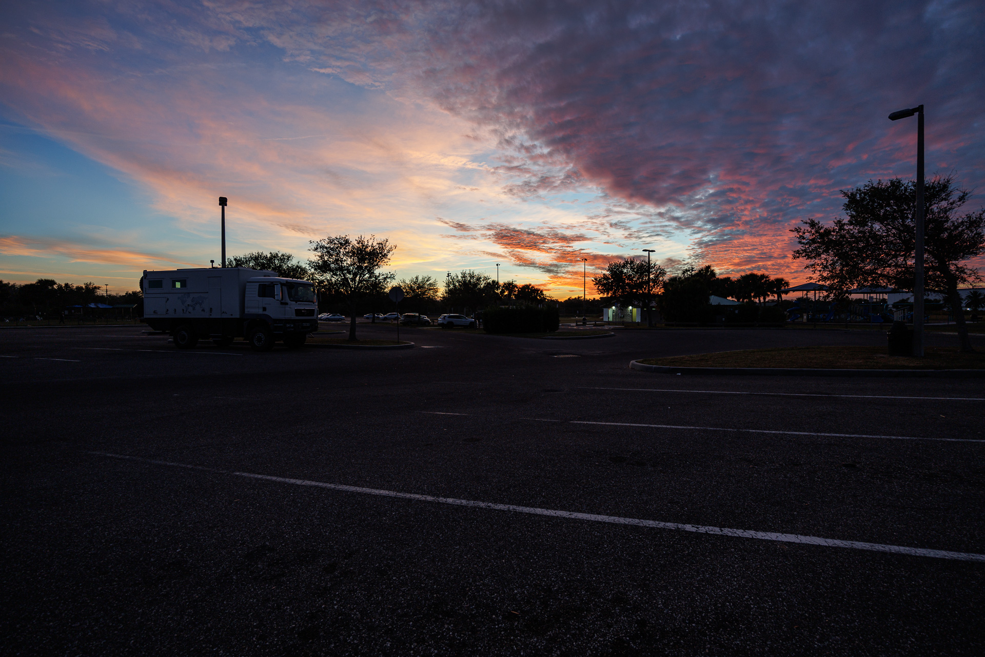 Retour au camion juste avant la nuit.