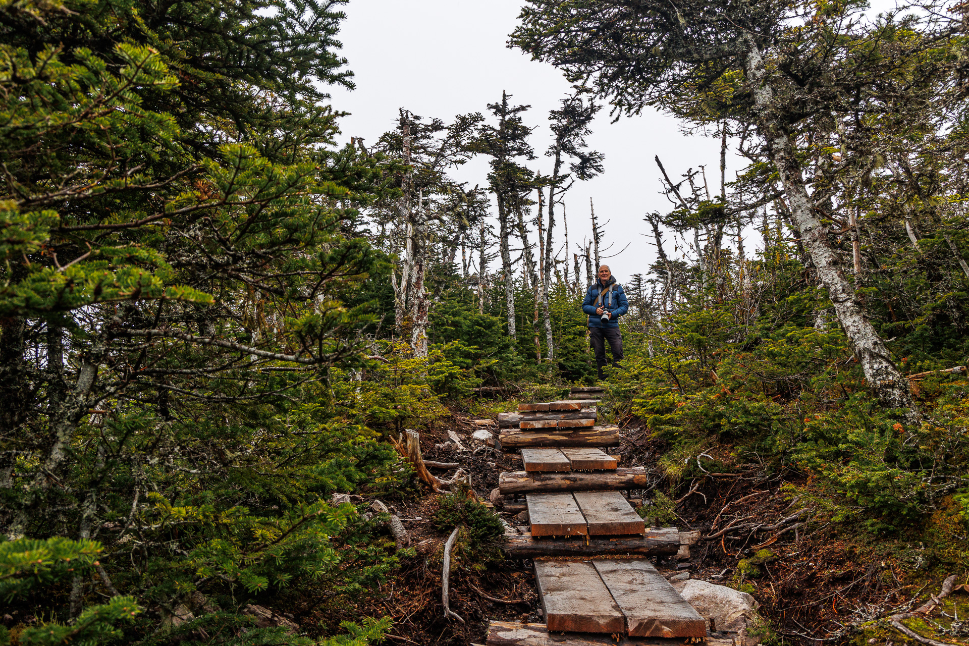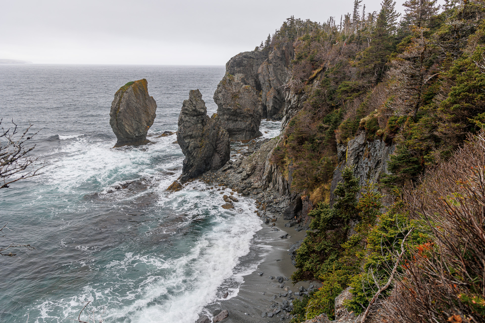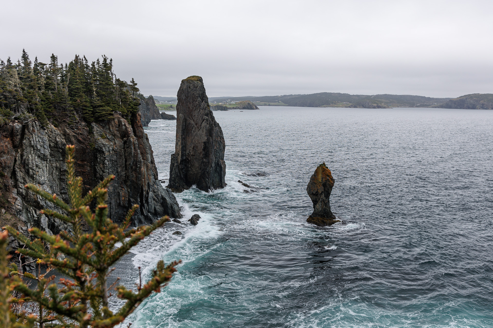 Malgré le temps incertain, nous décidons de nous rendre au point de départ du Skerwink Trail qui se trouve à 45 km de Bonavista. C’est une boucle de 5,3 km qui se fait à travers la forêt boréale et le long des falaises. Ce sentier fait partie des plus belles randonnées de Terre-Neuve.