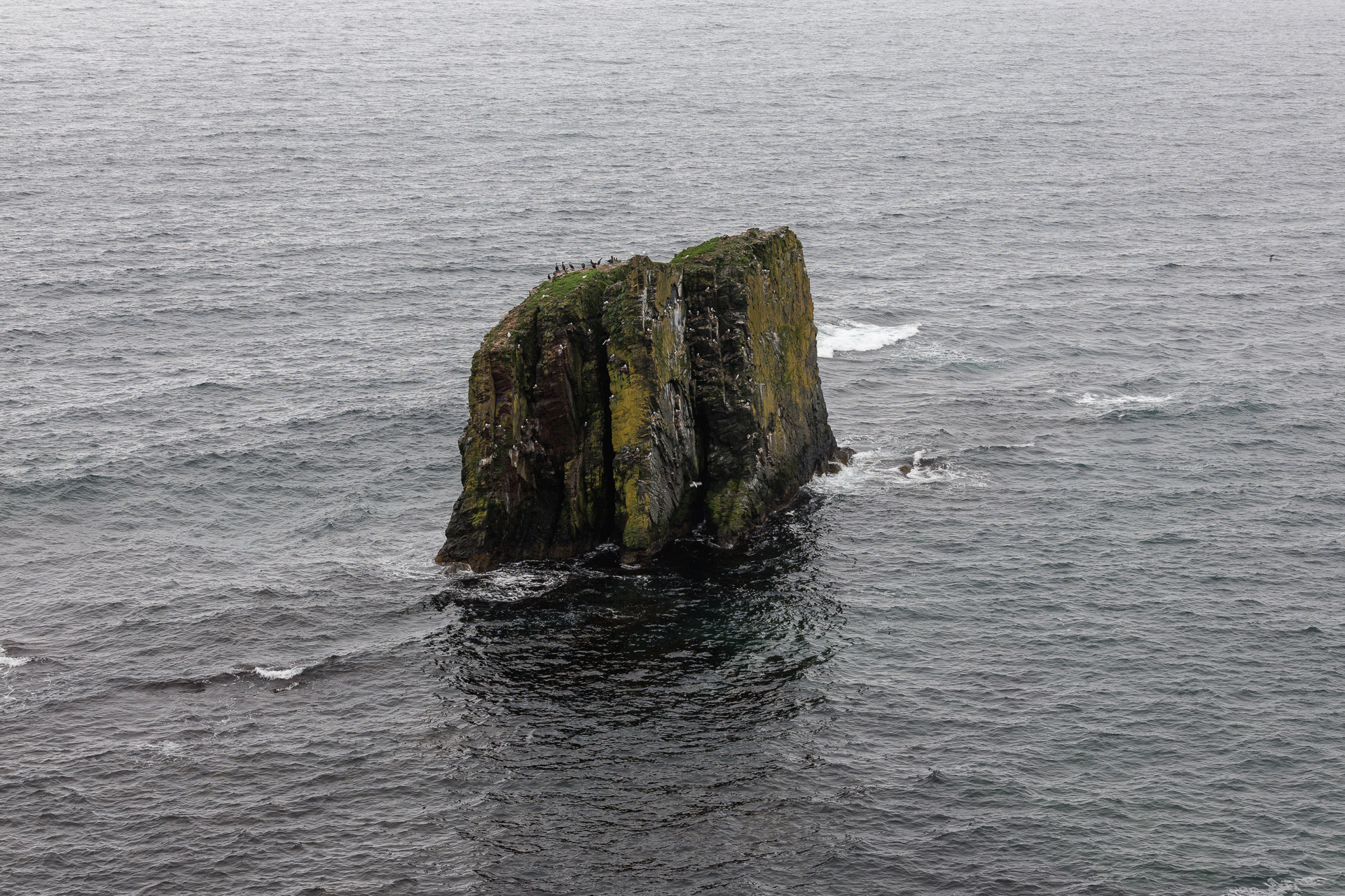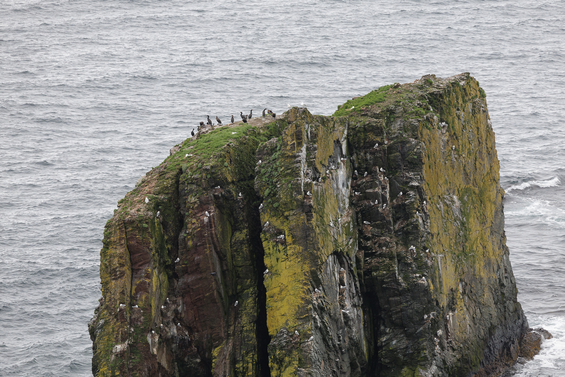 Une colonie de cormorans niche au sommet de cet îlot rocheux.