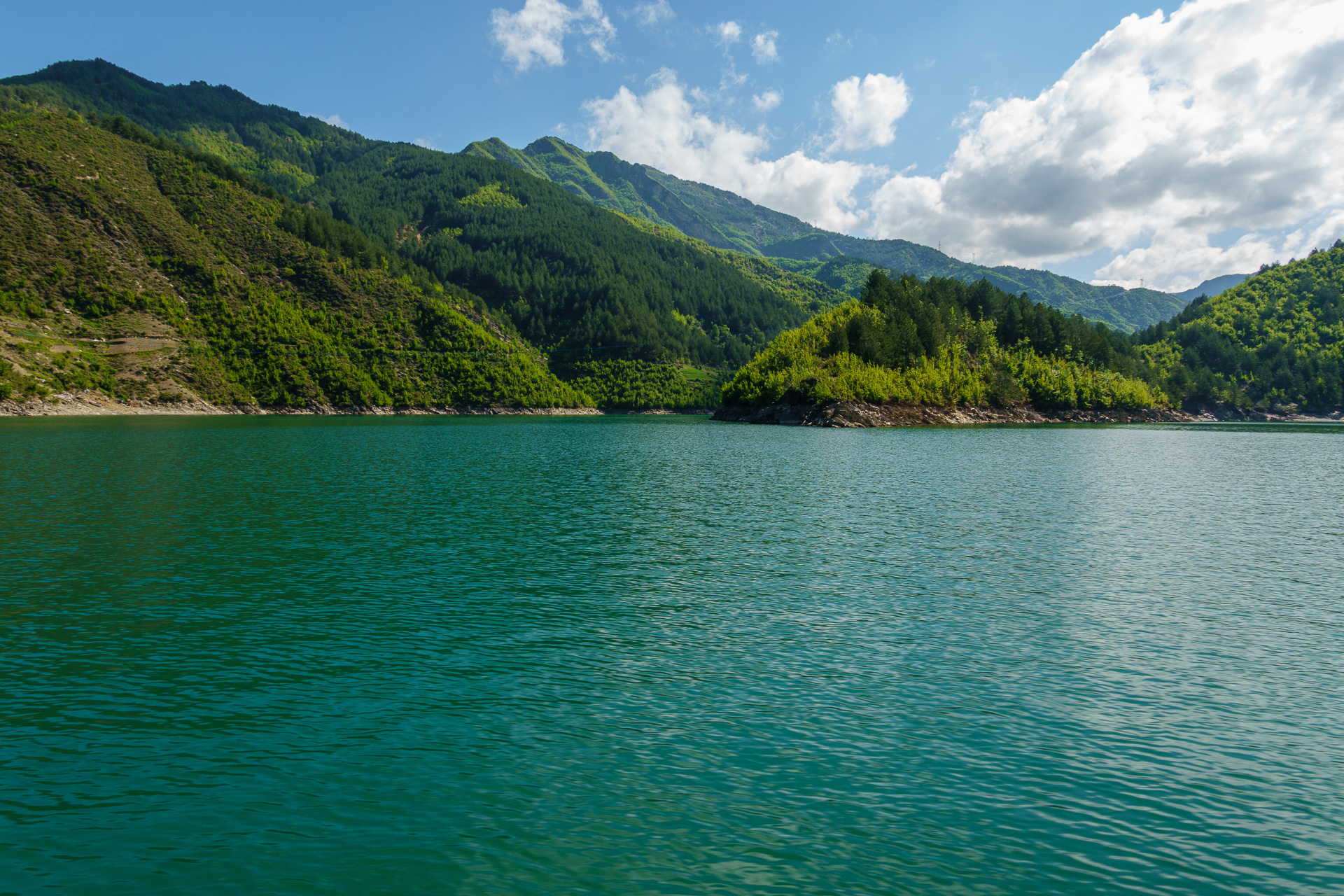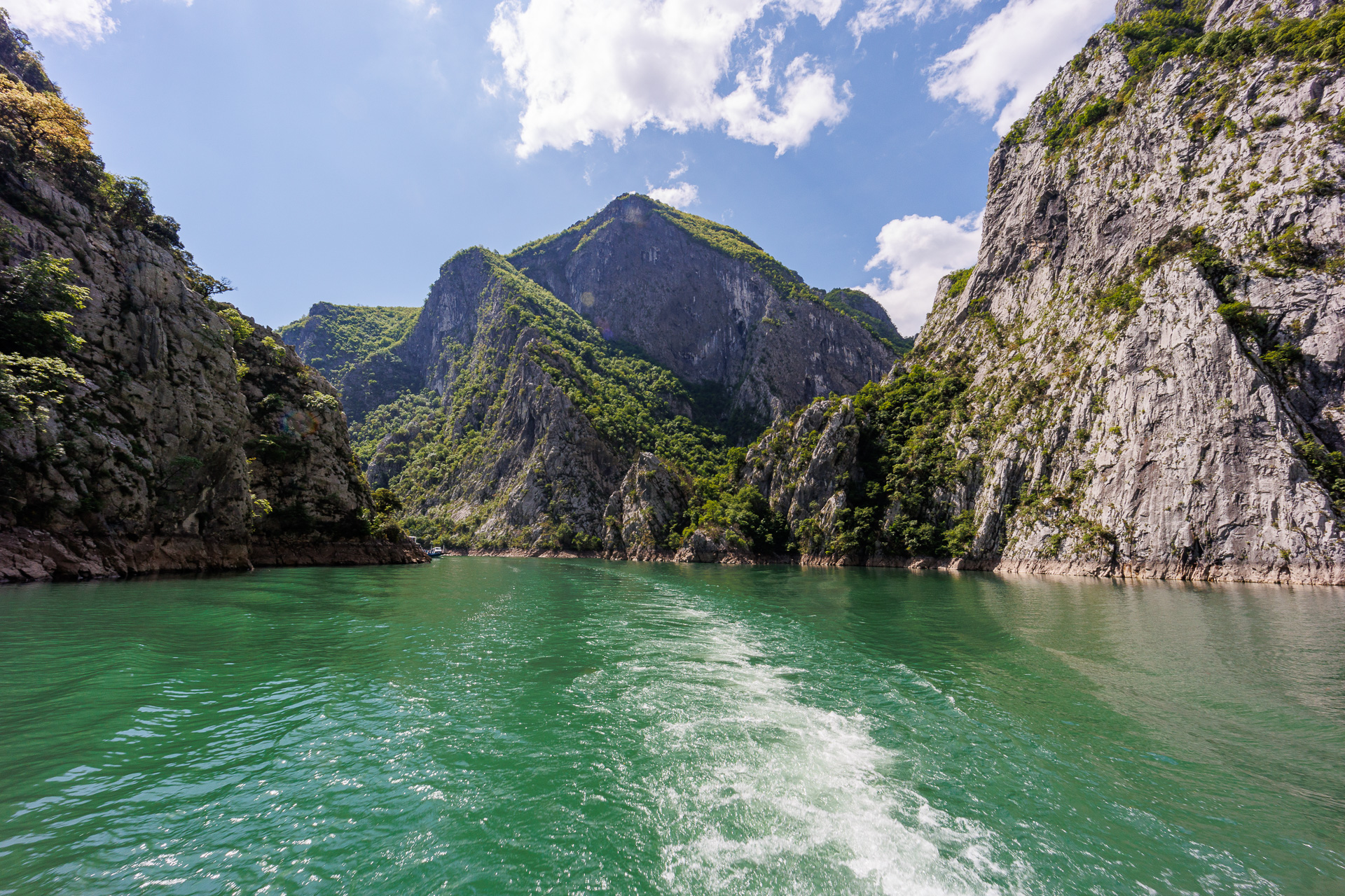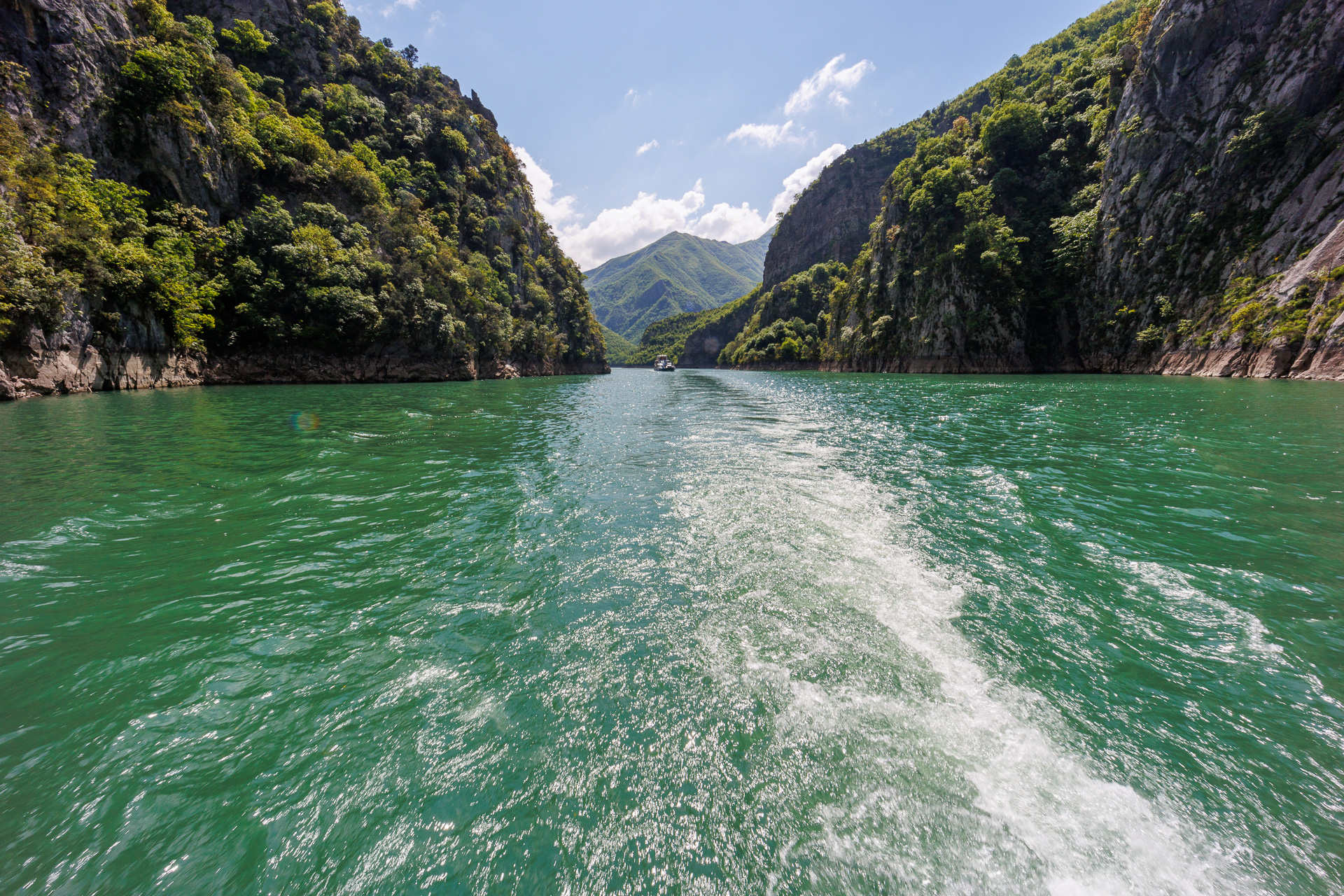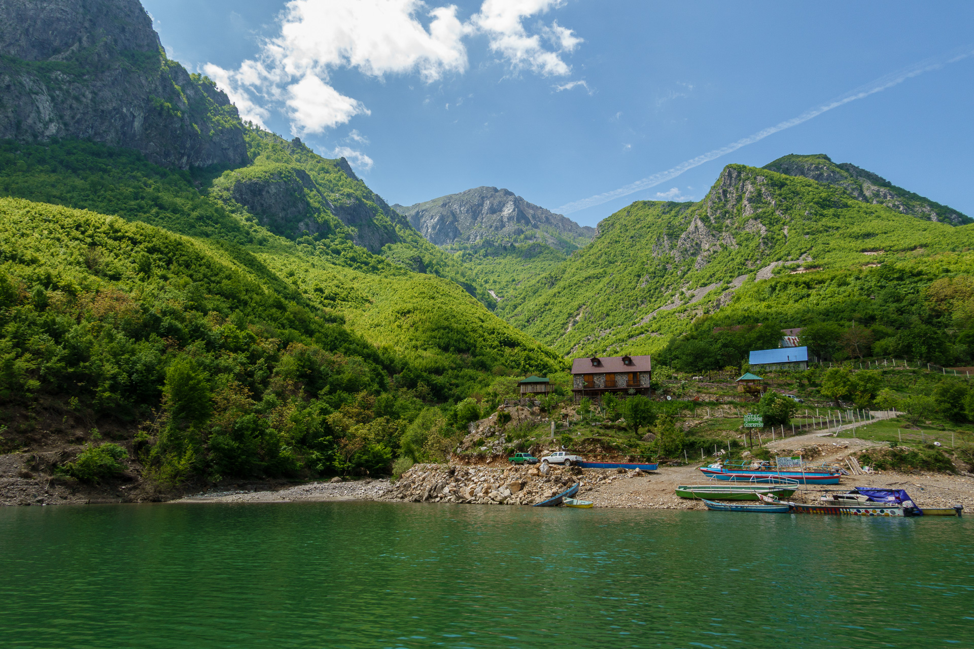 Le lac artificiel de Koman a été créé entre 1979 et 1988 sur la rivière Drin. Le réservoir est également alimenté par les fleuves Valbona et Shala. Bordé de canyons profonds et de collines boisées, il occupe une superficie totale de 34 km², avec une largeur de 400 m. La gorge la plus étroite est large de 50 m.