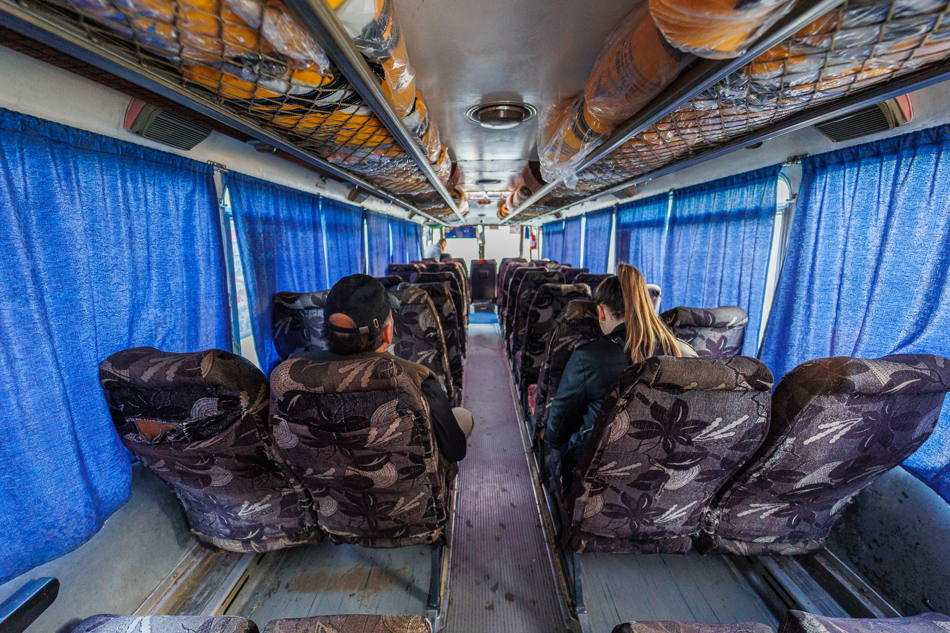 Les ferries font le même trajet que nous mais pour le retour, nous souhaitons rester sur notre bus local… plus authentique !