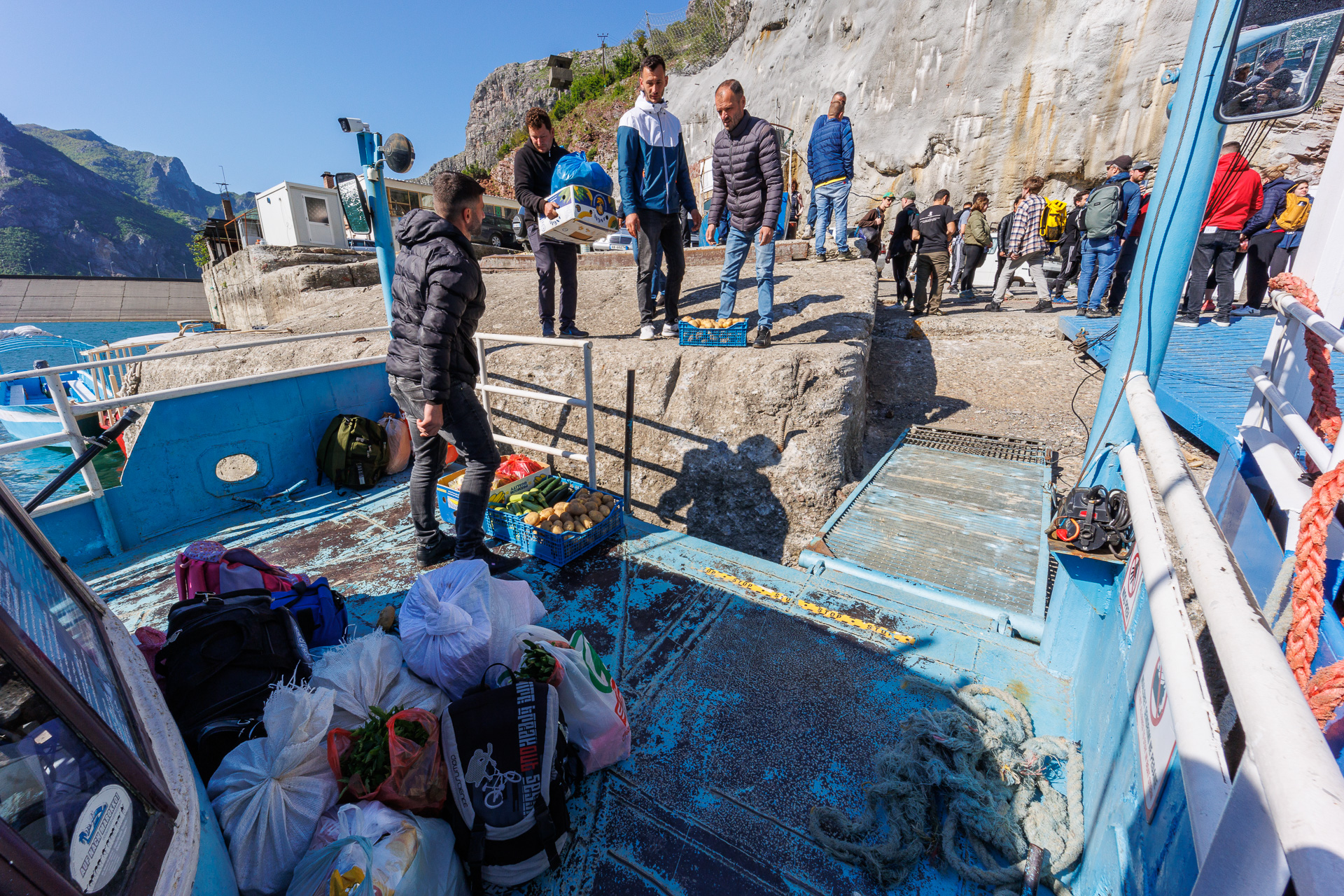 La création de ce barrage a déplacé et déraciné des familles entières. En effet, à l’époque de la dictature d’Enver Hoxha quand fut décidée la création du barrage, il n’y eu aucune compensation ou relogement pour les populations concernées. Certains décidèrent de partir et d’autres s’installèrent plus haut dans les montagnes autour du lac. Le bateau que nous prenons est une navette qui permet à la population locale de se rendre au port de Koman. Le bateau-bus n’aura jamais aussi bien porté son nom puisqu’il s’agit là de la carrosserie d’un vieux bus Setra soudée sur une coque de bateau 😁.