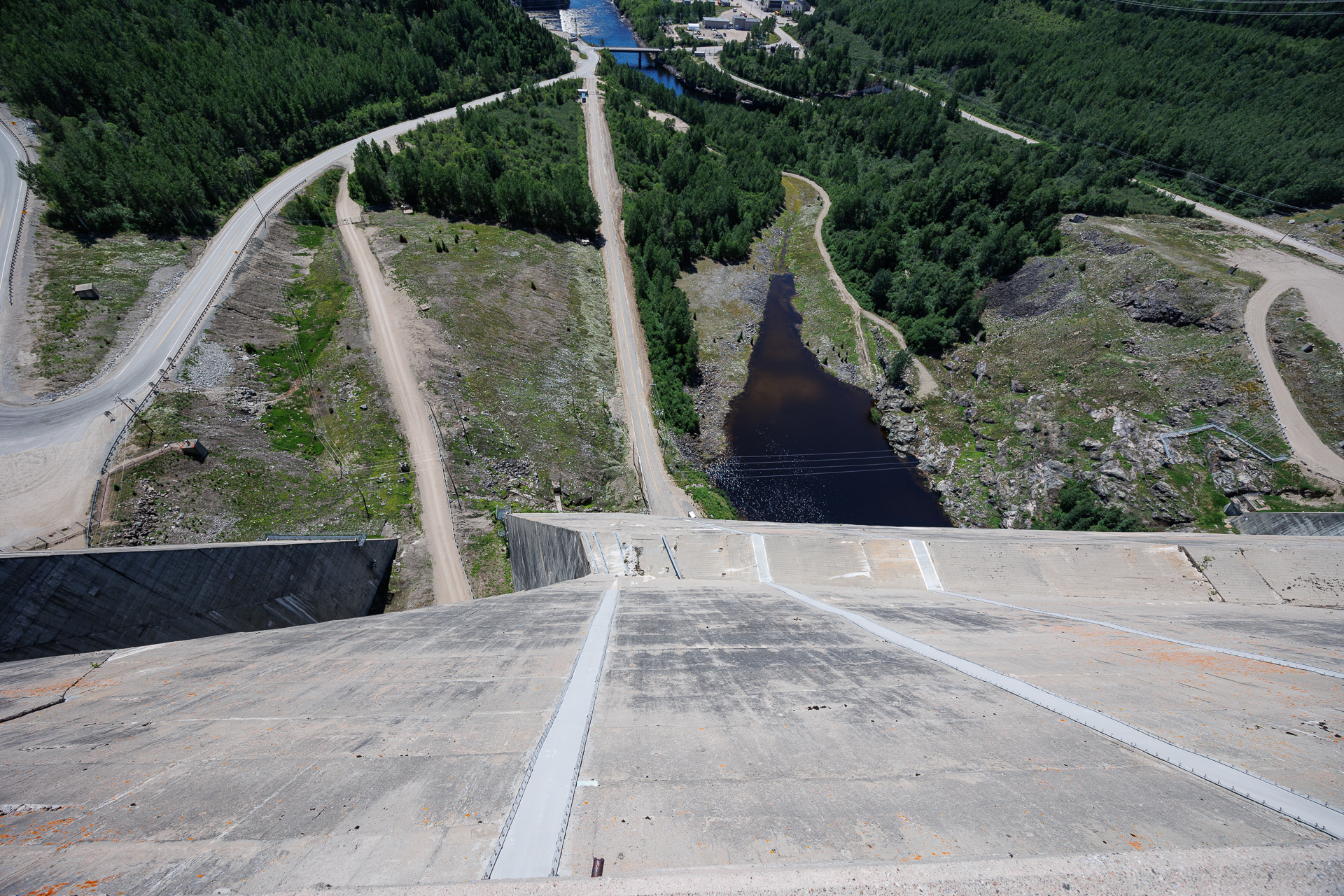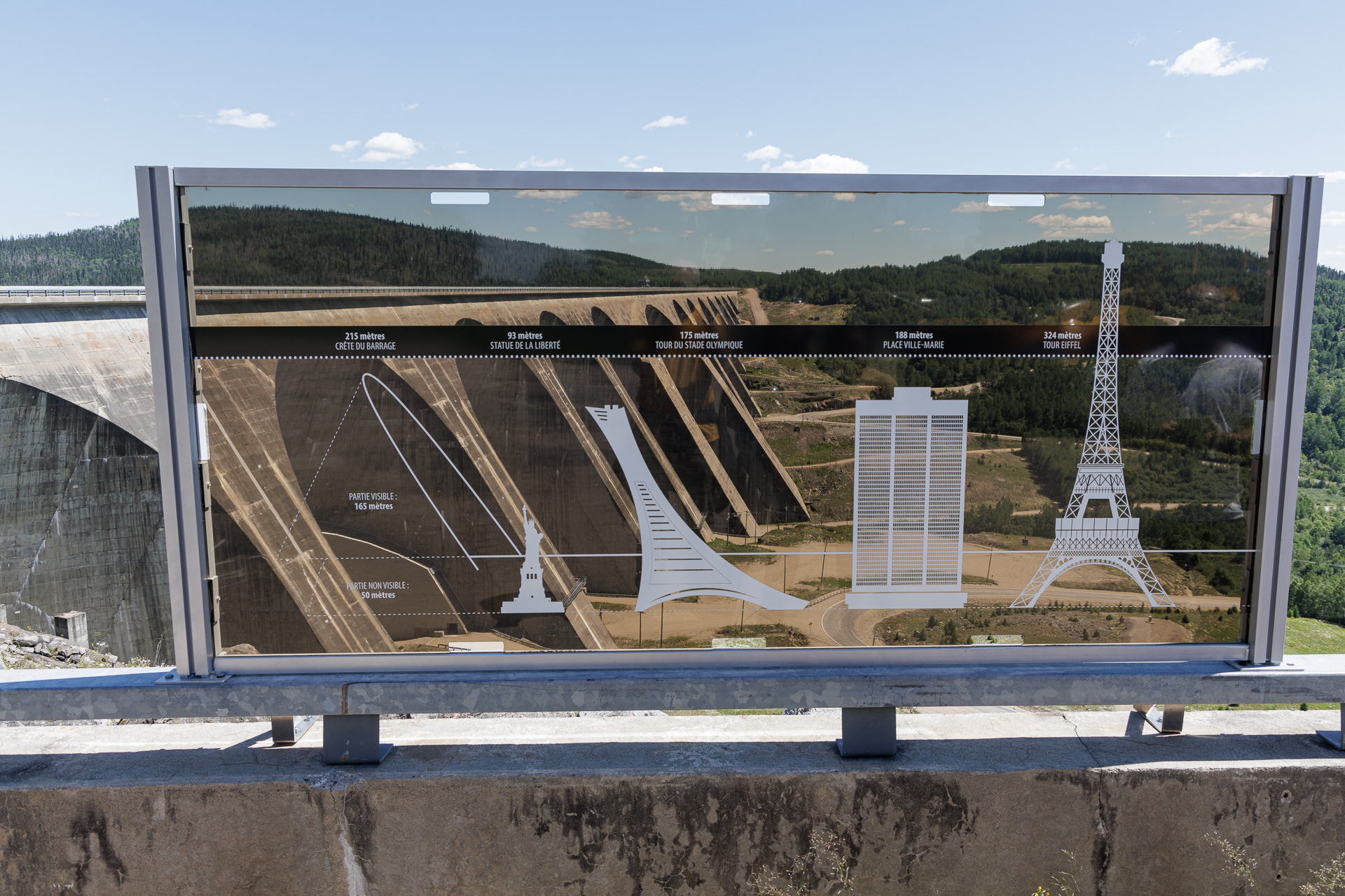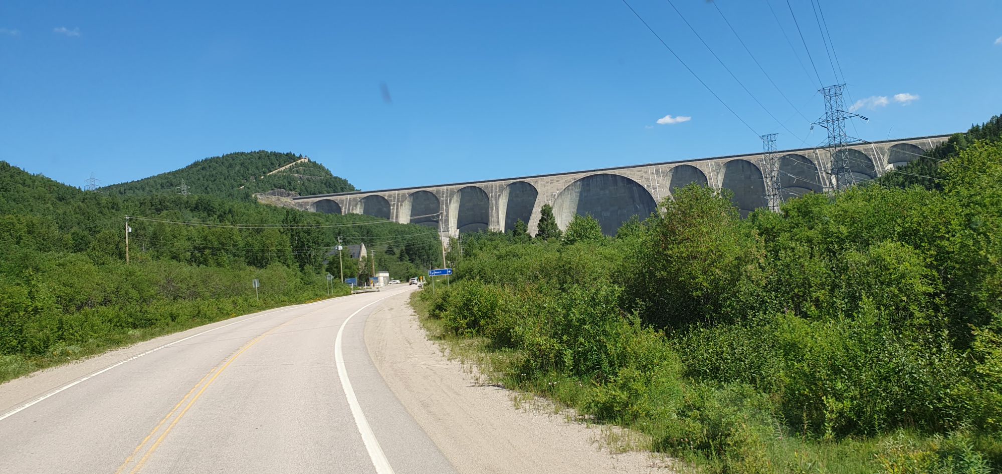 182138 km : Le lendemain matin, nous ferons rapidement les 50 kilomètres restant pour ne pas louper la visite du barrage de Manic-5 prévue à 11 heures. Et le voilà ce fameux Manic-5 !