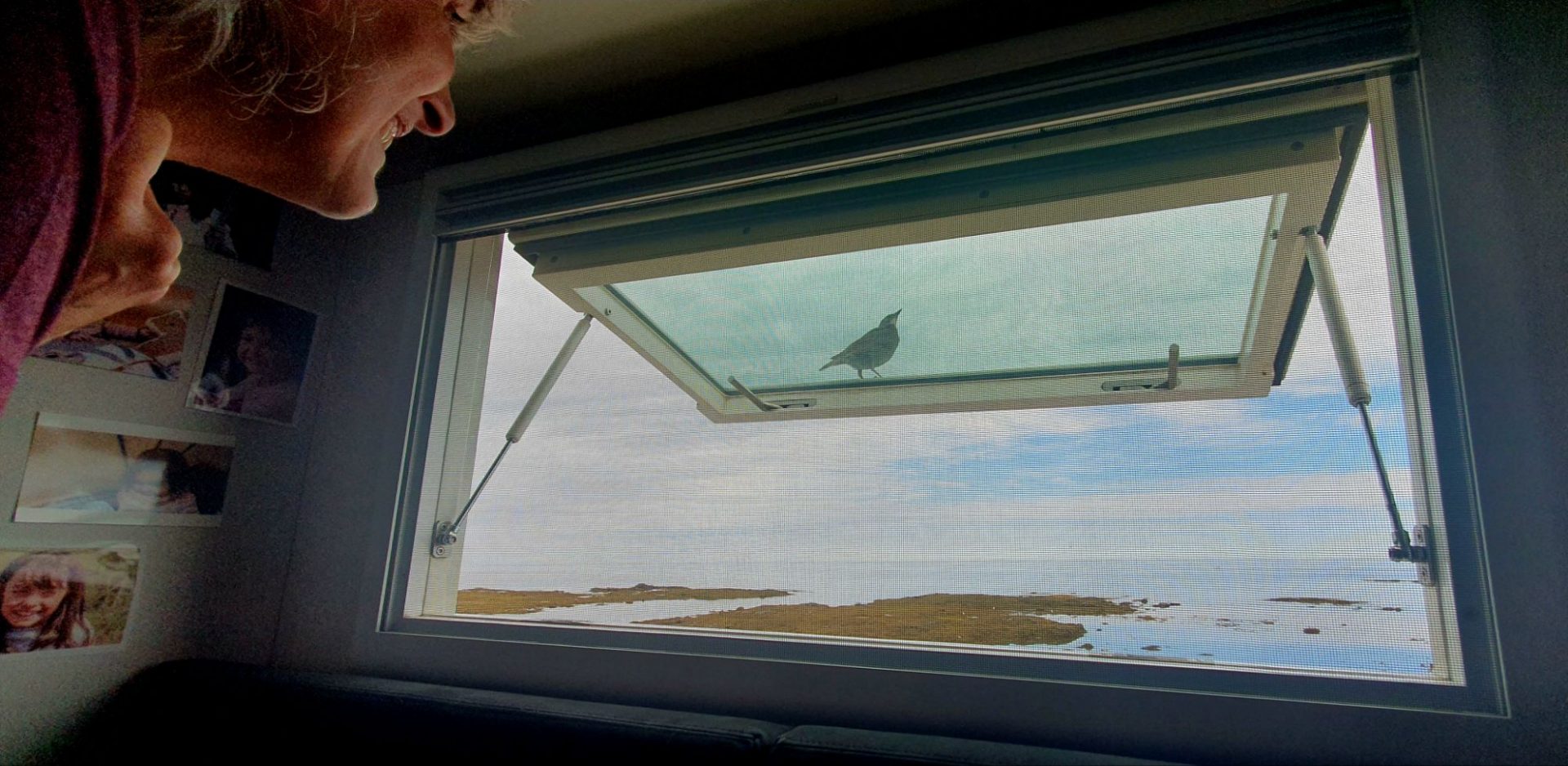 181893 km : Ce matin, au moment du petit déjeuner, nous avons eu de la visite. Sympathique 🙂 notre invité a même pensé à nous laisser un petit cadeau sur la vitre au moment de son départ 😯🤣