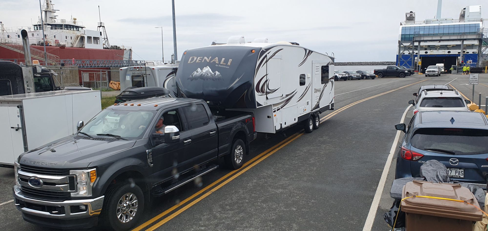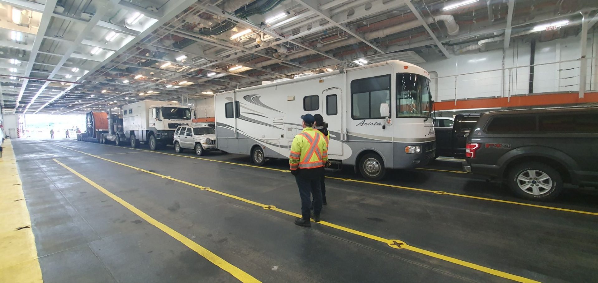 Nous n’avons pas de réservation mais ce n’est pas un souci, une file d’attente est dédiée aux véhicules sans billet. Le ferry vient d’arriver et libère son flot de petites caravanes…