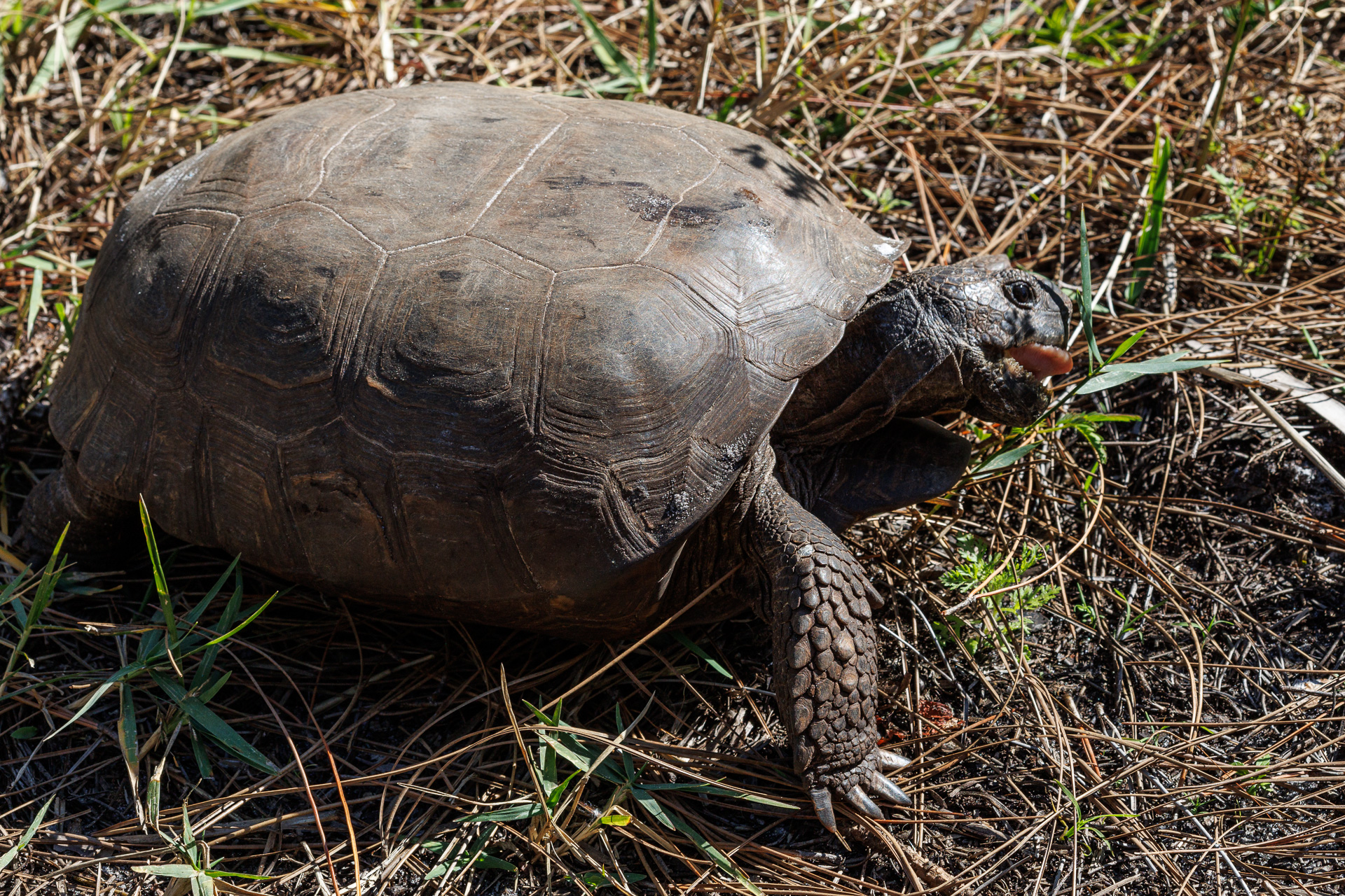 Une jolie tortue croise notre chemin… la belle a faim et on aperçoit sa petite langue rose. On ne savait pas que ces tortues avaient une langue rose 😊