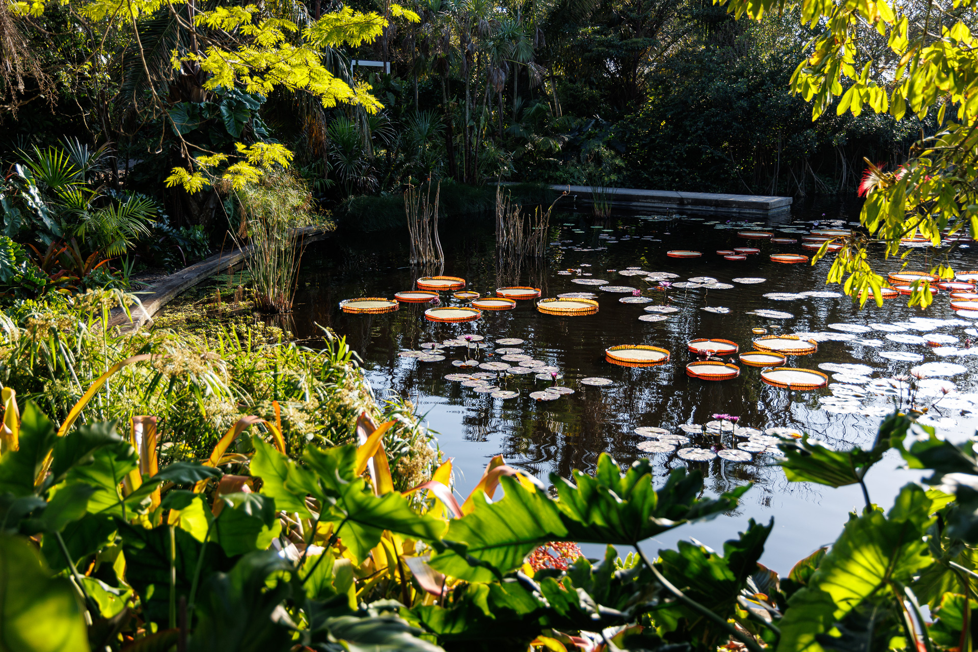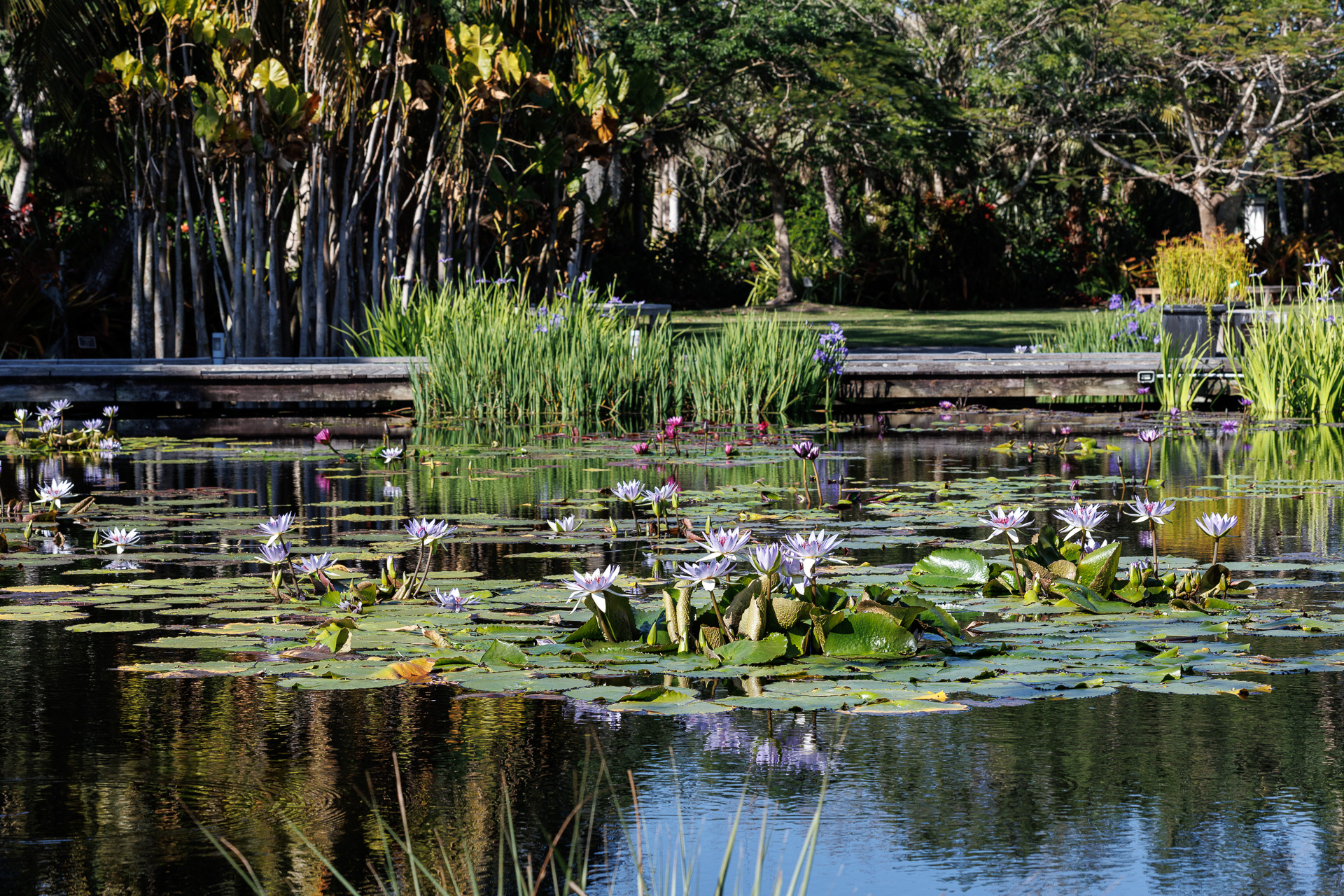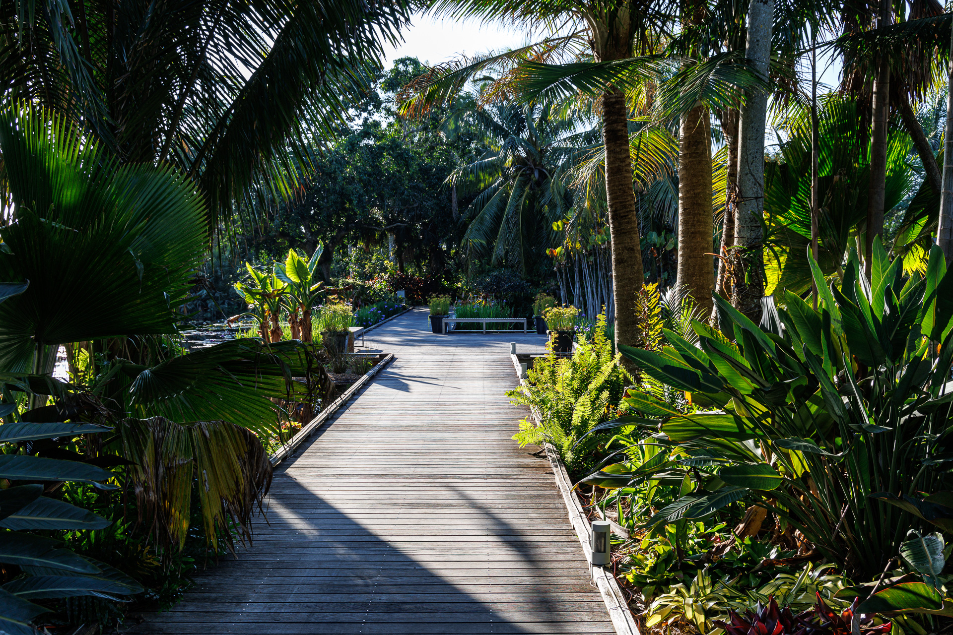Après ce petit aparté sur les dons et le mécénat, nous partons à la découverte du jardin. Il se compose de 170 acres de jardins cultivés et de terres préservées, représentant sept habitats et écosystèmes naturels distincts. Ceux-ci comprennent plus de 1000 espèces, avec un accent particulier sur les écosystèmes entre le 26ème parallèle nord qui traverse l’Afrique, l’Asie, l’océan Indien, l’océan Pacifique, l’Amérique du Nord et l’océan Atlantique et le 26ème parallèle sud qui traverse l’océan Atlantique, l’Afrique, l’océan Indien, l’Australie, l’océan Pacifique et l’Amérique du Sud. L’Europe n’est pas concernée 😉 !