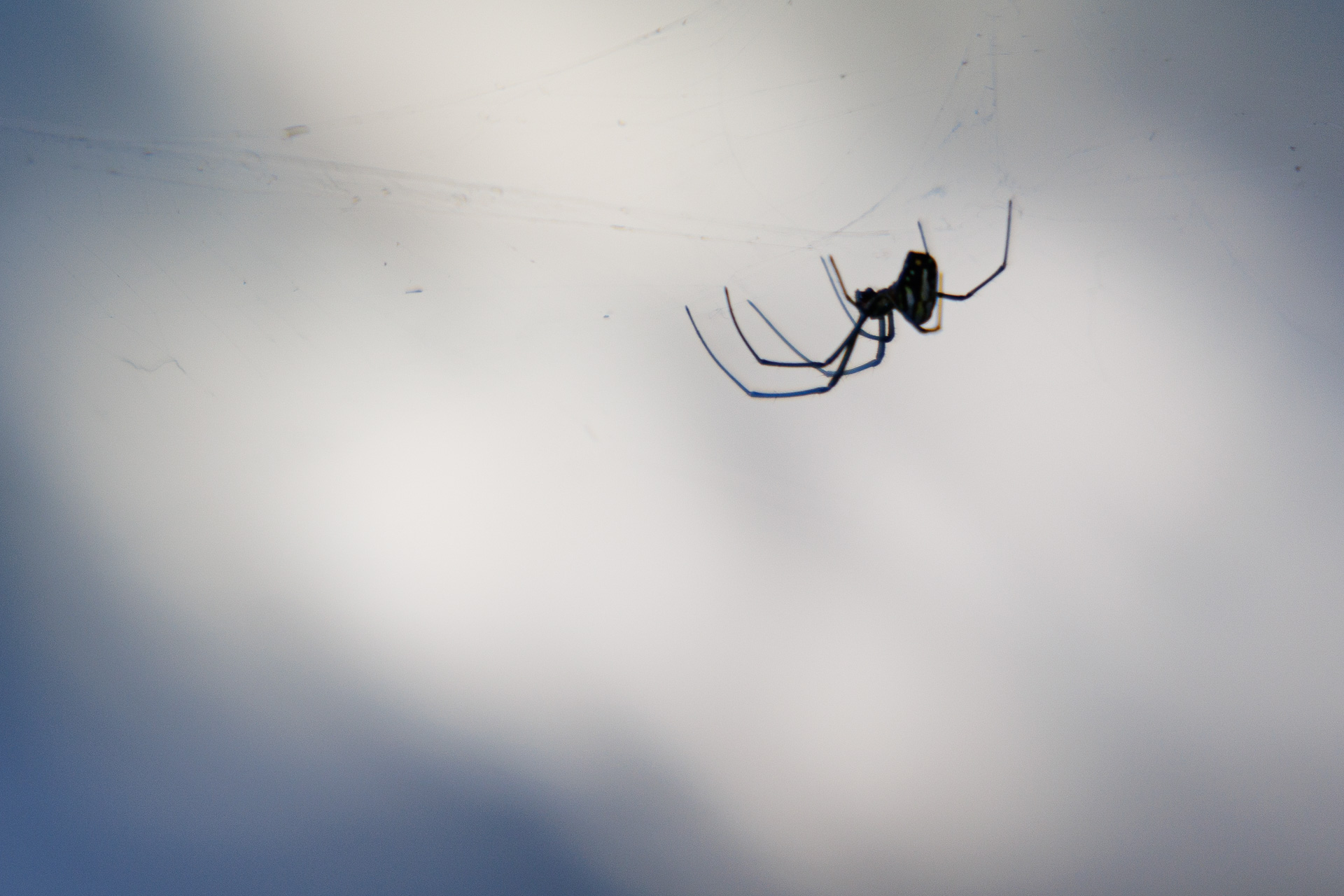 Une araignée danse au bout de son fil. Nous l’éviterons, les moustiques nous suffisent 😭