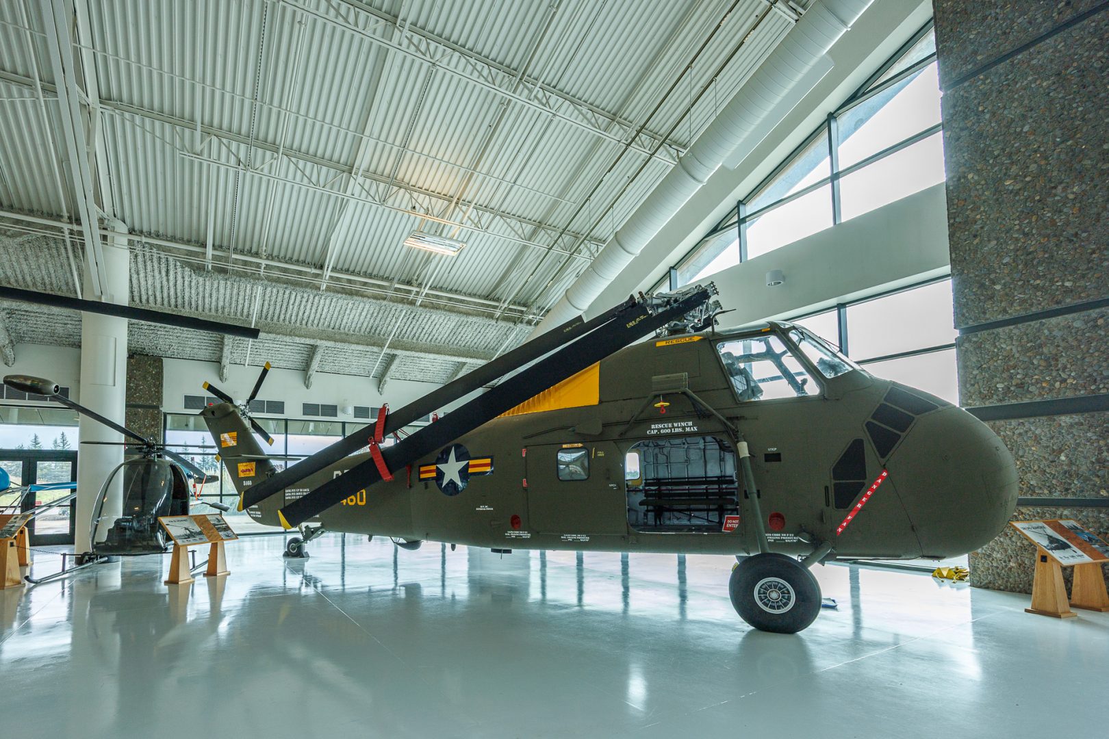 et nous voilà dans le 3ème bâtiment du musée. Un espace est dédié en partie aux hélicoptères dont ce Piasecki HRP-1 Rescuer (1940) également connu sous le nom de « banane volante ». Il a été utilisé par la Navy américaine, le Marine Corps et les garde-côtes US. Il pouvait transporter 8 à 10 passagers en plus des 2 membres d’équipage. Sa charge utile était d’environ 900 kg. Seuls 28 exemplaires ont été construits et celui-ci est le seul en exposition publique.