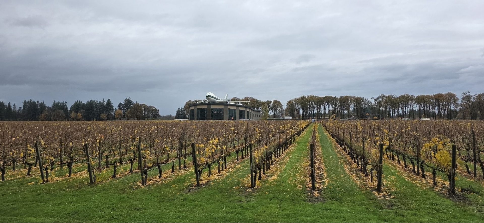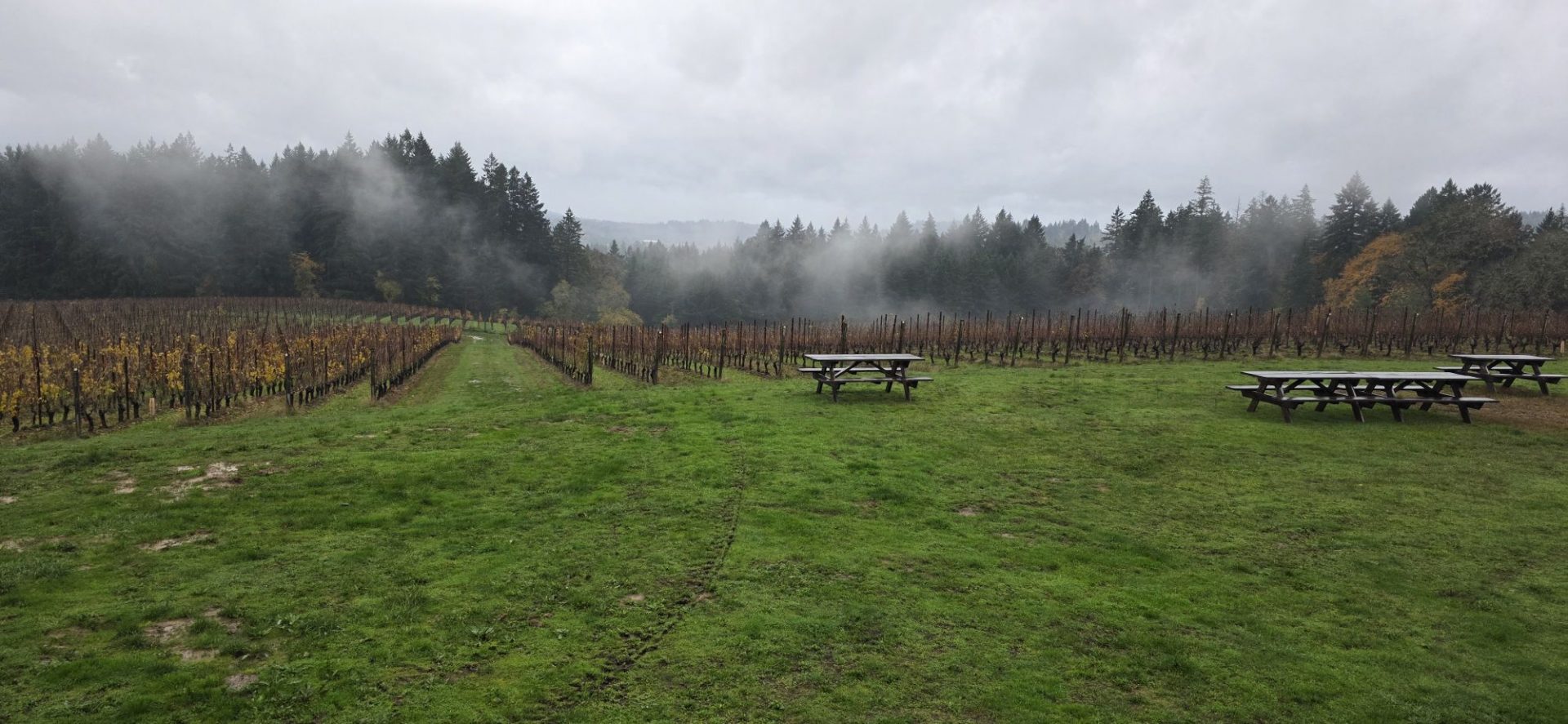 Nous vous avons dit que nous souhaitions goûter les vins de la vallée de la Willamette. Nous partons donc en direction de notre bivouac du soir qui sera chez un hôte viticulteur Harvest Host. La route est bordée d’arbres fruitiers et de vignes aux belles couleurs d’automne.