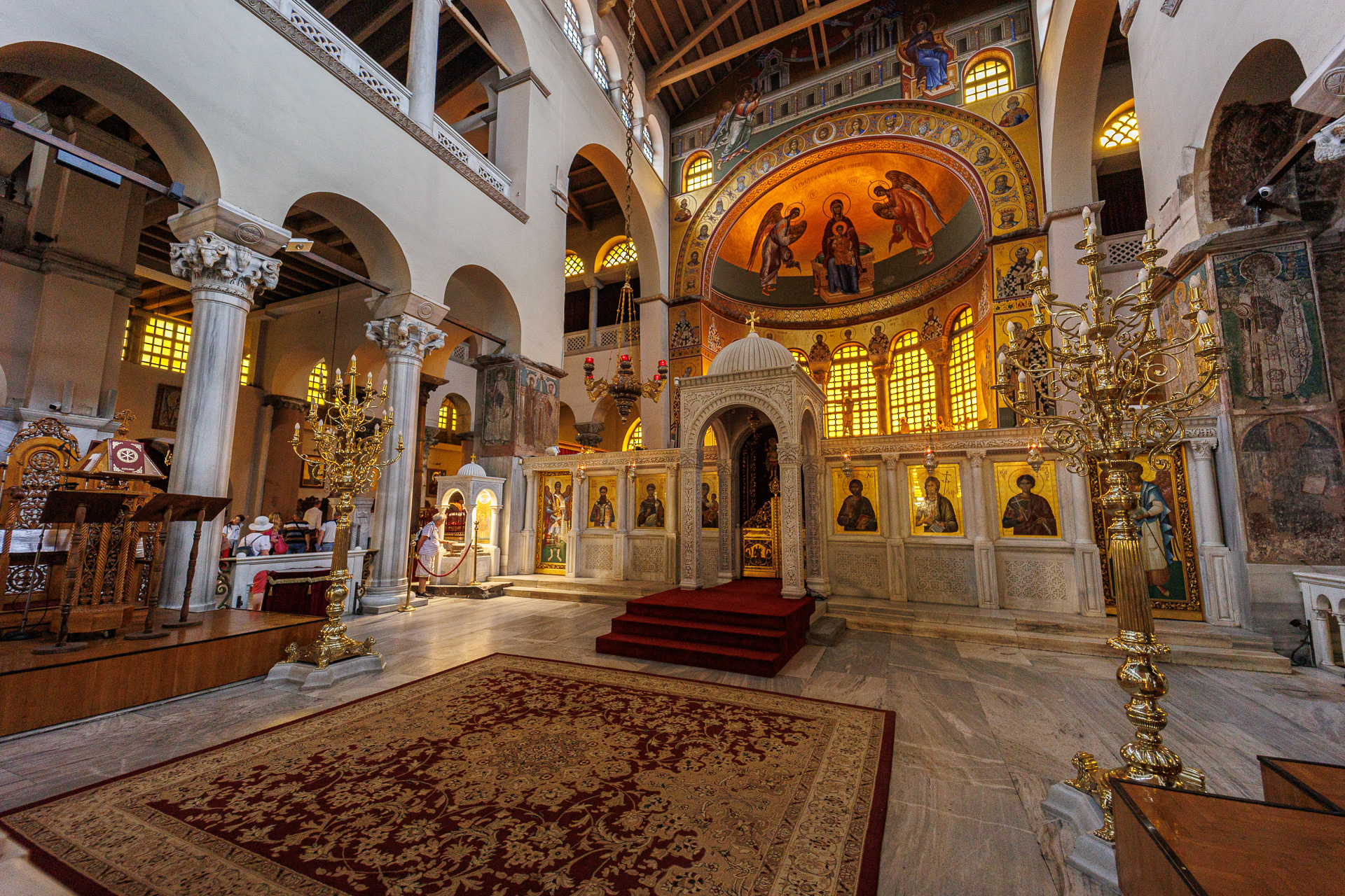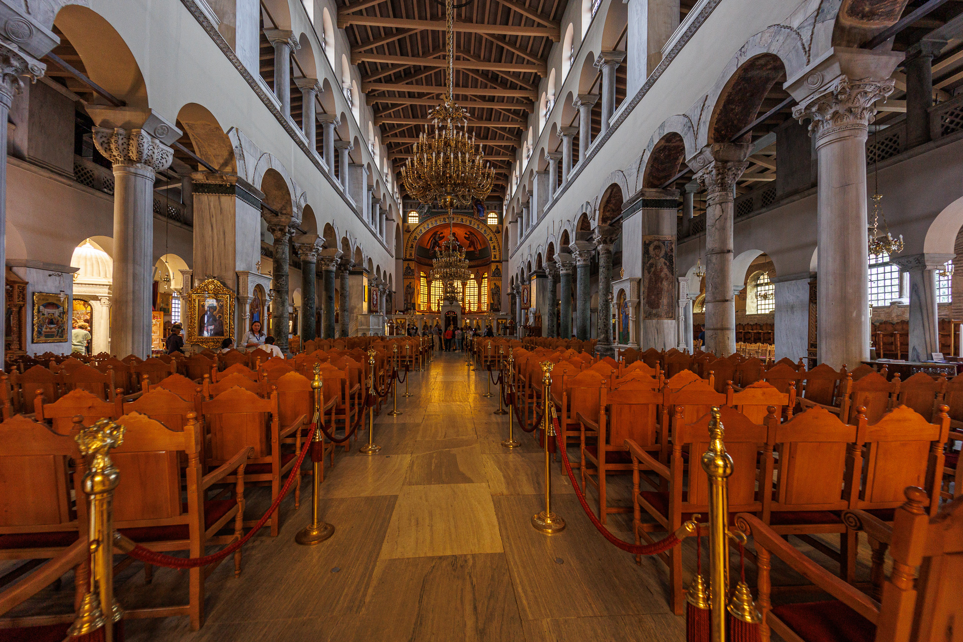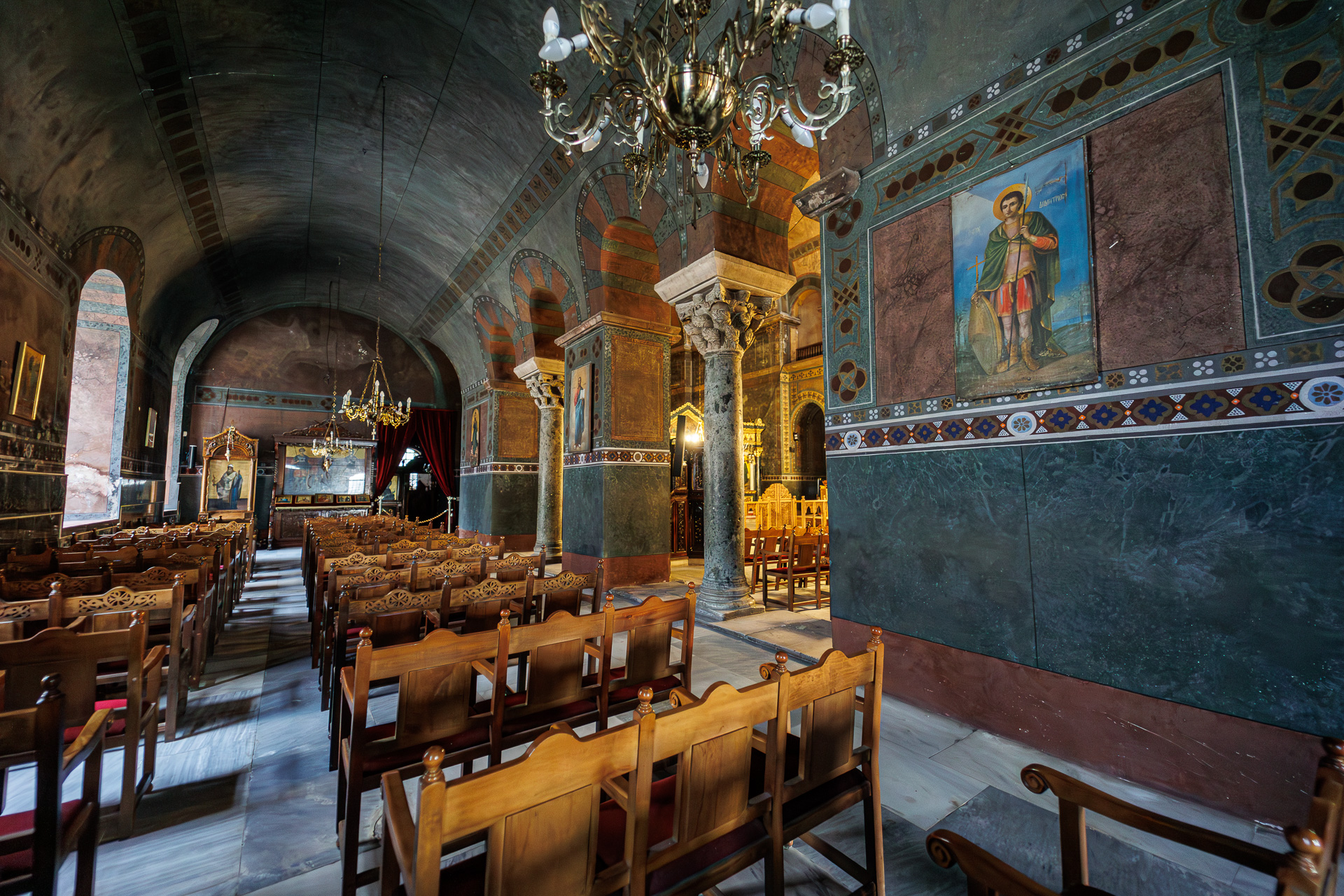 La basilique Agios Dimitrios est dédiée au saint patron de Thessalonique. Détruite en 1917 par un incendie, elle a été reconstruite à l’identique et évoque assez fidèlement une basilique byzantine du 7ème siècle. La légende raconte que Saint Dimitrios fut tué vers 306 à cet endroit sur ordre de l’empereur Galère durant la grande persécution des chrétiens.