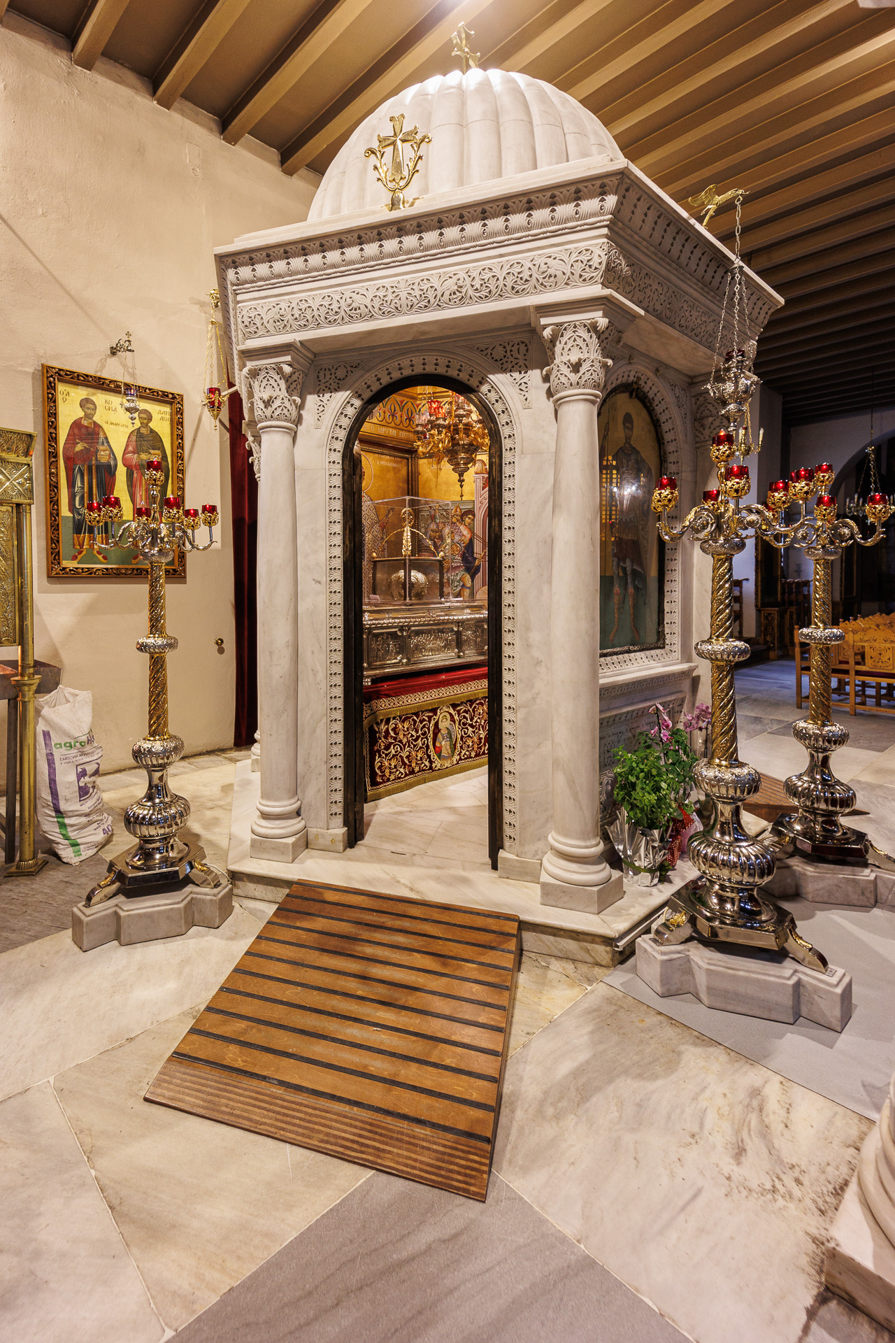 Les croyants viennent se recueillir devant les reliques de Saint Dimitrios.