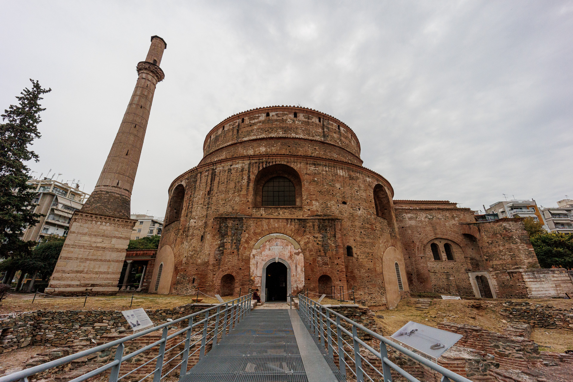 En l’an 306, l’empereur Galère fit édifier ce dôme haut de 30 m comparable au Panthéon de Rome. Lorsque le christianisme fut déclaré religion officielle le monument fut converti pour devenir la première église de l’histoire de Thessalonique. Les Ottomans l’ont transformée en mosquée d’où la présence d’un minaret. Au cours des siècles, la rotonde a eu plusieurs vies !
