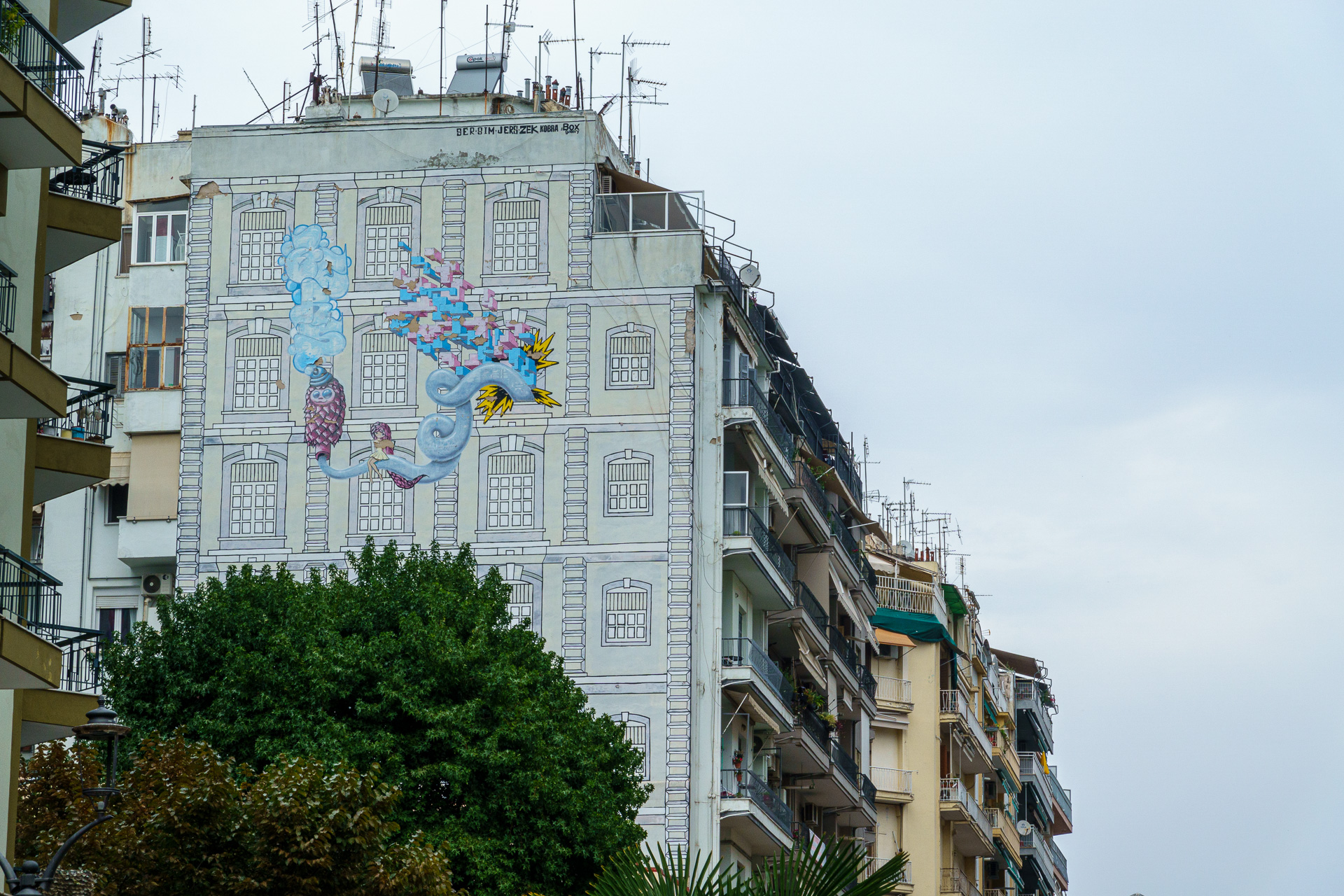 Une jolie fresque qui embellit la façade à la différence des tags…