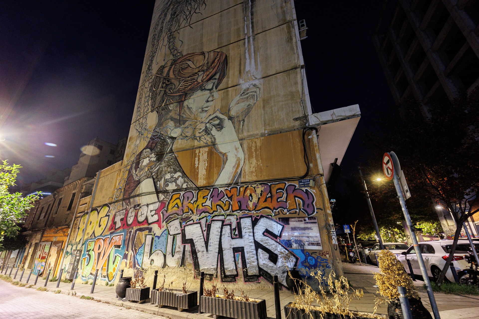 Nous irons dîner ensuite dans le quartier de Ladakika qui abritait autrefois les anciens entrepôts d’huile d’olive. Nous attendrons ensuite notre taxi devant cette fresque pour rentrer au camion.