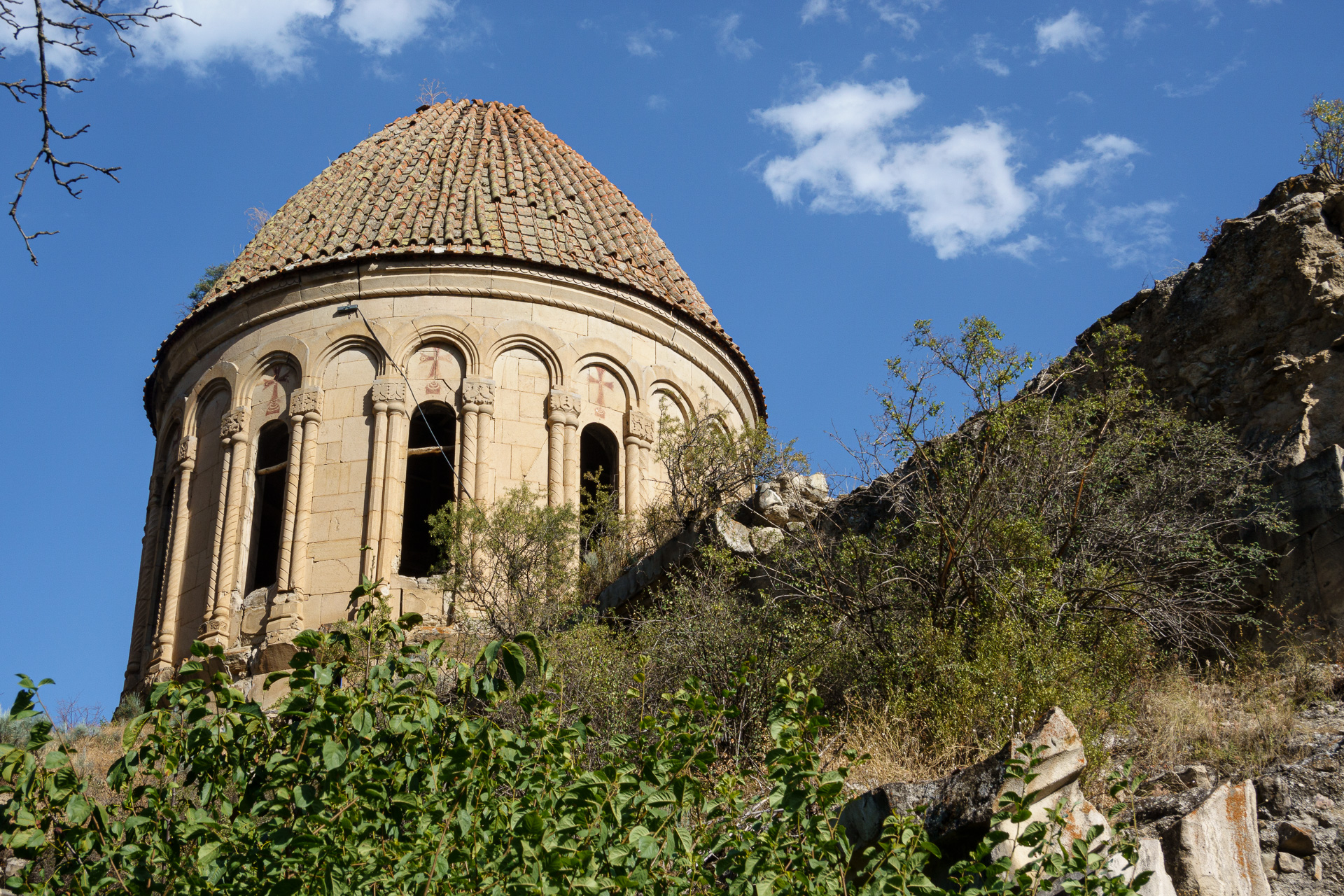 Nous prenons de jolies ruelles qui nous emmènent directement à la cathédrale. La cathédrale géorgienne d’Ōşkvank fait partie de ces trésors cachés. Elle date du milieu du 10ème siècle. Malheureusement, nous ne pourrons pas la visiter car elle est fermée au public. Les murs sont fragilisés par le temps et les tremblements de terre. Elle conserve tout de même une certaine majesté !!
