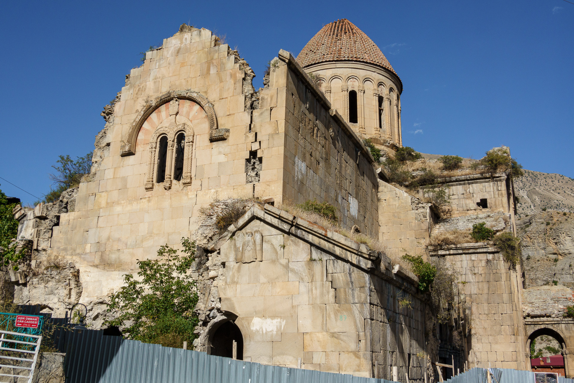 Nous nous garons en bas du village pour aller visite la cathédrale géorgienne d’Ōşkvank. A l’époque médiévale, cette partie de la Turquie appartenait à la Géorgie. La région regorge d’églises et de cathédrales datant de cette époque. Pour aller visiter la cathédrale, nous sommes garés à l’entrée du village car les rues sont étroites et nous ferons les 500 mètres restant à pied… ça va le faire 😜 !!