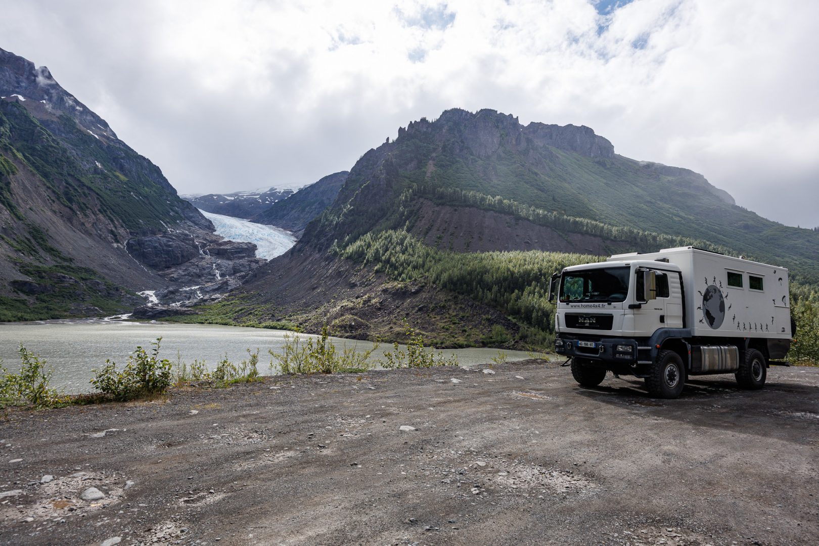 Nous profitons d’une très belle vue sur le Bear Glacier et son lac glaciaire pour déjeuner.