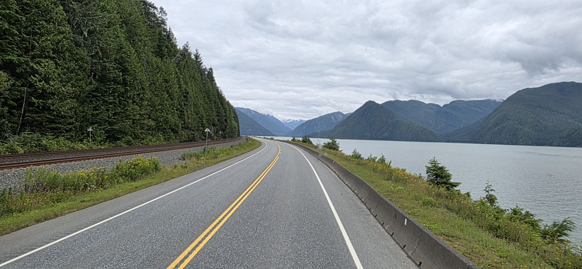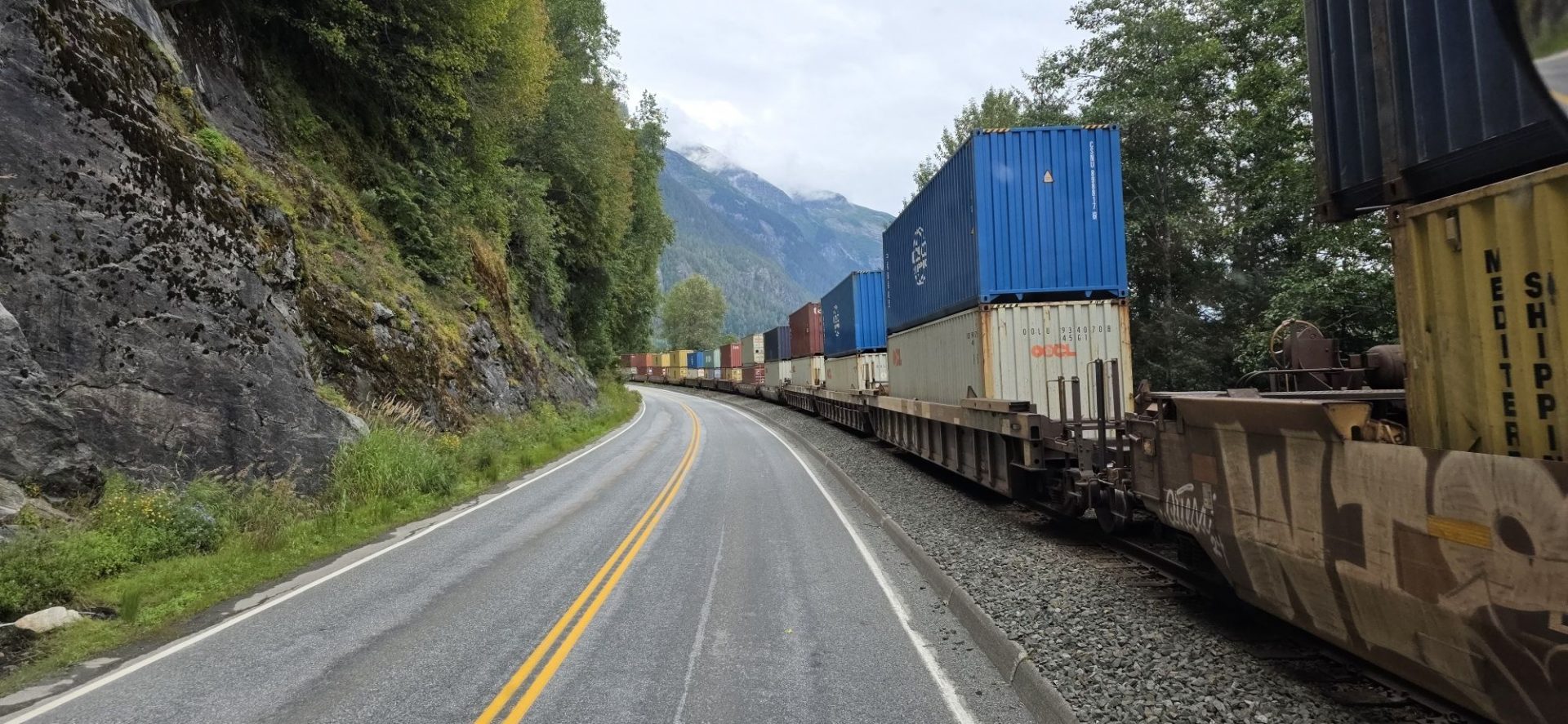 Après cette découverte, nous reprenons la route vers le nord. Les trains de marchandises sont toujours aussi impressionnants ! Si près de la route… On espère que les contenairs sont bien attachés 🤪 !