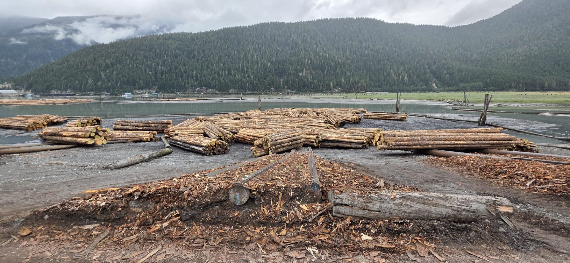 Nous nous poserons juste à côté de ce port grumier. Une faible salinité est bénéfique pour les navires de grumes. Le port de Stewart présente la plus faible salinité de toutes les installations de chargement de grumes en eaux profondes de la Colombie-Britannique. Situé dans un bras de mer, l’eau presque douce du port permet de stocker plus longtemps qu’ailleurs les grumes prêtes à être chargées sur les bateaux.
