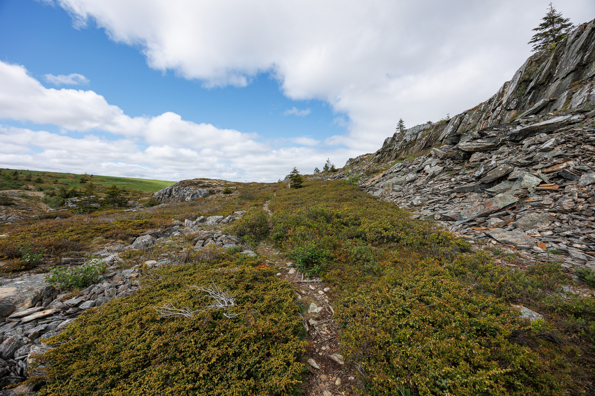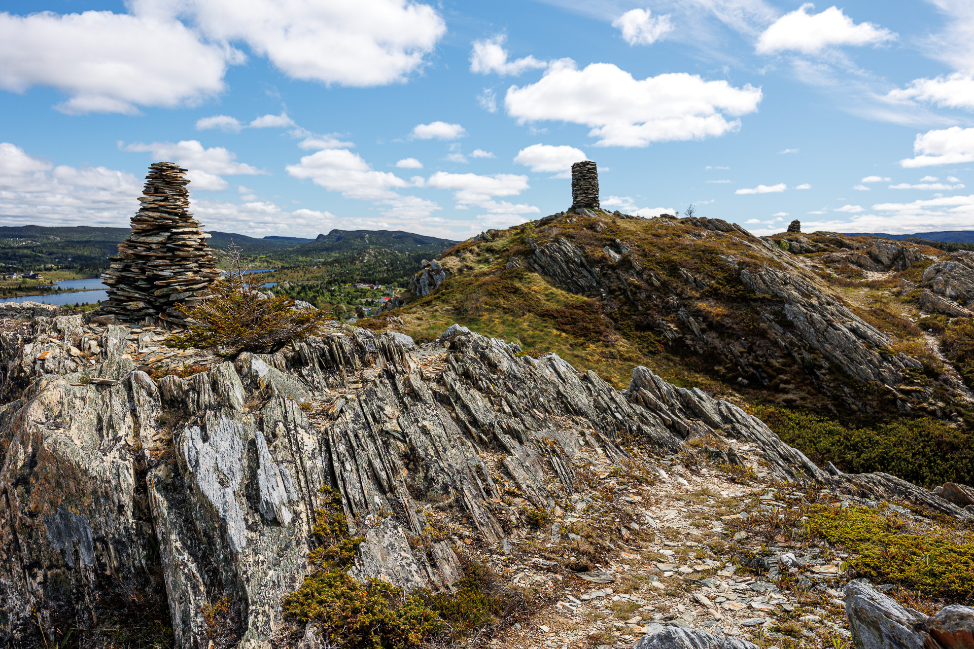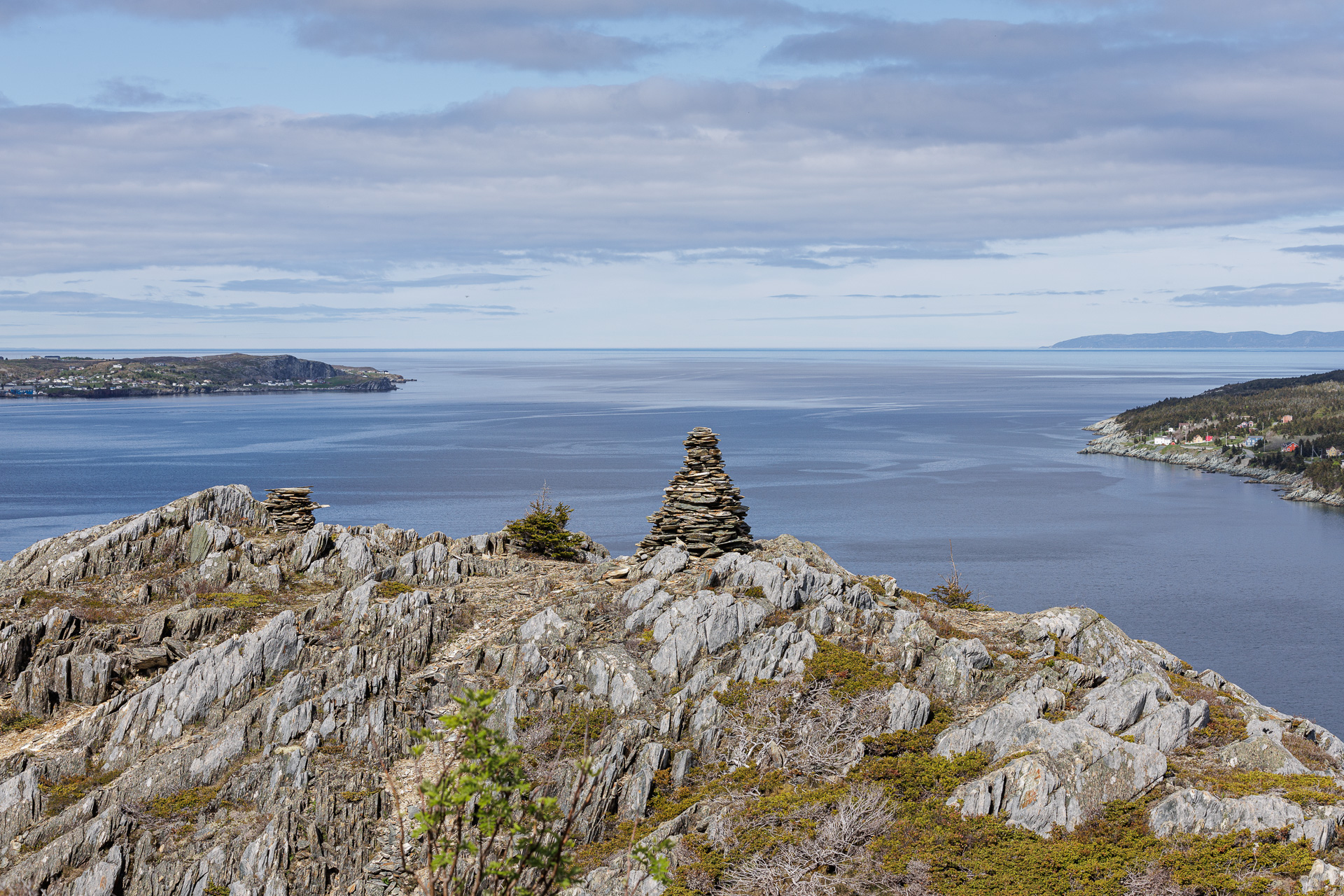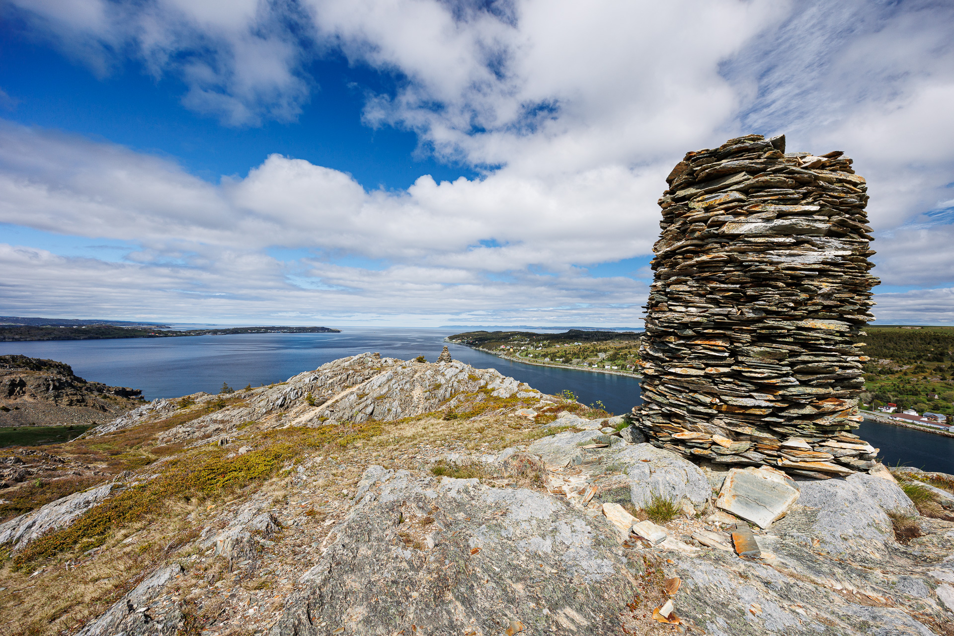Au sommet trône un énorme cairn « American Man ». Il aurait été érigé dans les années 30 pour servir de point de repère aux bateaux de pêche qui entraient dans le port de Cupids. Il y en a 2 autres mais de plus petites tailles.